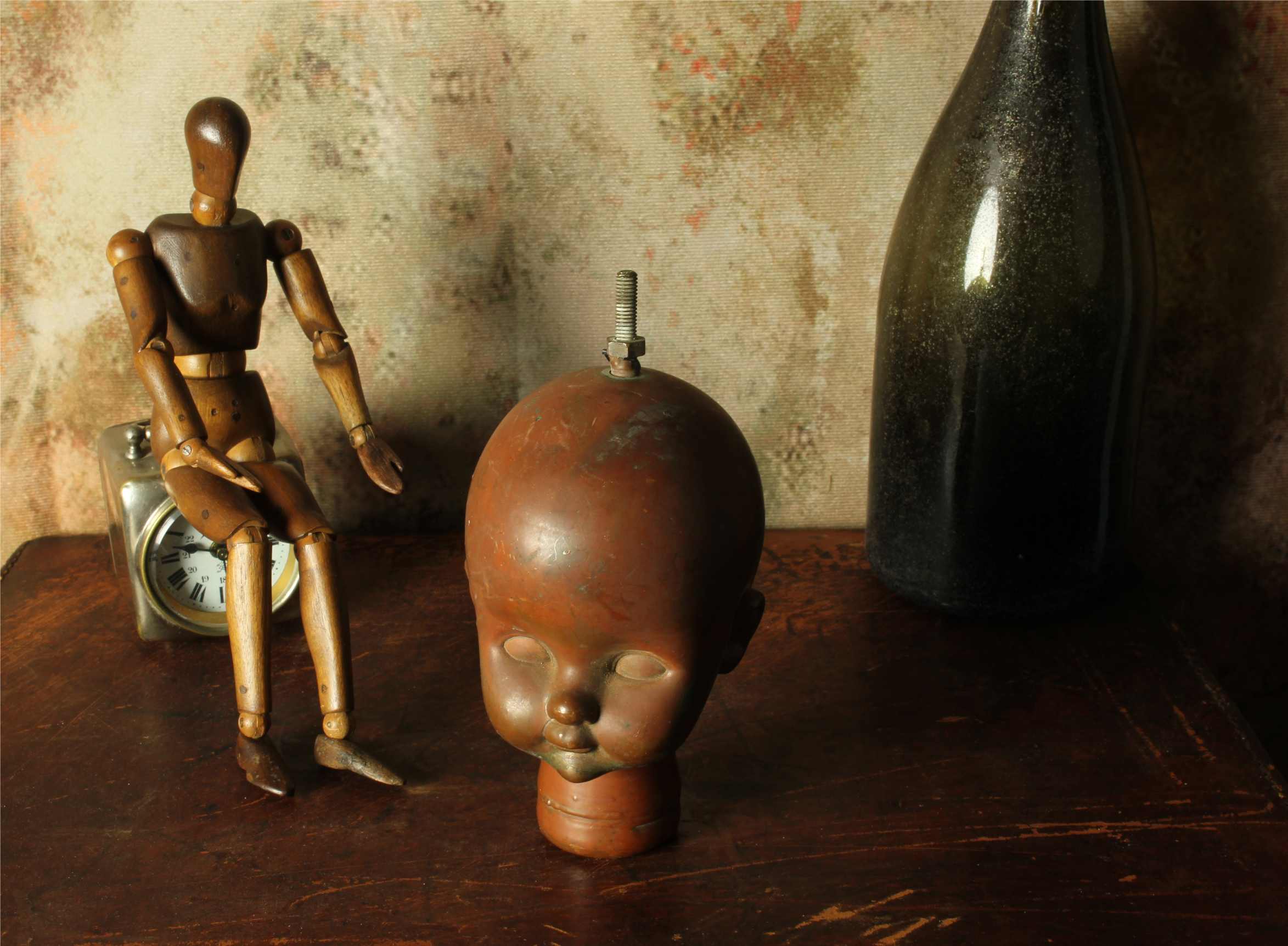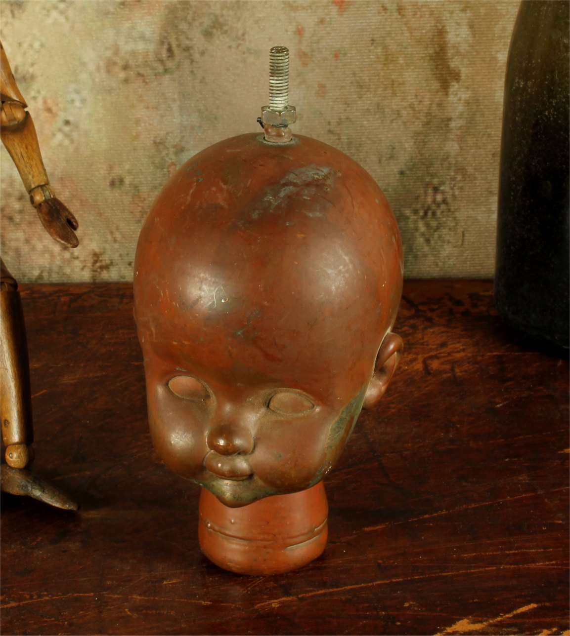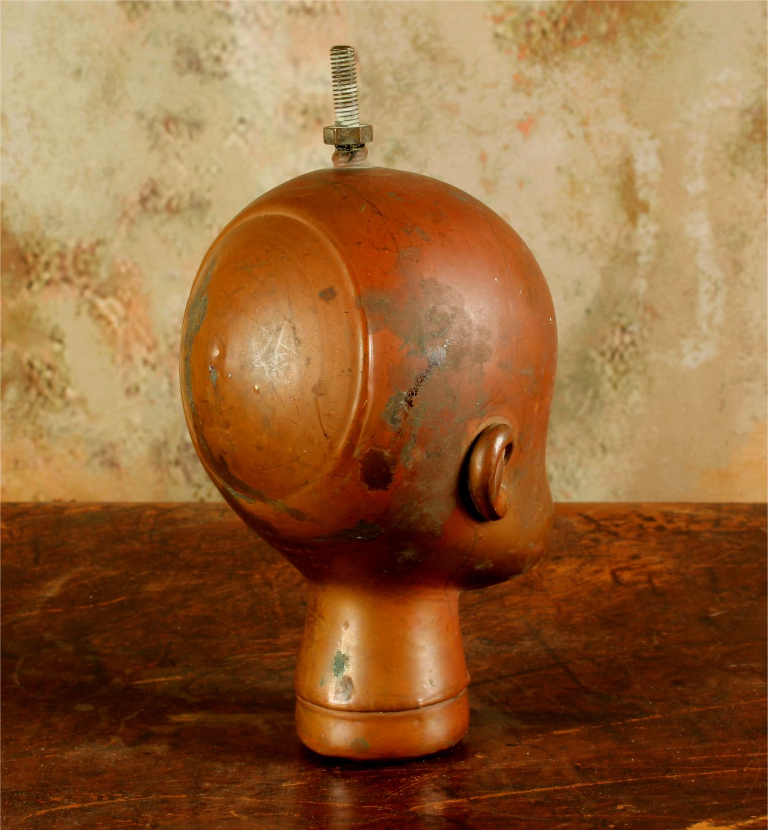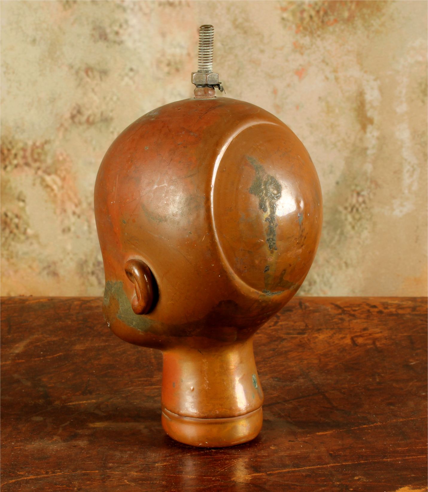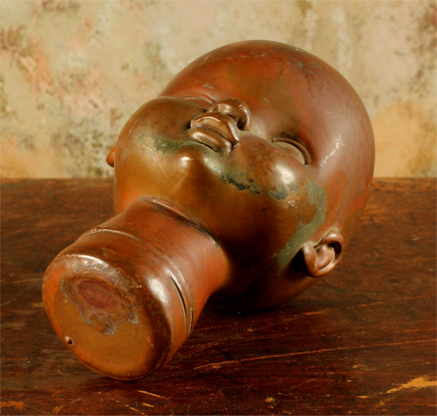 This unusual doll head mould which dates from the mid 20th century is made of heavy copper and came from Bella Doll factory in Perpignan, France.
