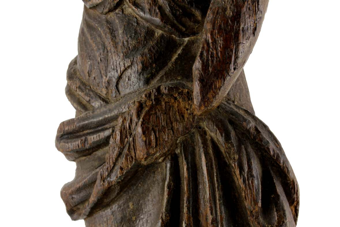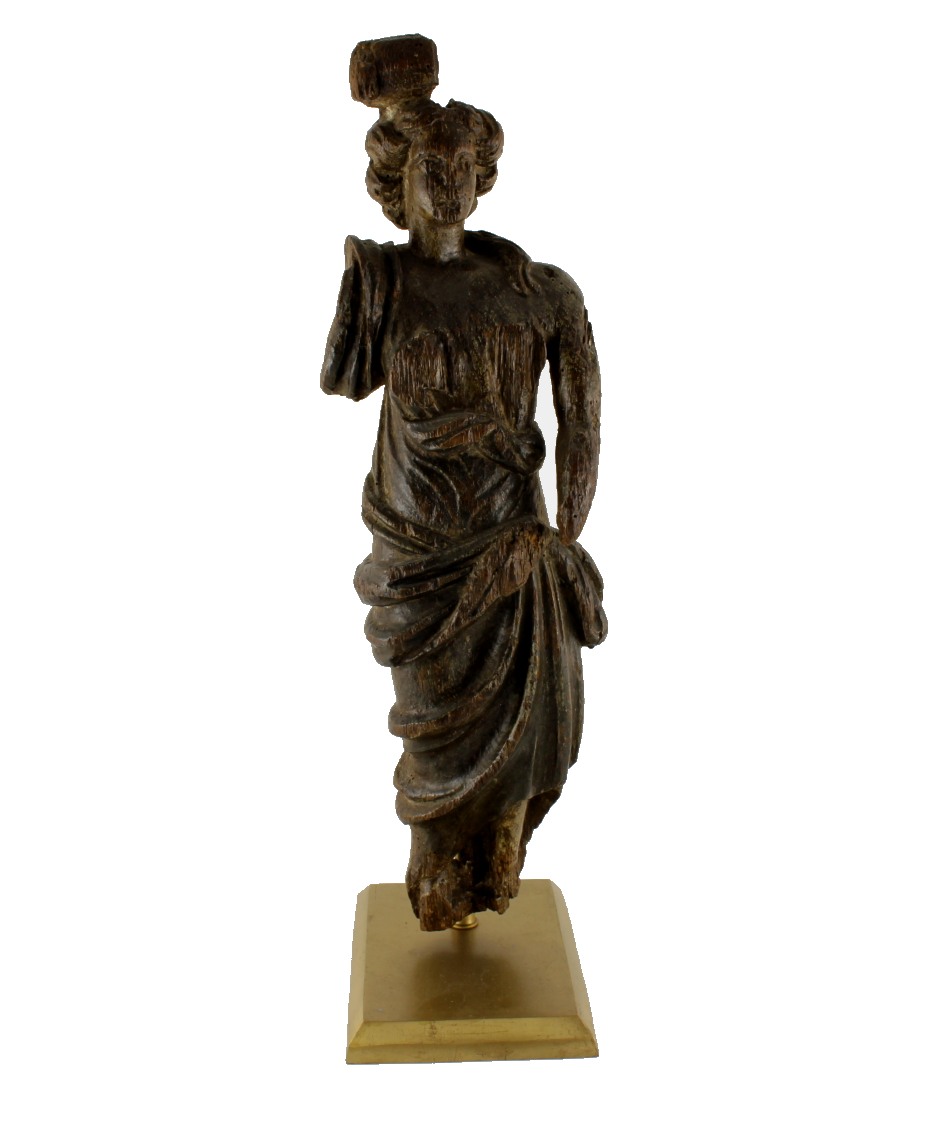 This fabulous wooden lady figure which dates from the 17th century or earlier has lots of charm with it's age related wear and beautiful dark patination.