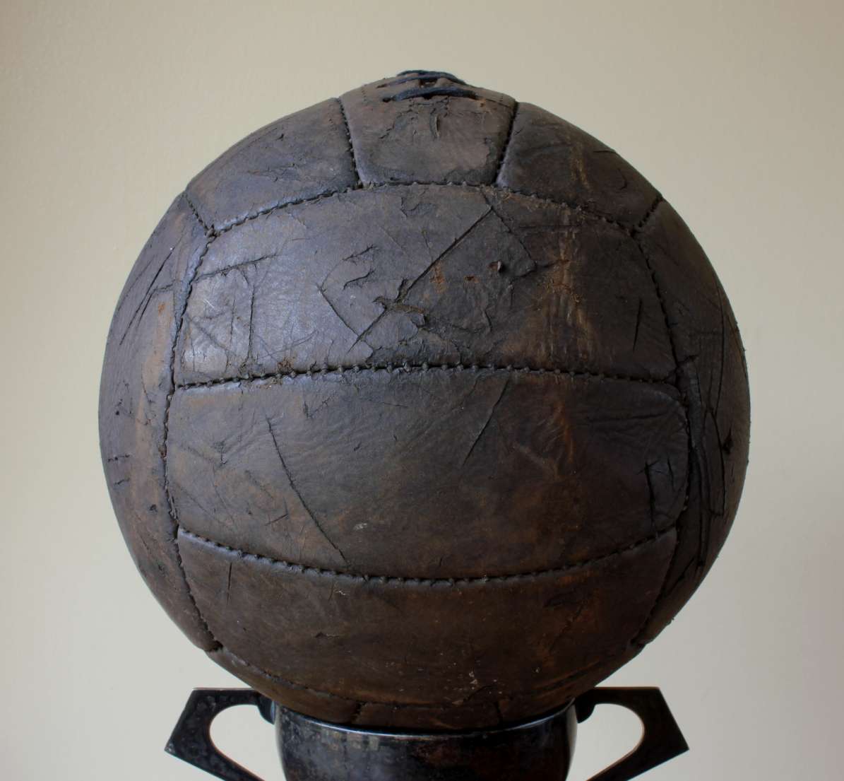 This great looking football lots of age related wear so looks great on display and is a 18 panel model with 6 pairs of lace holes.