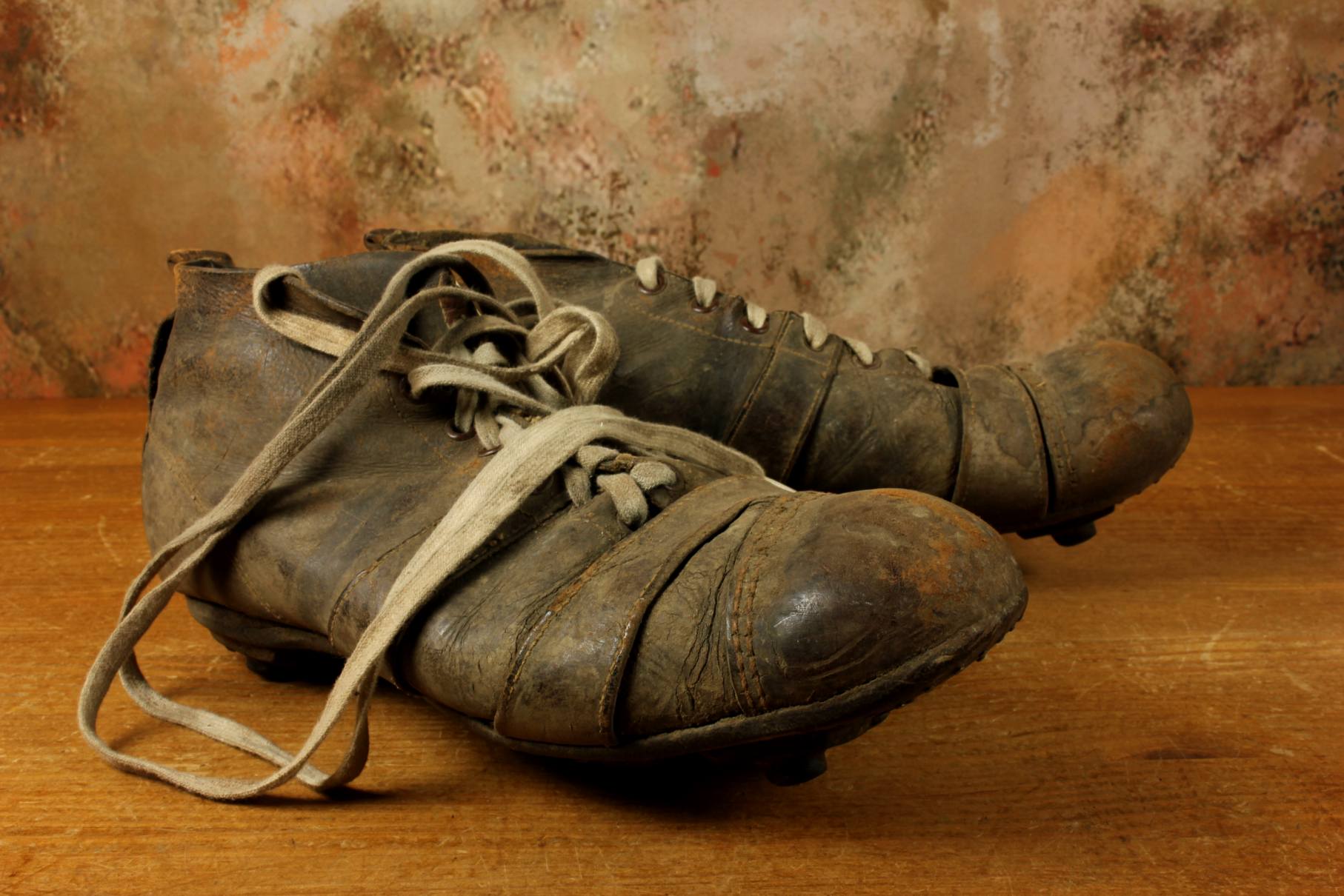 These original vintage boots still have the remains of dirt and dried grass from when they were last used which gives them a great look. Would make an interesting addition to a collection of football items.