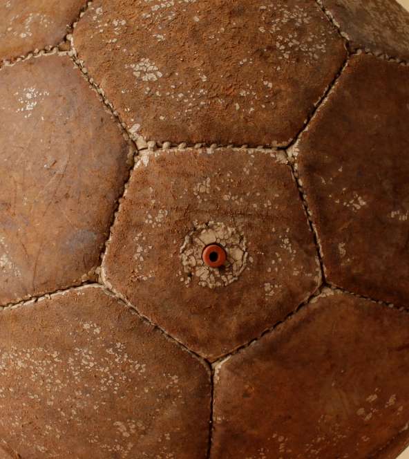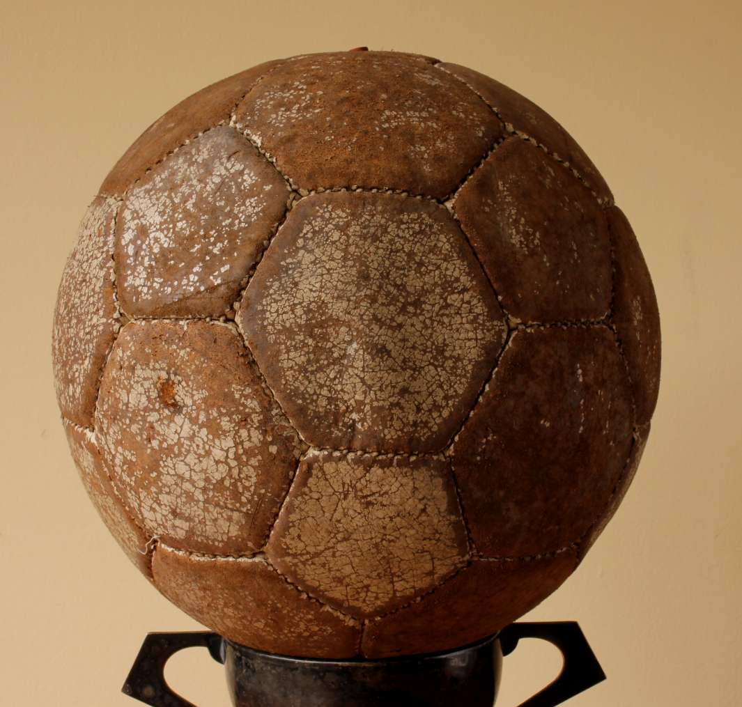 This true 1960's vintage football has 32 stitched leather hexagonal panels and has lots of age related wear making it a nice football to put on display.