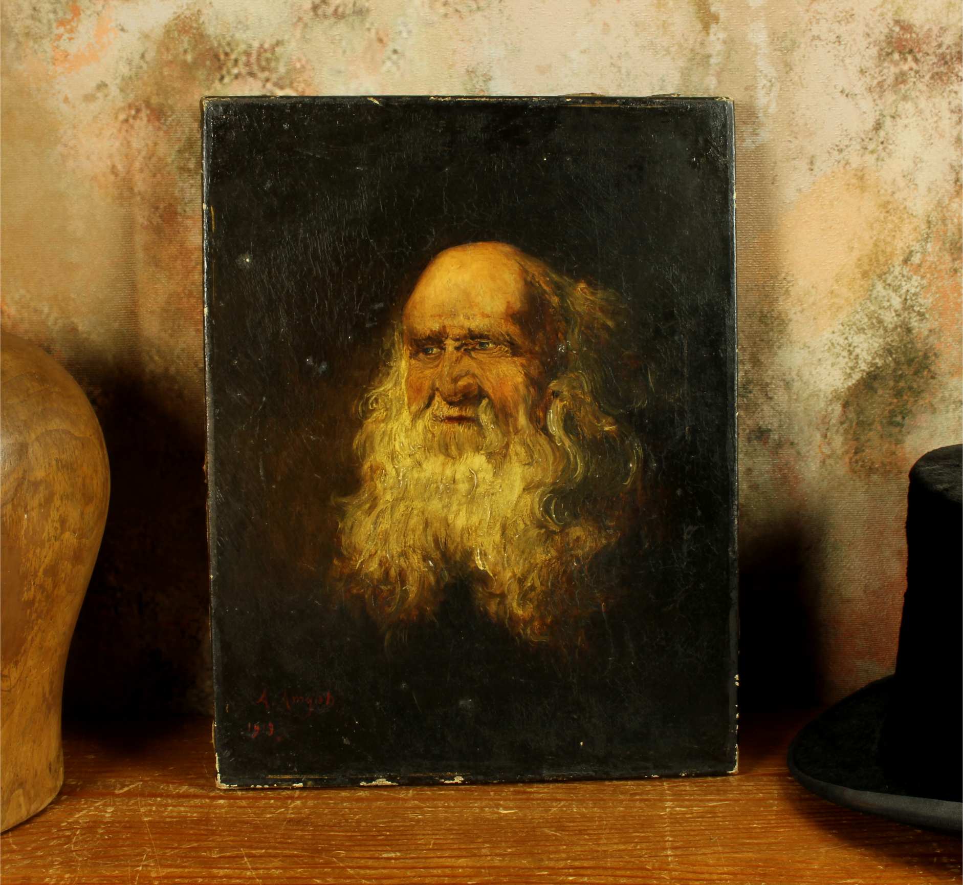 This handsome early 20th century head and shoulders portrait of an elderly man with a prominent white beard is signed A Amyot, dated for 1913 and is a good decorative size at 35 cm high.