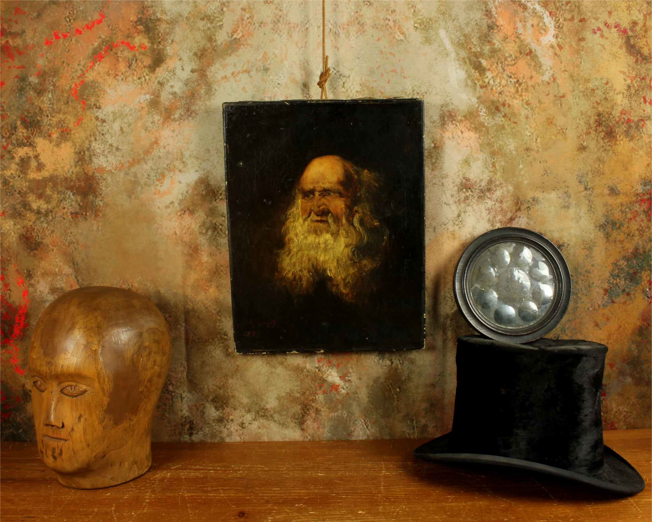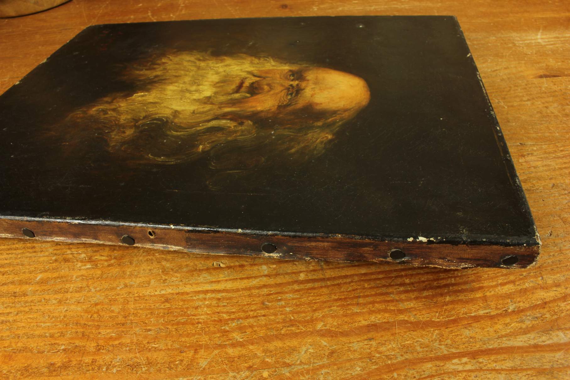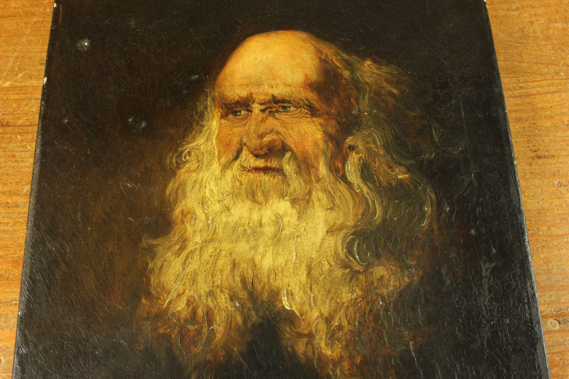This antique oil painting of a bearded gentleman has been skillfully painted using oils on canvas and is mounted on a wood stretcher.