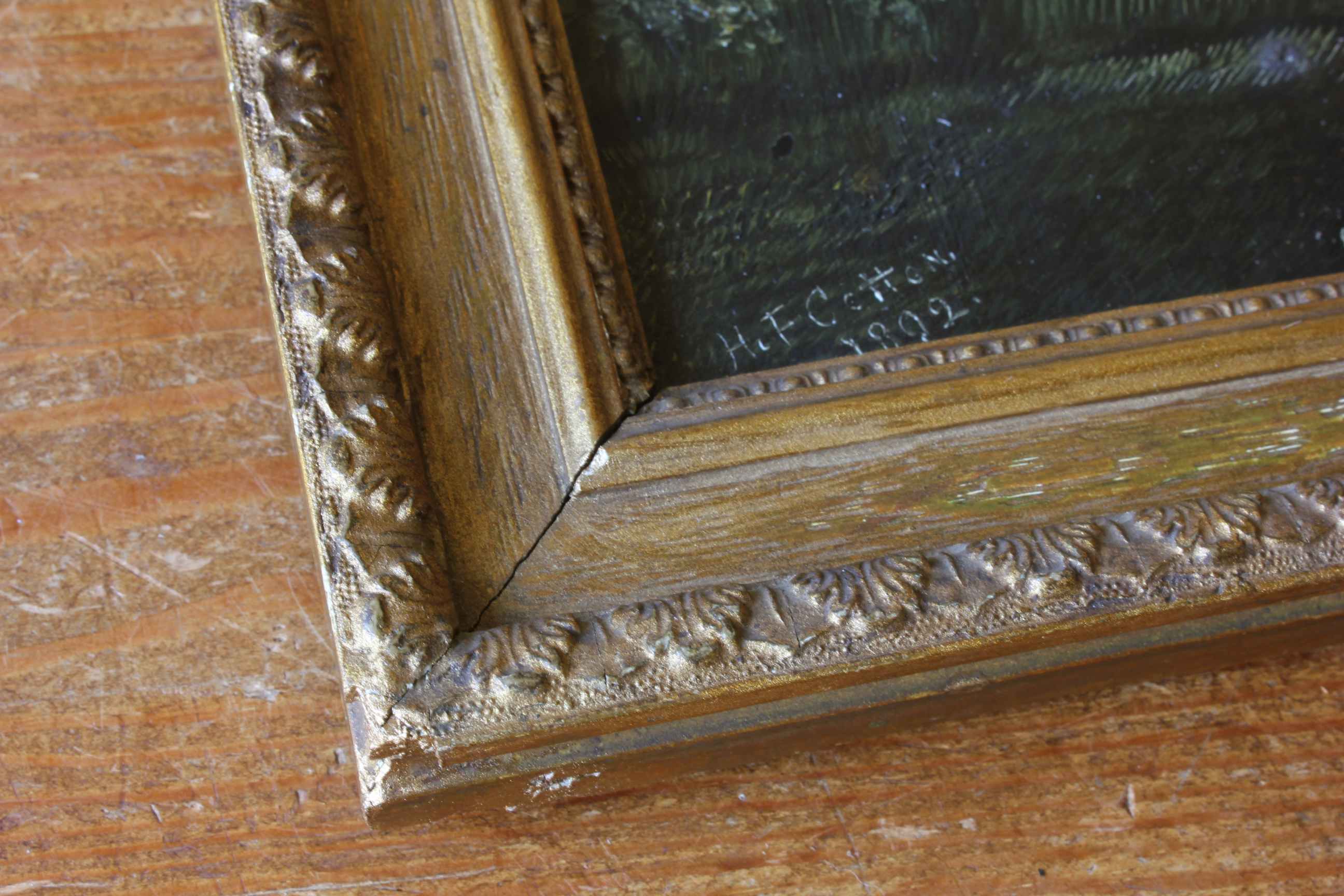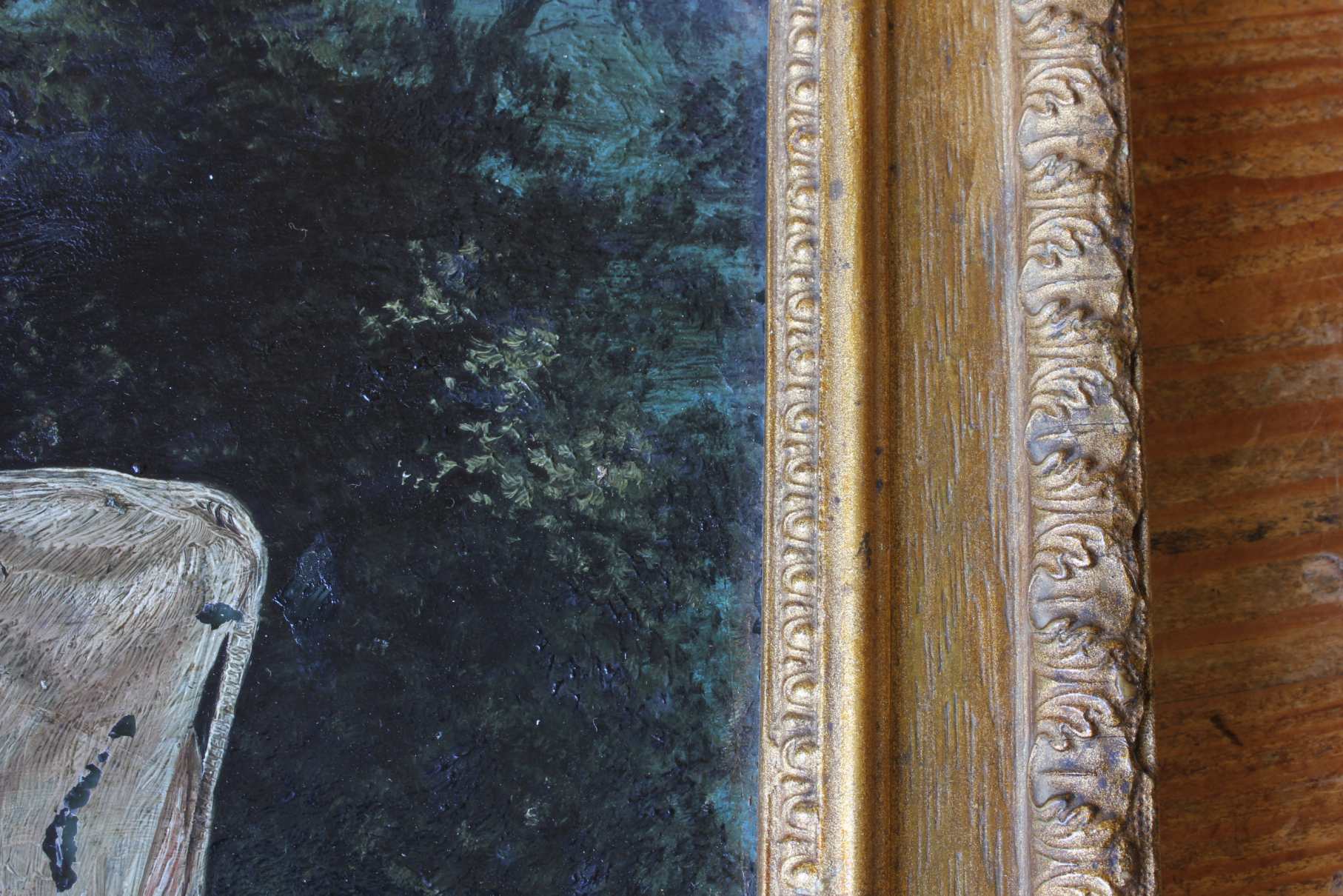 Condition: Good antique condition with signs of use in keeping with age. Artwork has some crazing, chips and small marks. Frame has chips, wear and over painting. Please see pictures.