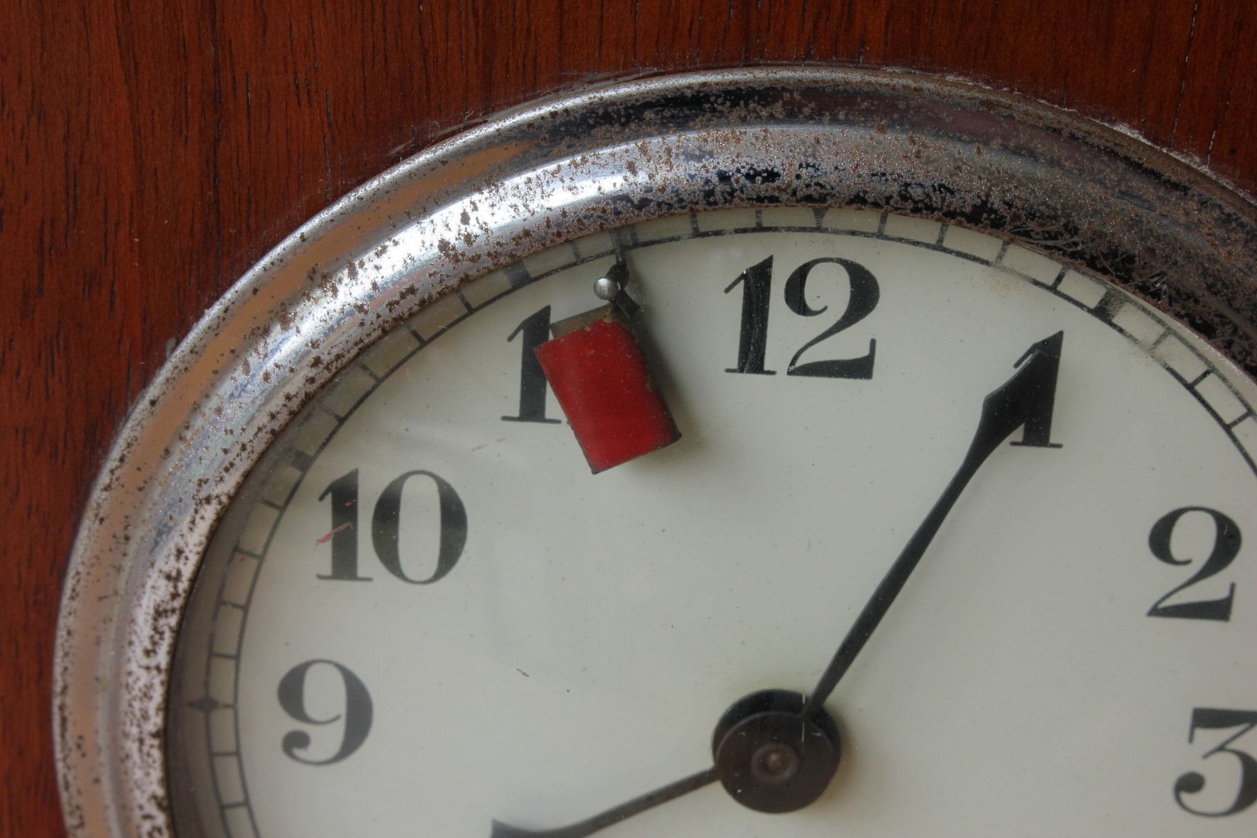 Clock size: Width: 28.5 cm (11 1/4"). Height: 18.5 cm (7 1/4").