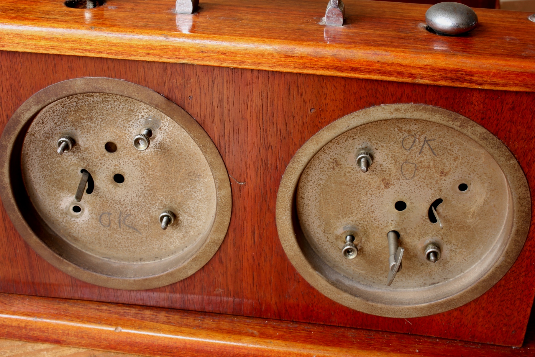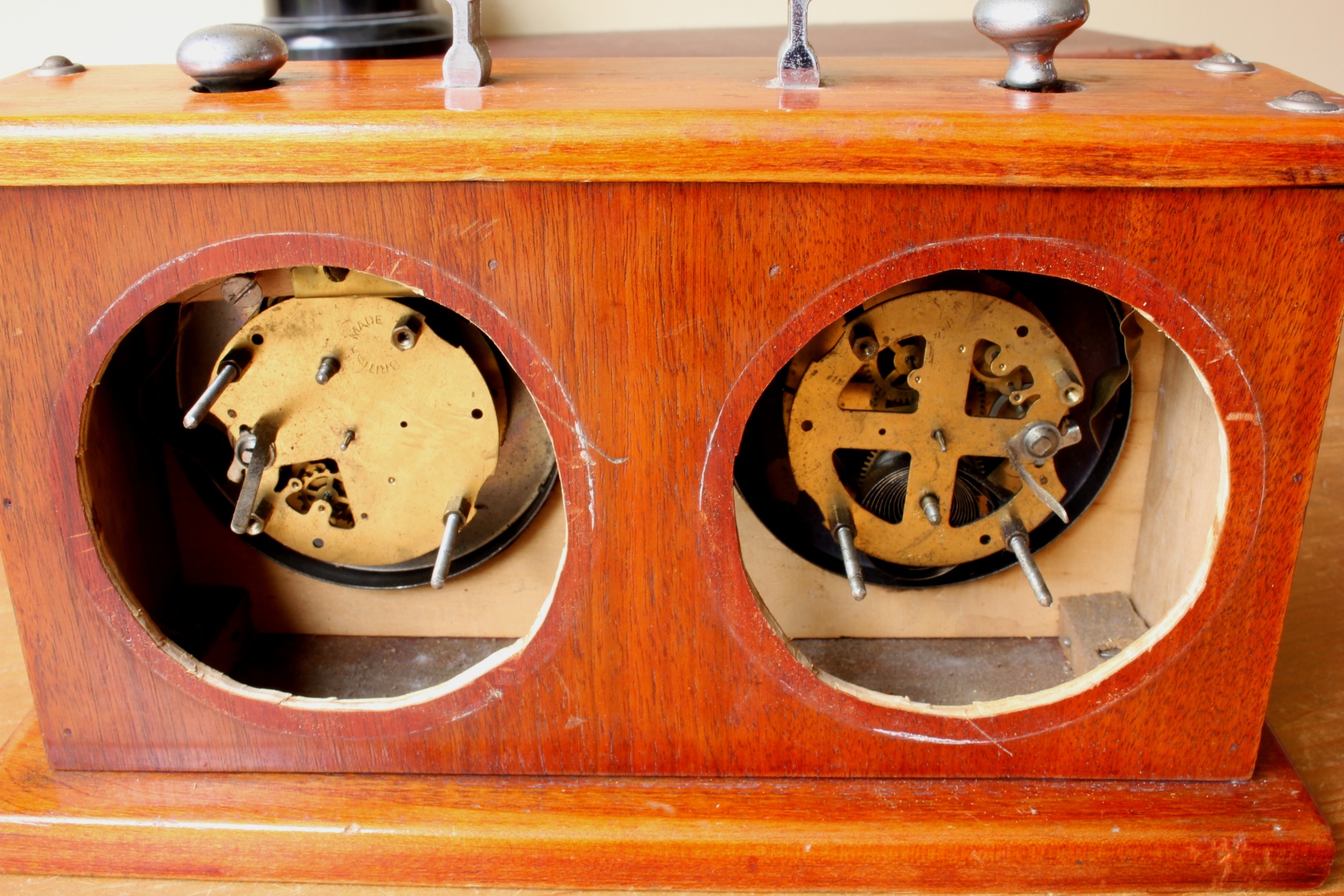 The clock seems to be running fine with both clocks ticking away nicely but they would need a clean and service to get them working 100% plus there is only one winder and no keys to set the time. A very nice and unusual chess clock.
