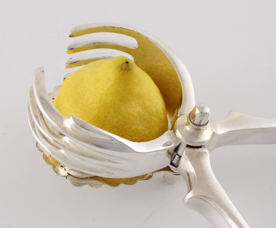 This stylish antique lemon press which is made of silver plate dates from c1920 and is a good usable bar accessory.