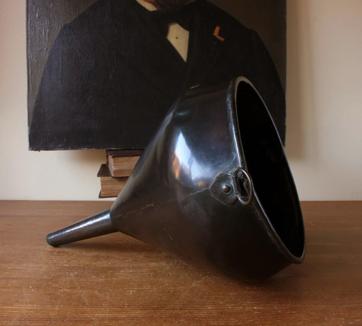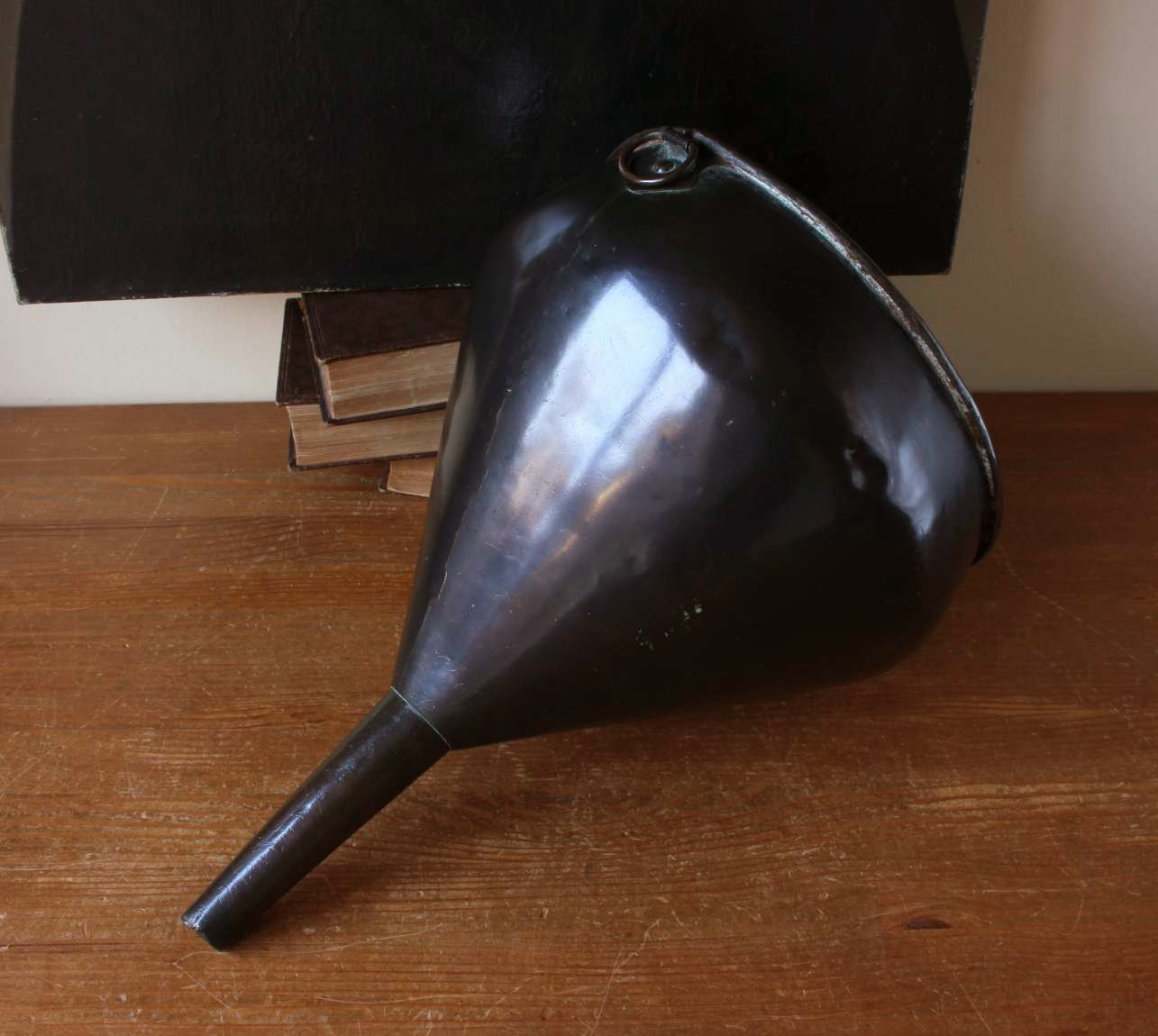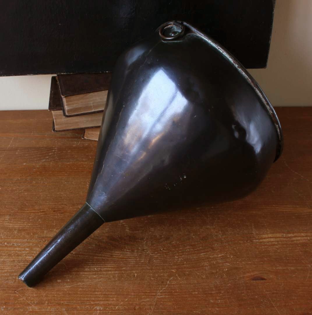 This antique distillery or brewery funnel is an extra large size, has a side seam and has a riveted hanging loop so is easy to display.