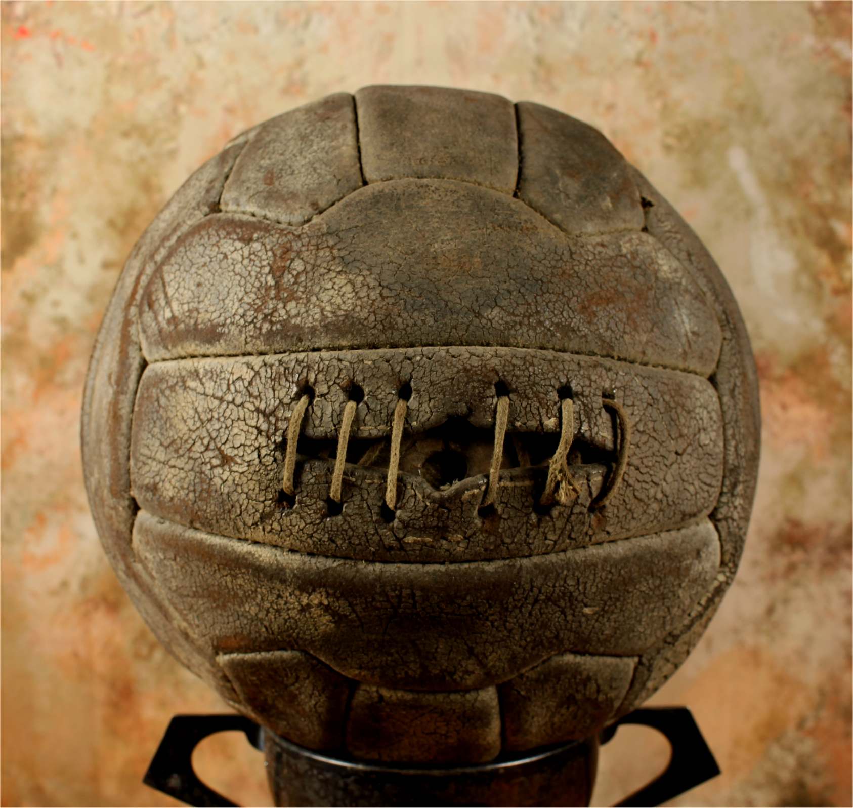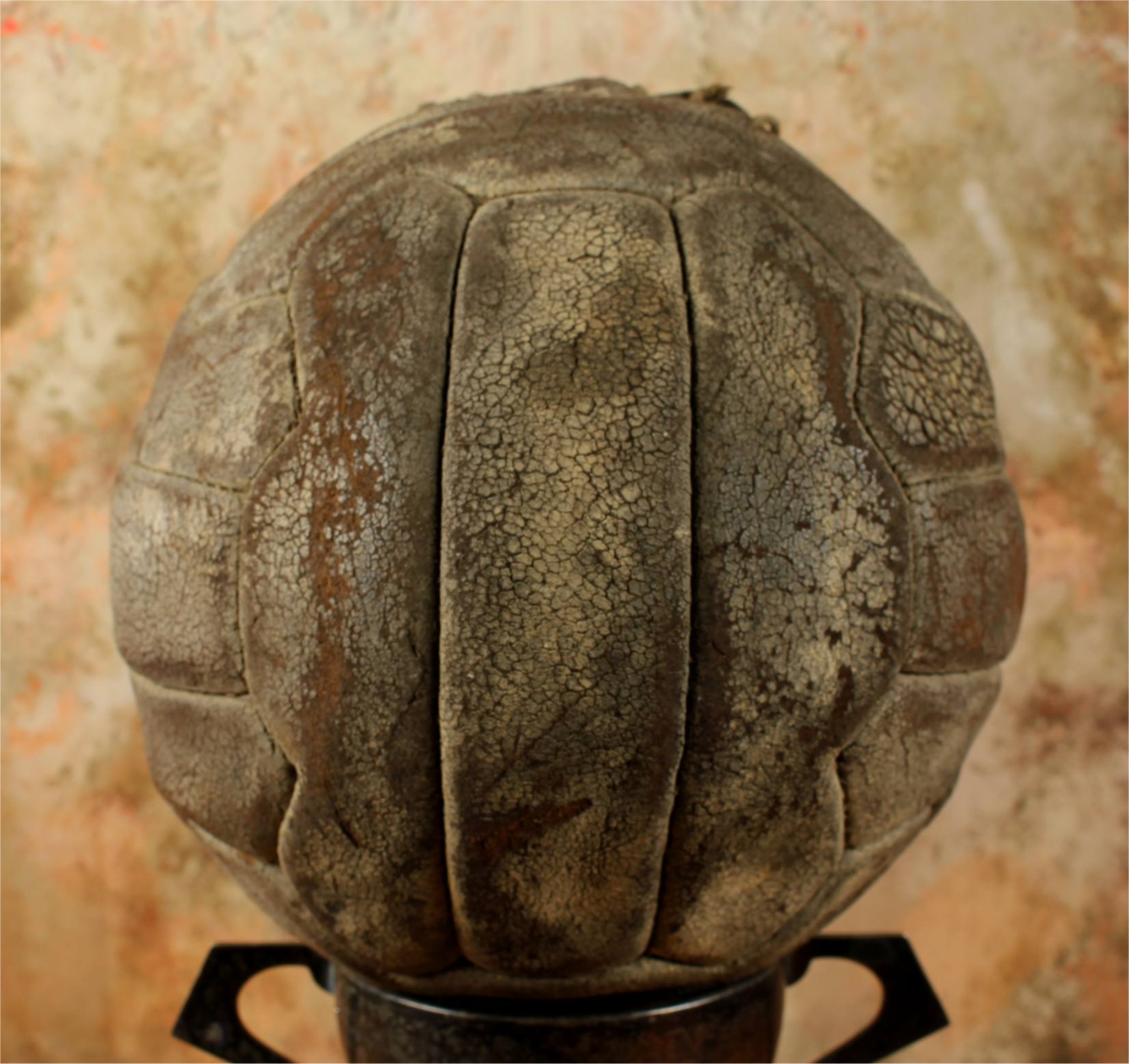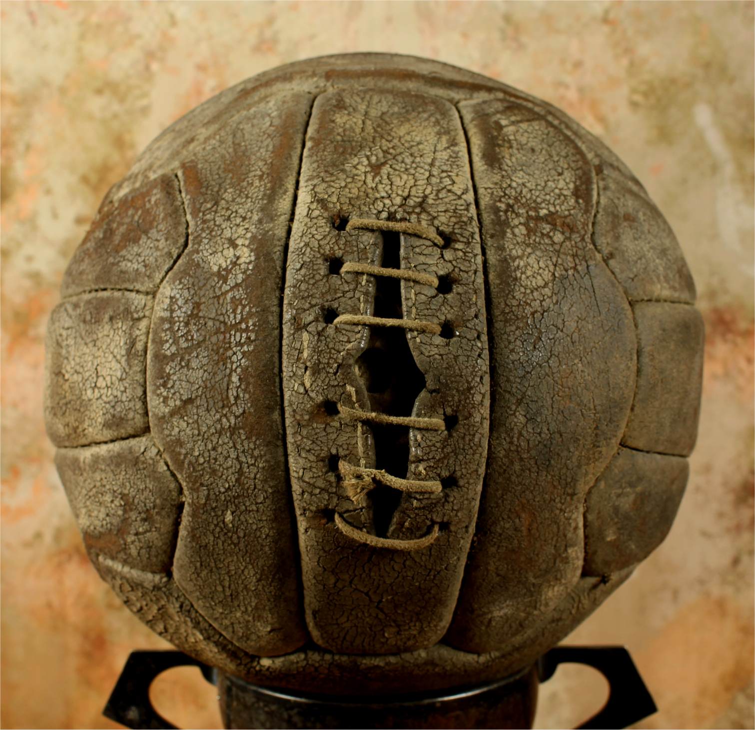 Condition: Very good decorative antique / vintage condition with age related wear, scuffs, scrapes, scratches, marks and dried hardened leather. There is a new bladder fitted which is inflated and holds air. The original antique Dunlop Go tube type bladder does not hold air. Please see pictures.