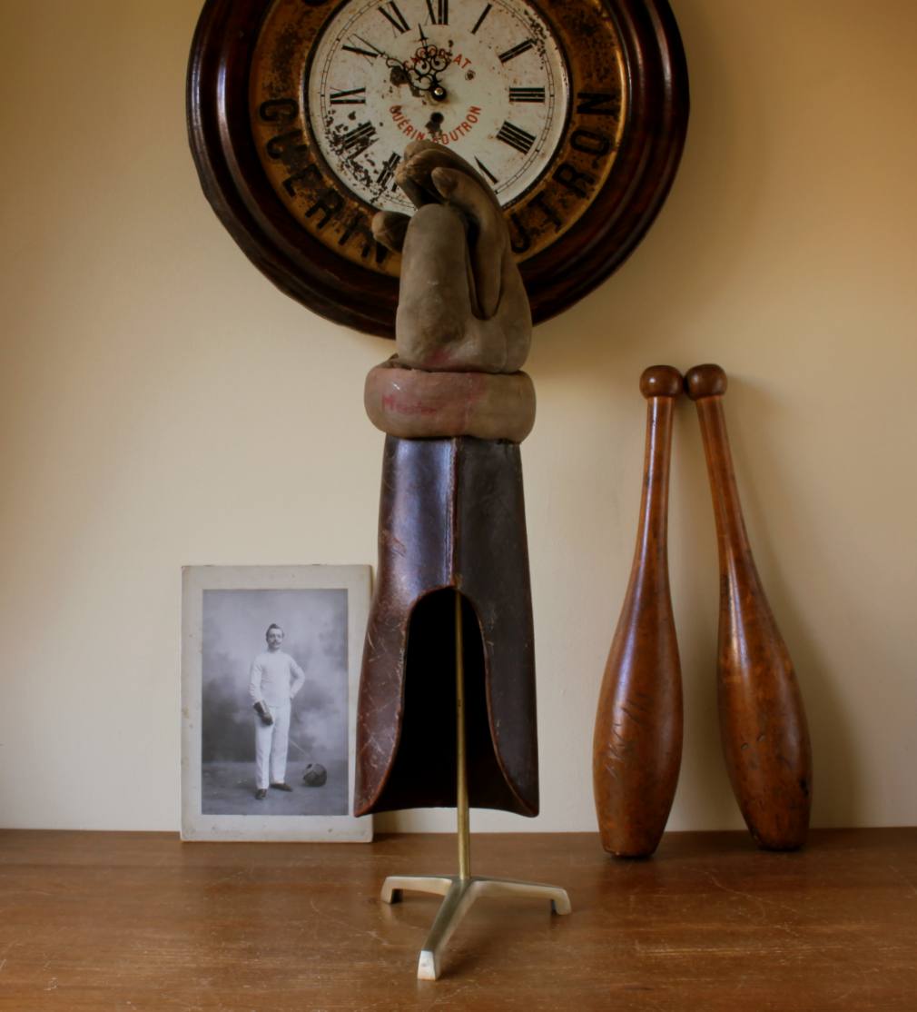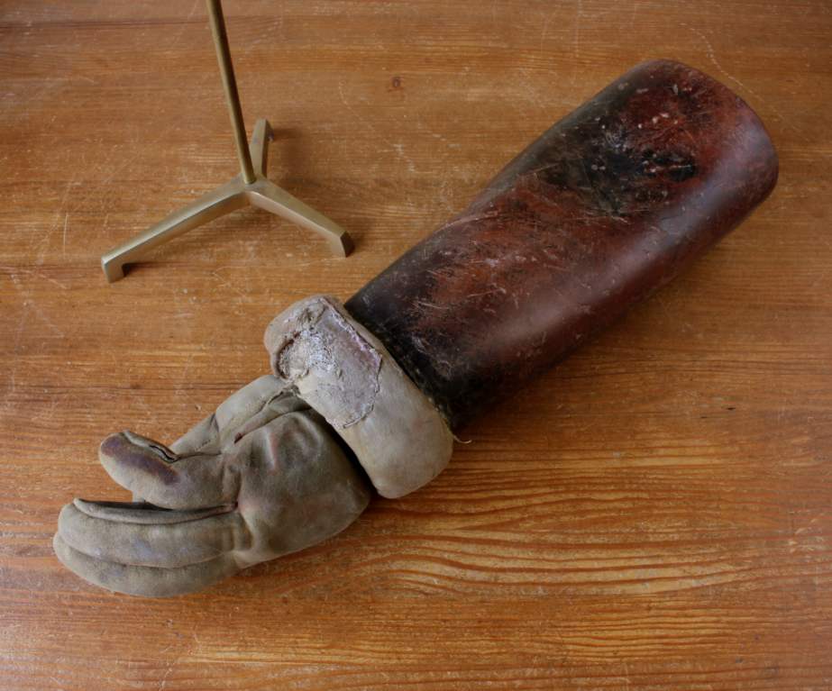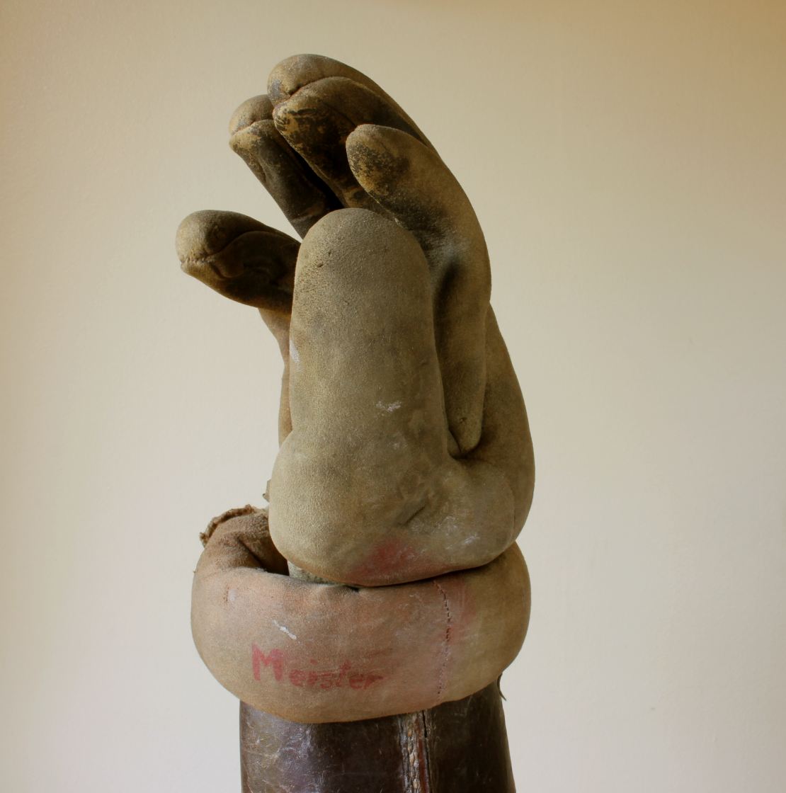 This scarce antique gauntlet is marked to the padded wrist with Meister in red, comes mounted on a later metal display stand and looks great on show. Would make a very nice collector's piece for a sports enthusiast and an unusual talking piece.