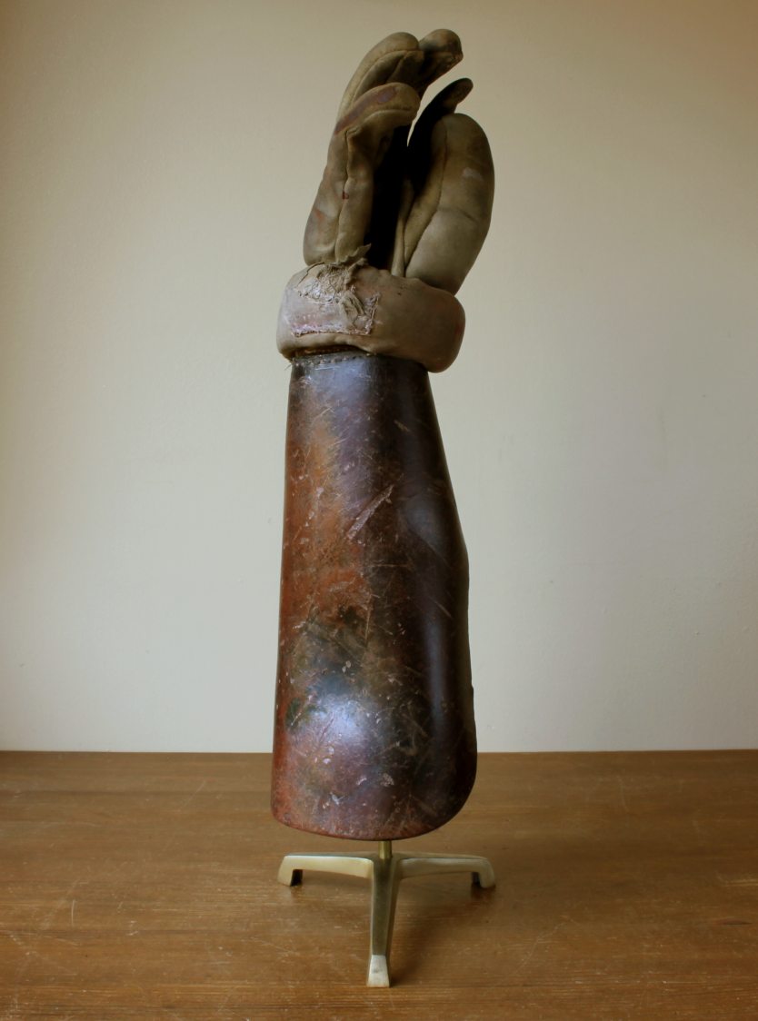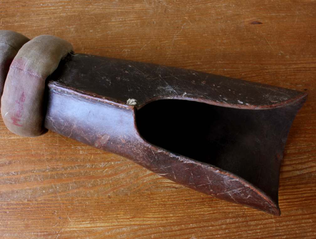 This stunning antique French fencing glove which dates from c1900 has a thick brown leather sleeve and a padded suede leather hand section.