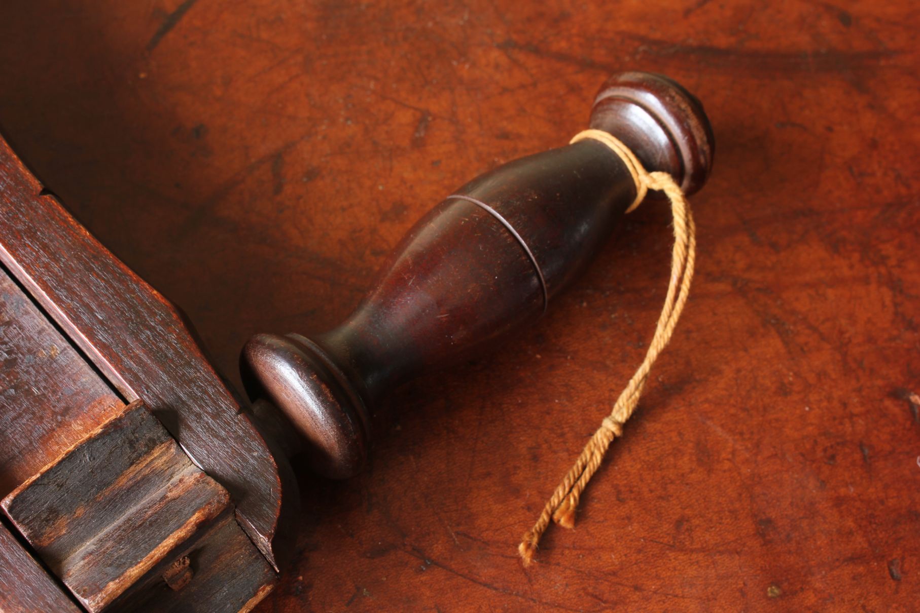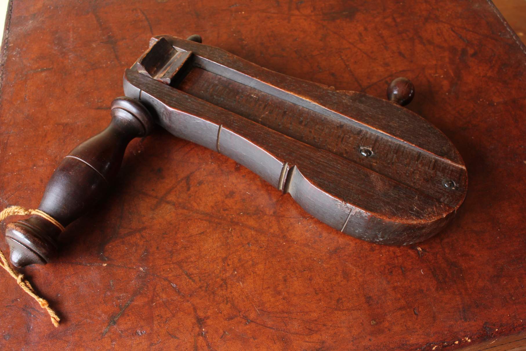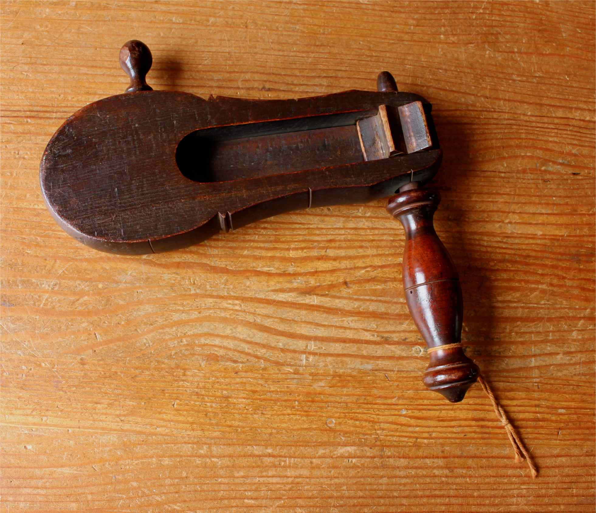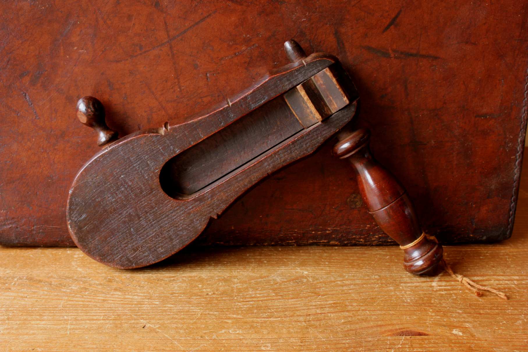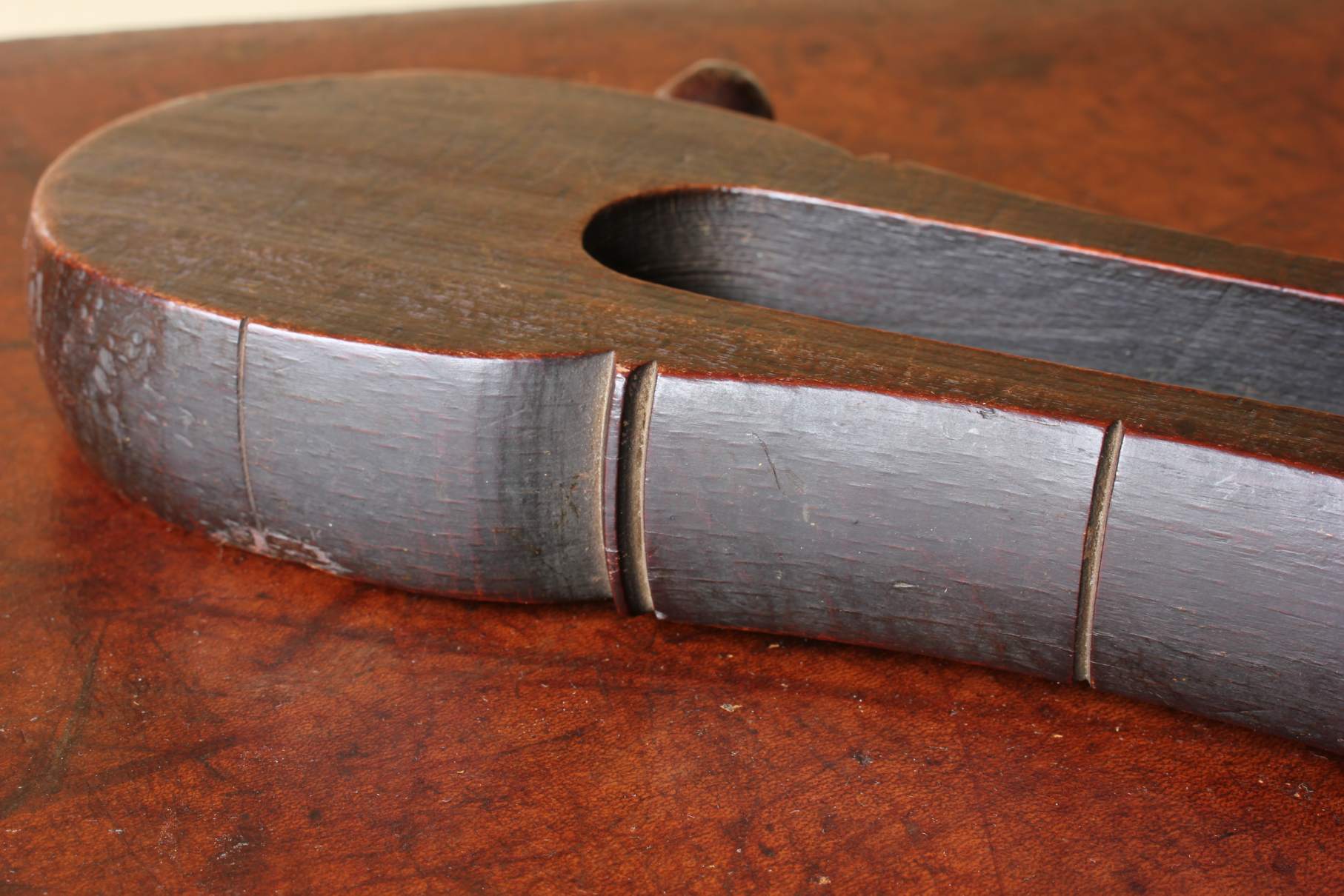 This antique wooden football rattle has a beautiful dark patina and dates from the late 19th century.