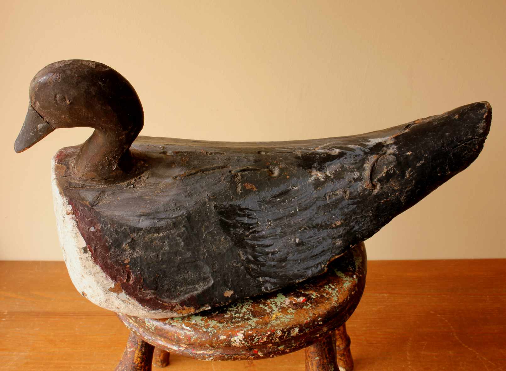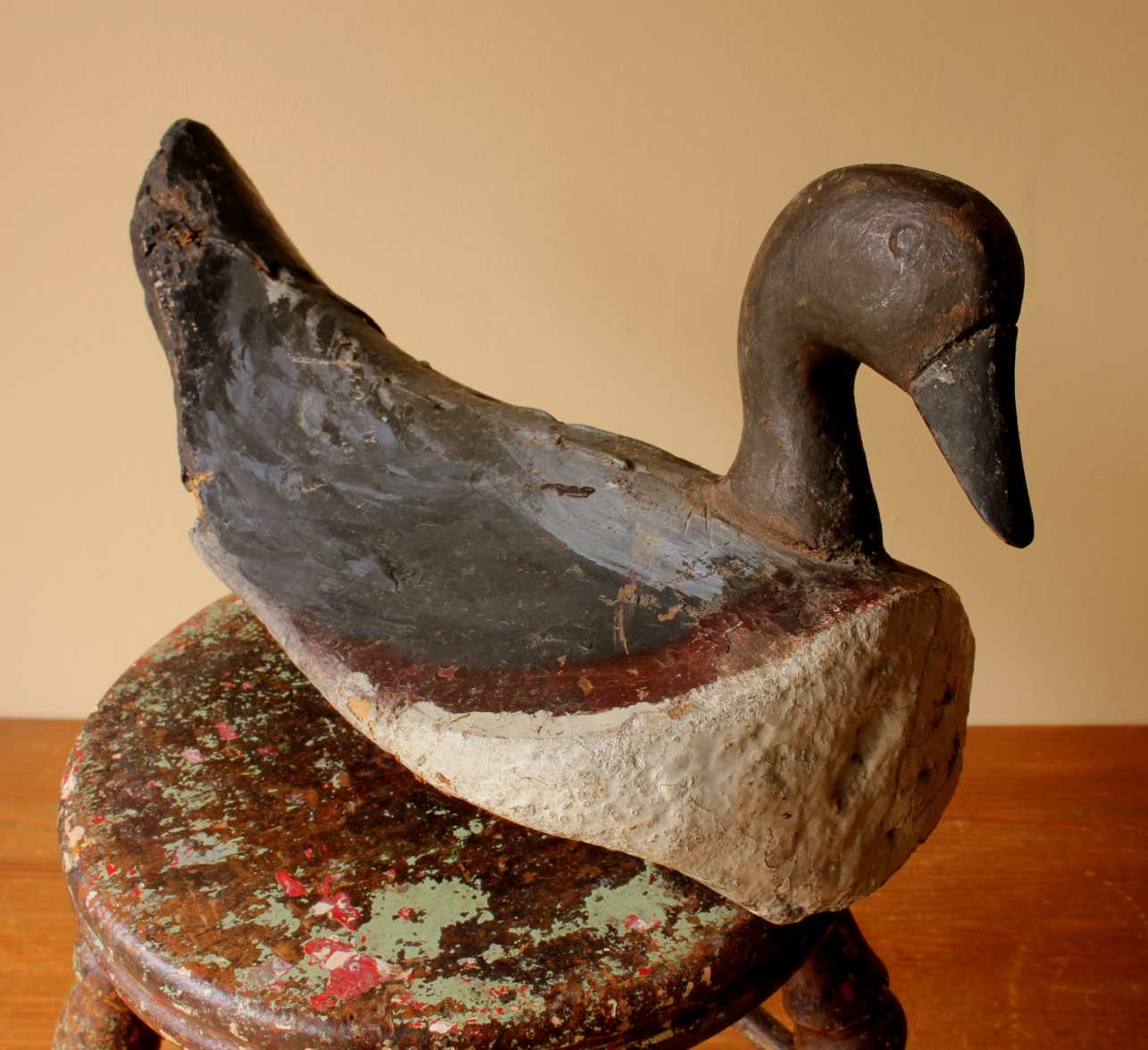 Condition: Well used original antique condition with lots of age related wear, cracks, chips and flaking paint leaving a wonderful decorative look. Wood has dried. Please see pictures.
