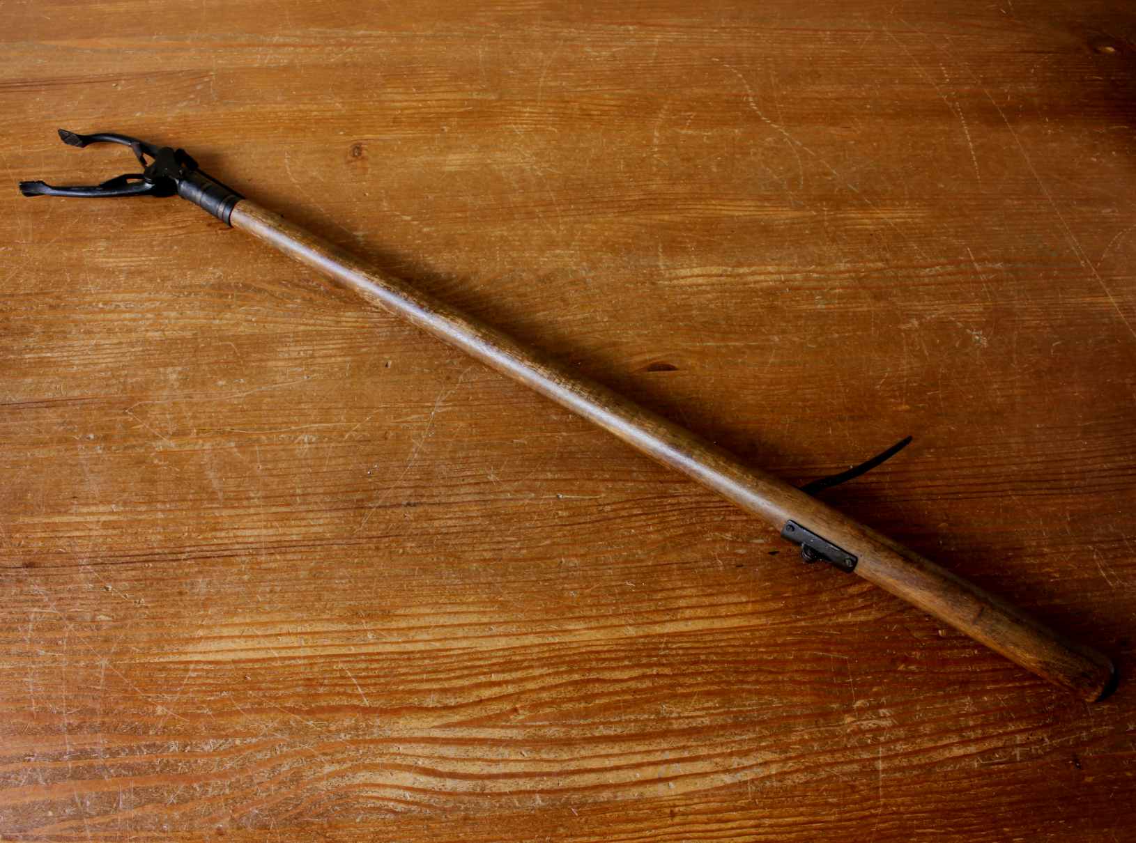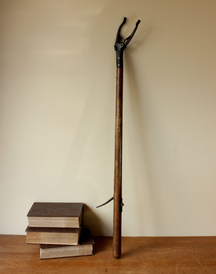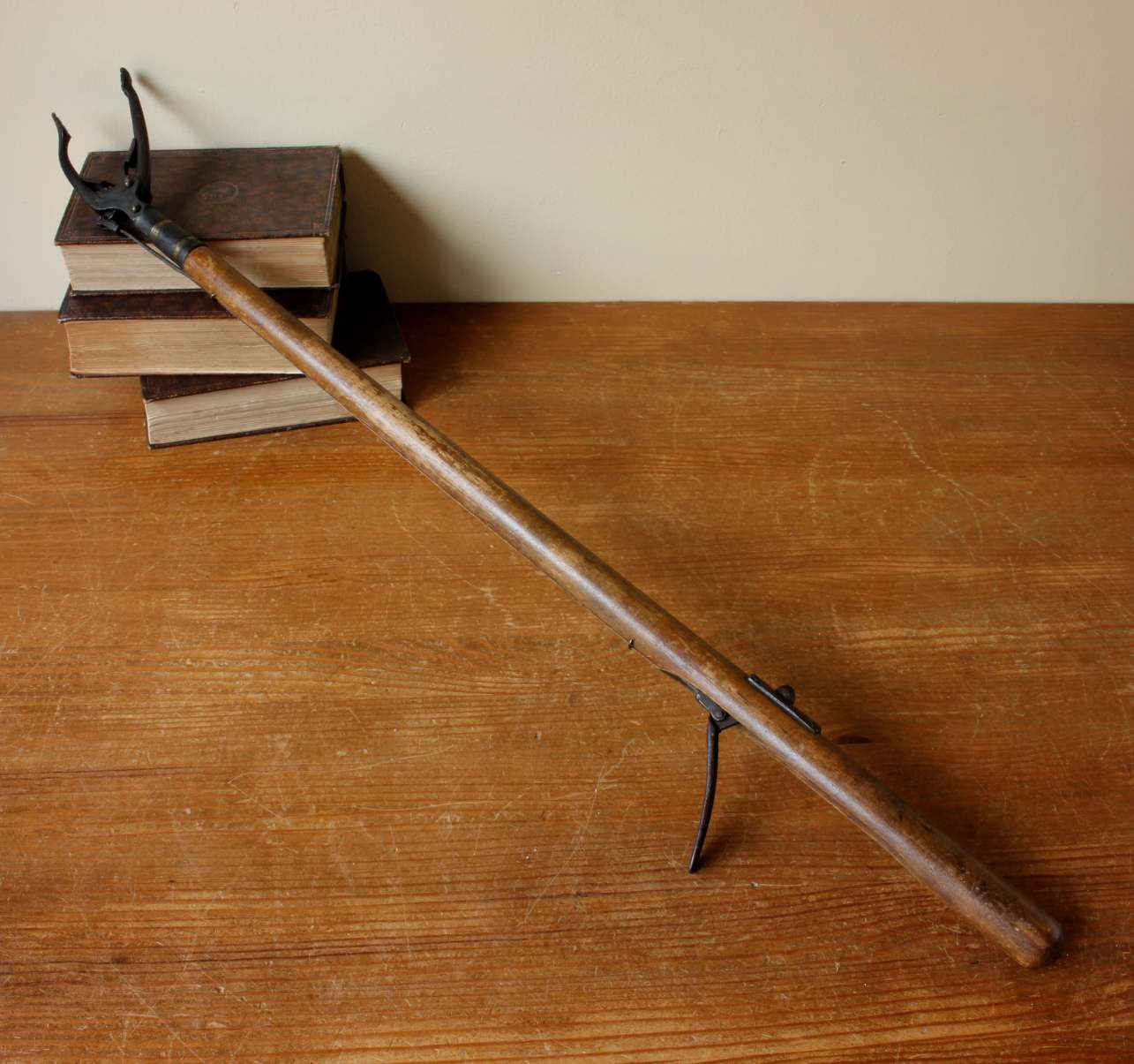 This antique reacher is 77 cm in length with a brass claw at the end and brass lever mechanism which all works well.
