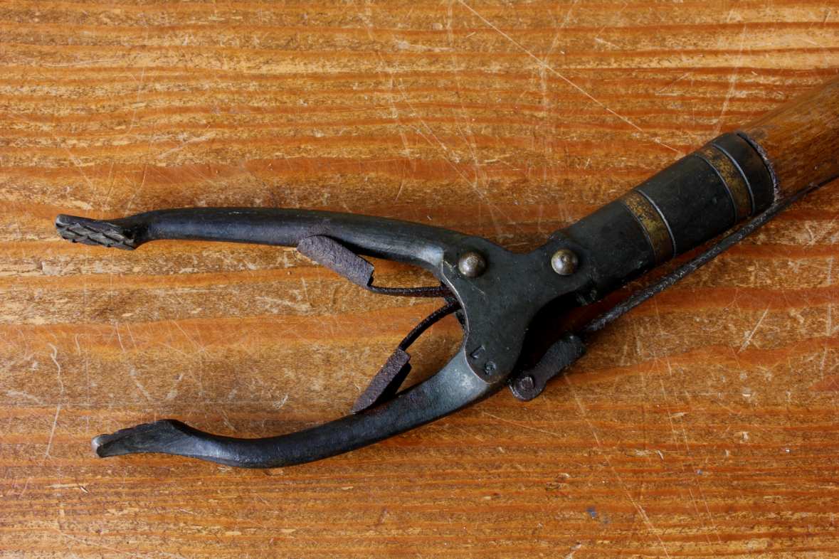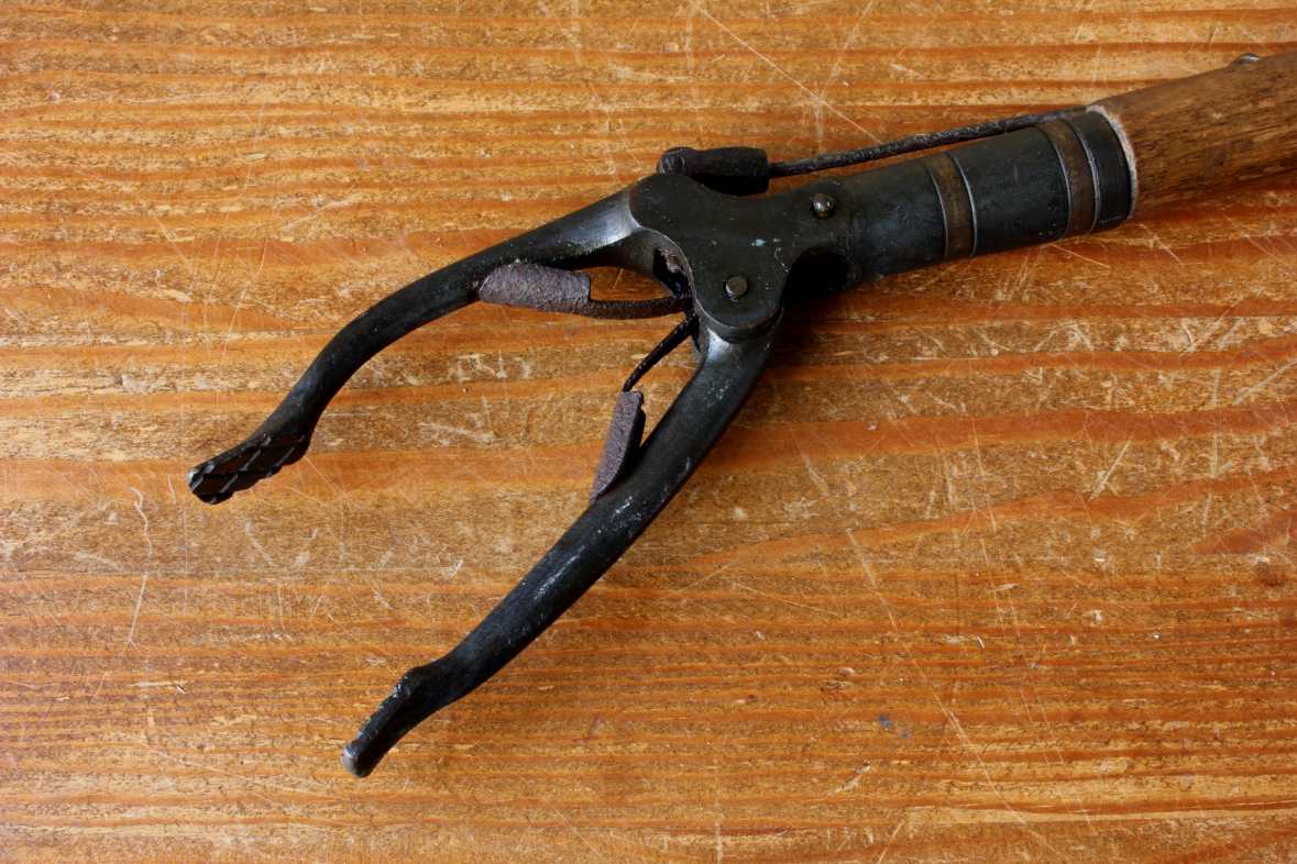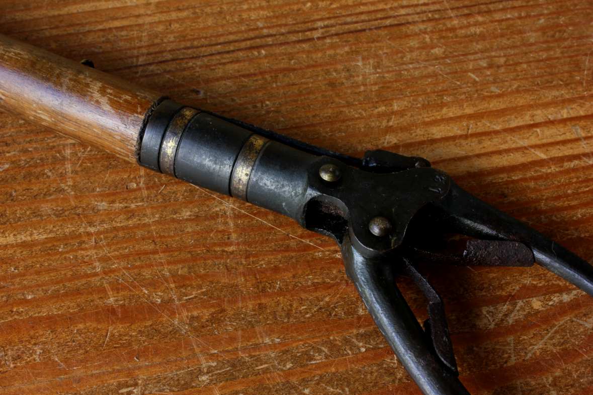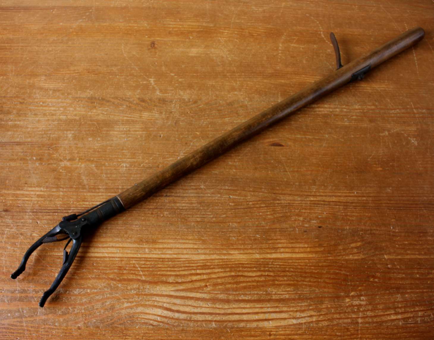 This antique reacher is 77 cm in length with a brass claw at the end and brass lever mechanism which all works well.