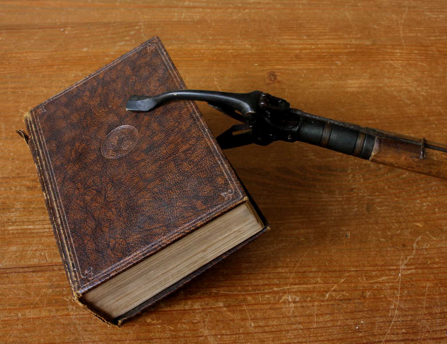 This handsome and useful library book grabber which dates from the 19th Century is made of wood with brass and gilded fittings and has a great patina.