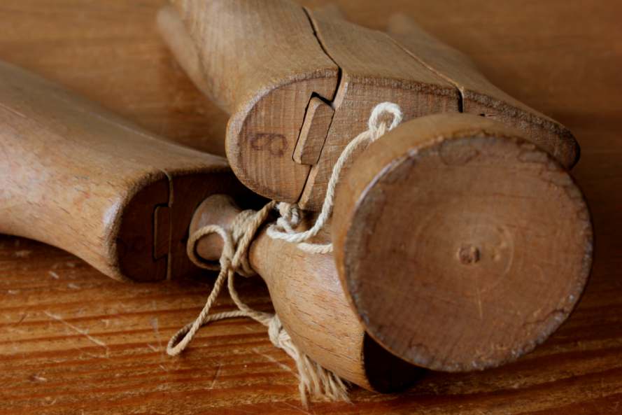This handsome pair of hand shaped glove stretchers are in 3 parts which slide together, have built in stands and are scarce items of treen.