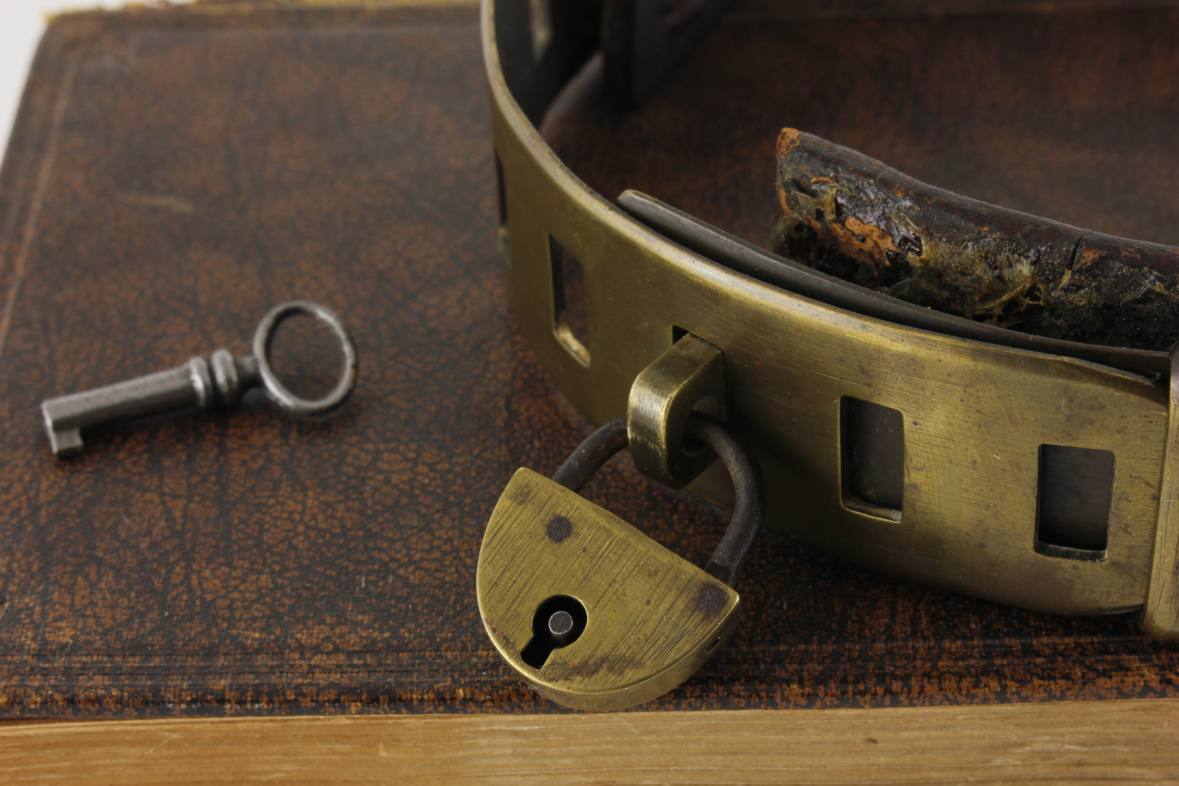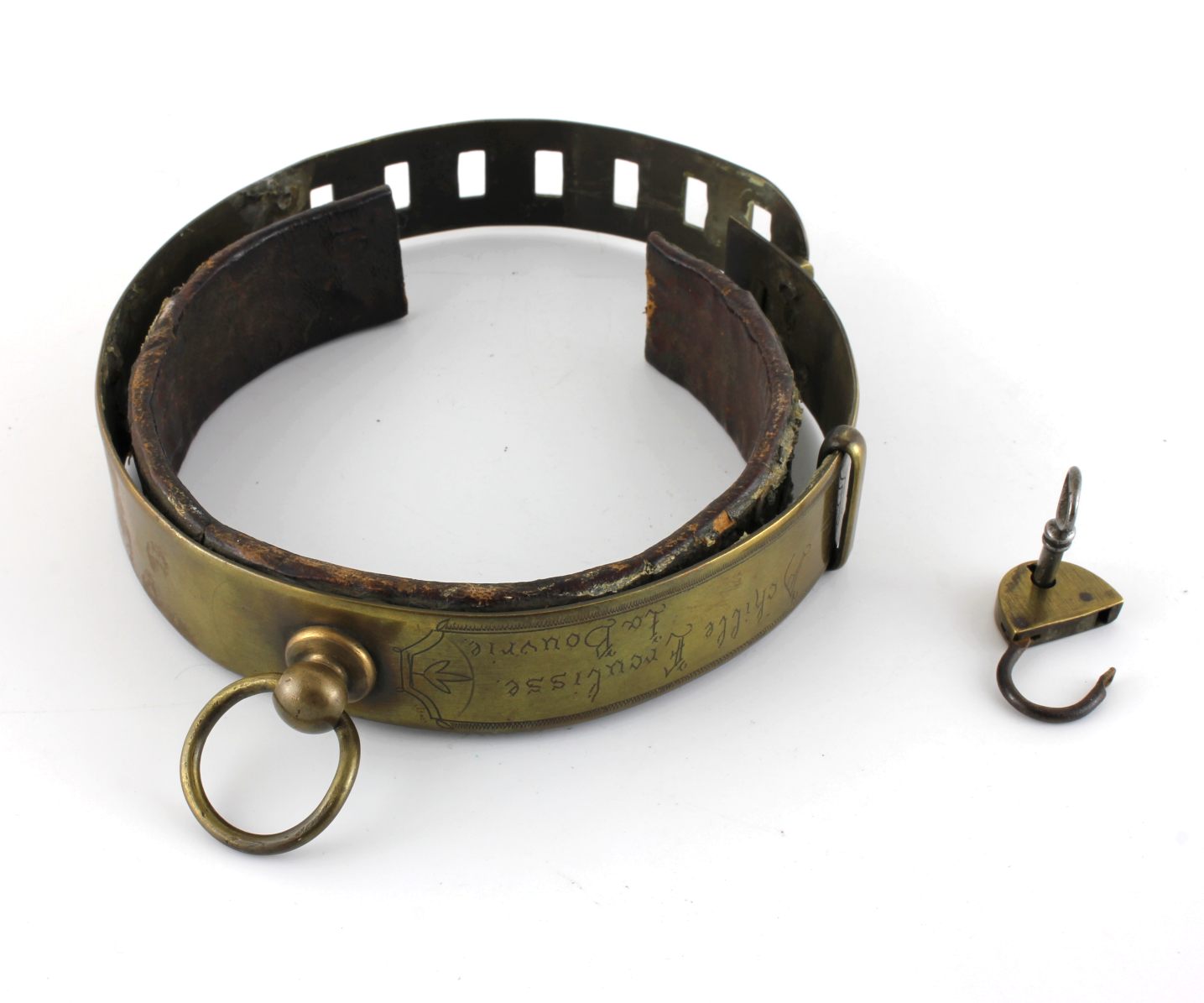 This large antique French dog collar which is made of brass dates from the 19th century.