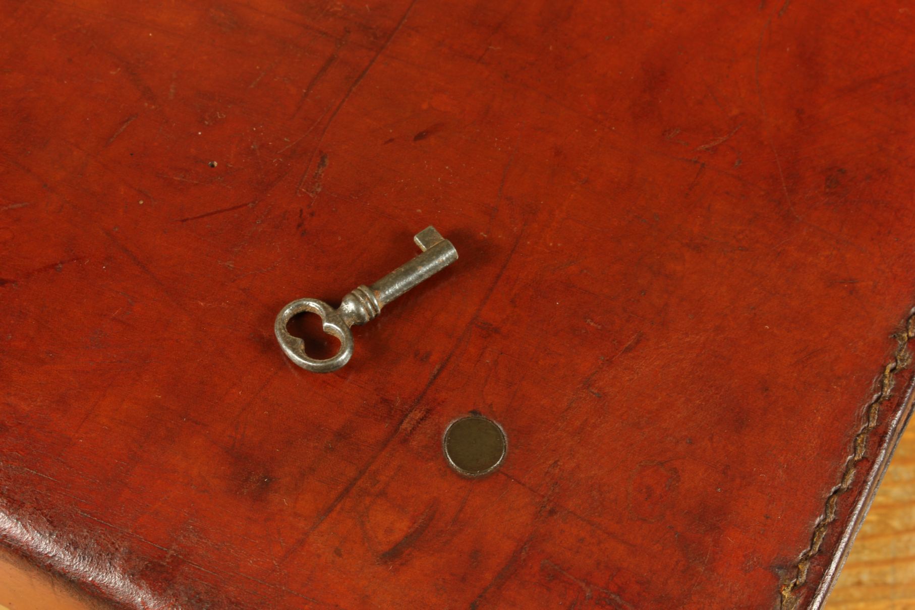 Material: Leather. Brass.