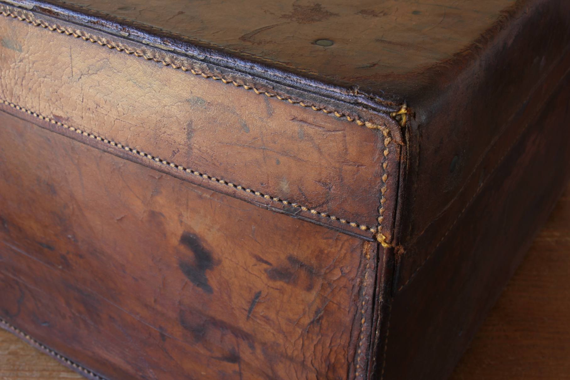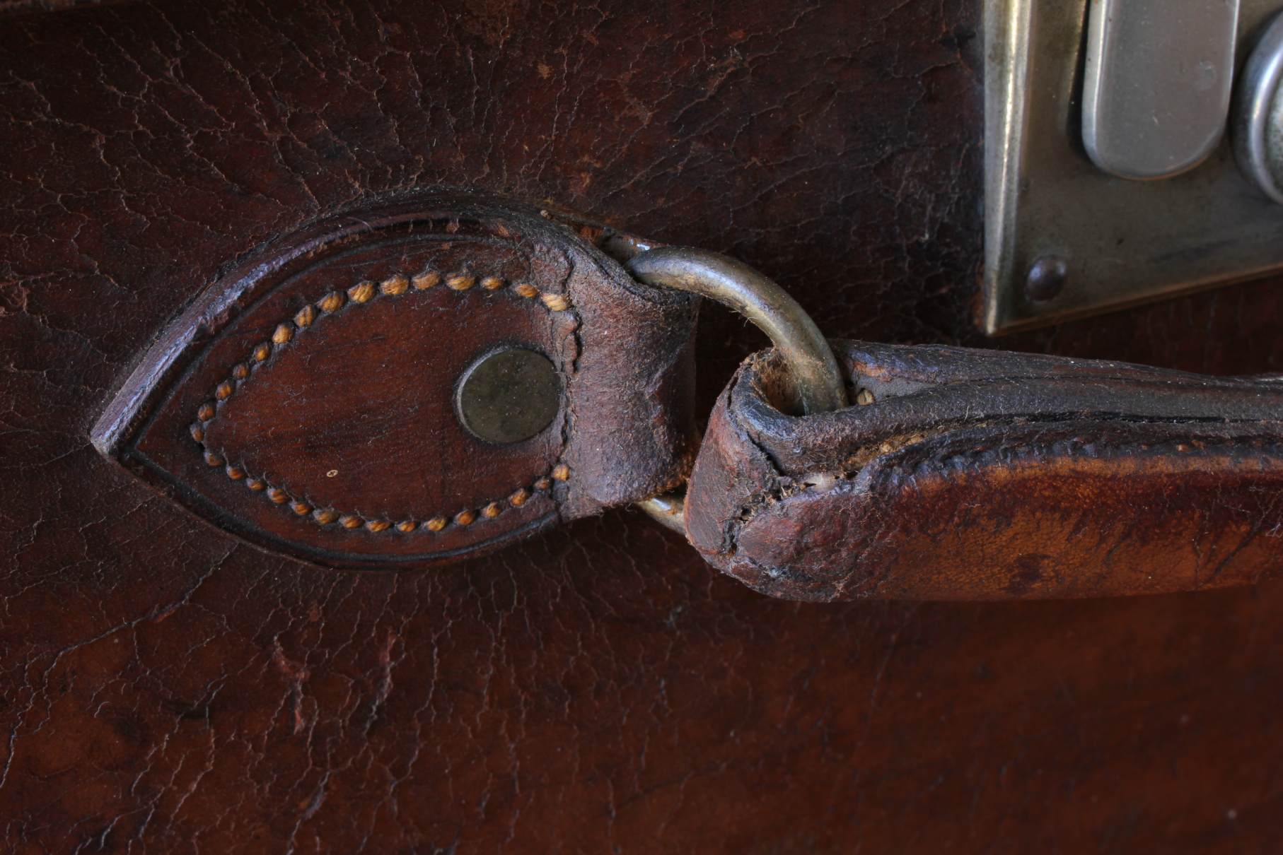 This antique multi hat case which is made of brown leather dates from c1900, is a good size and has metal fittings.