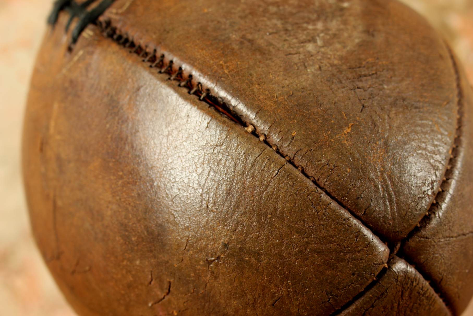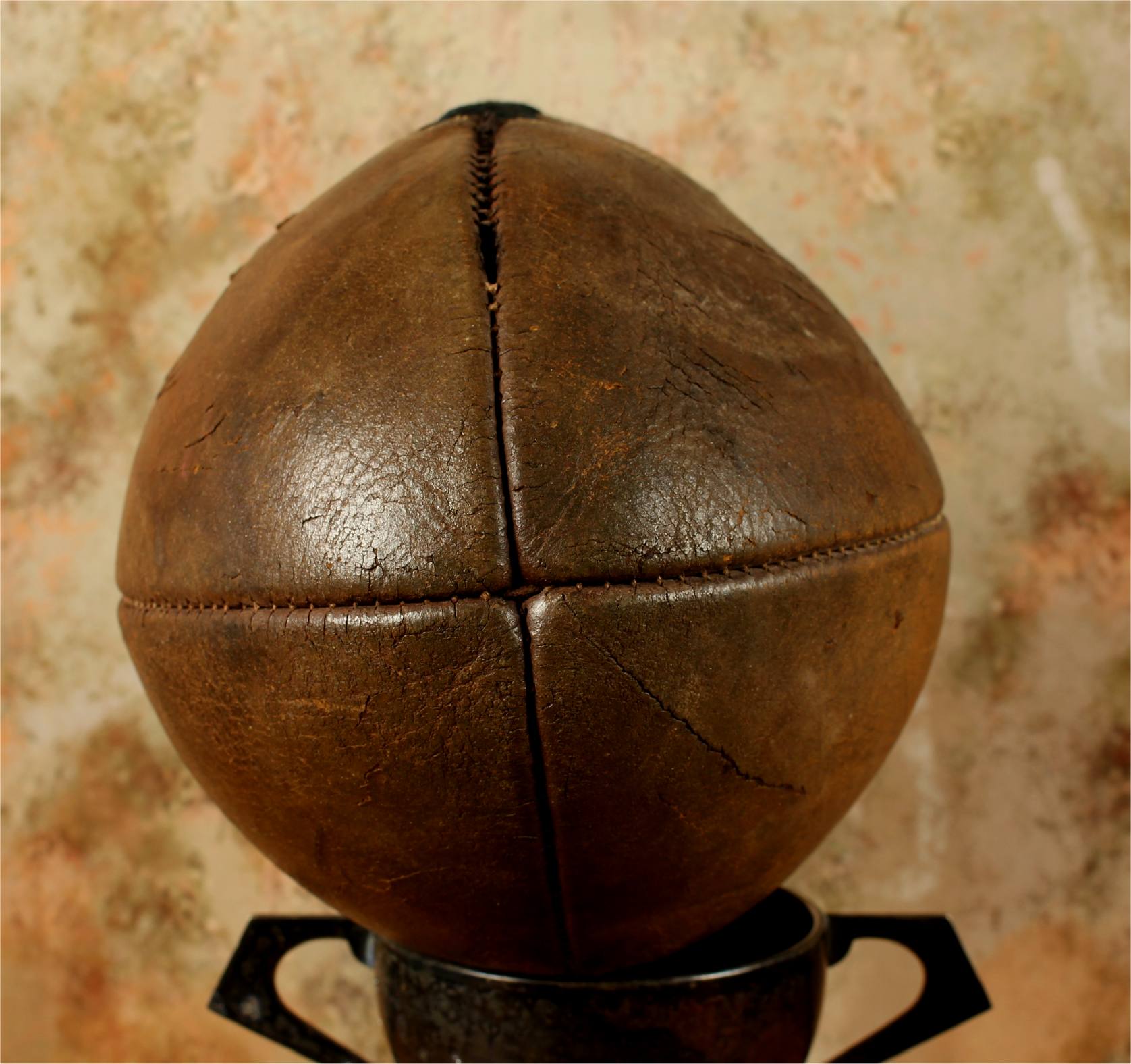 This handsome ball has 4 hand sewn leather panels and is a lace up which has had a new bladder fitted so inflates, holds air and displays well.