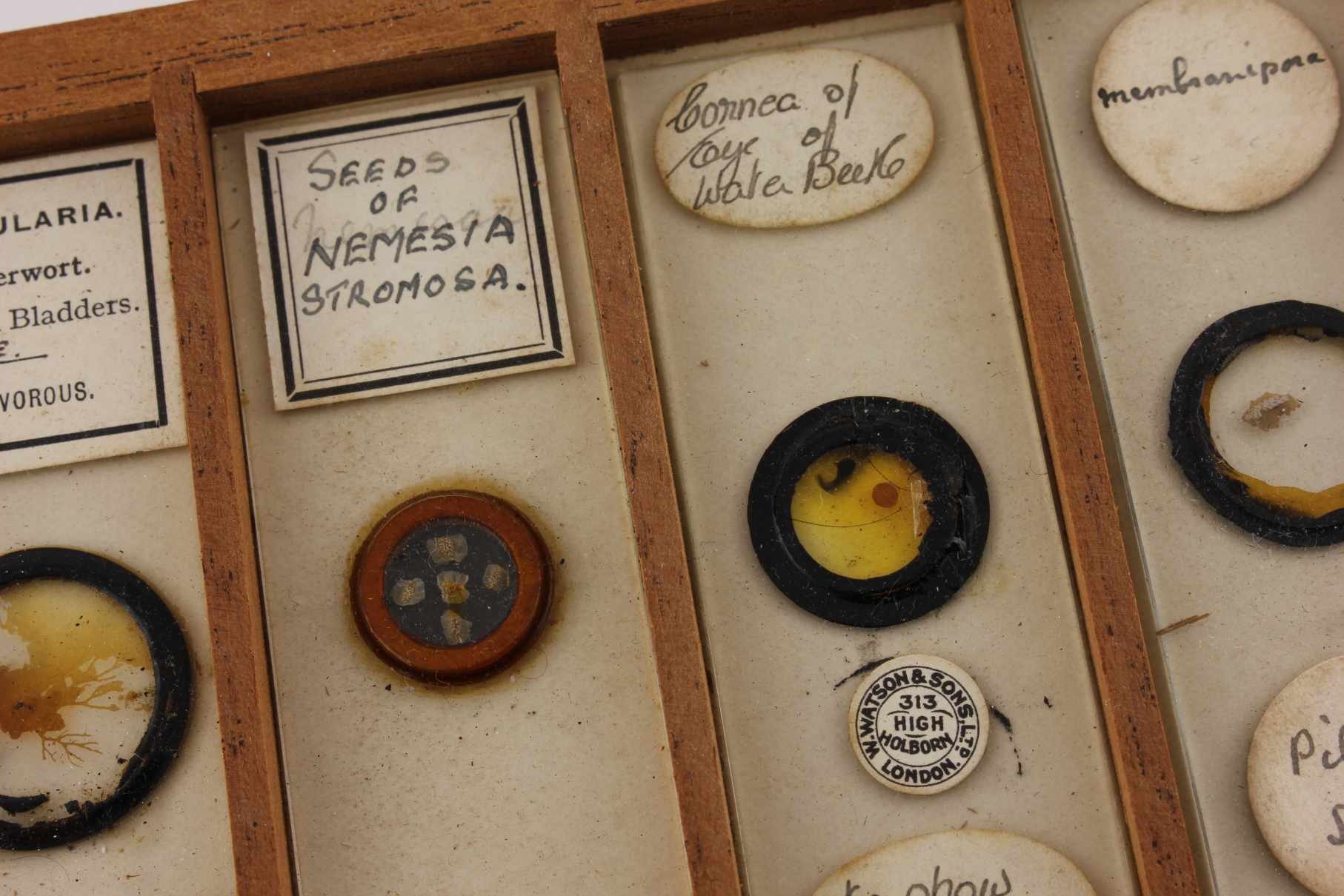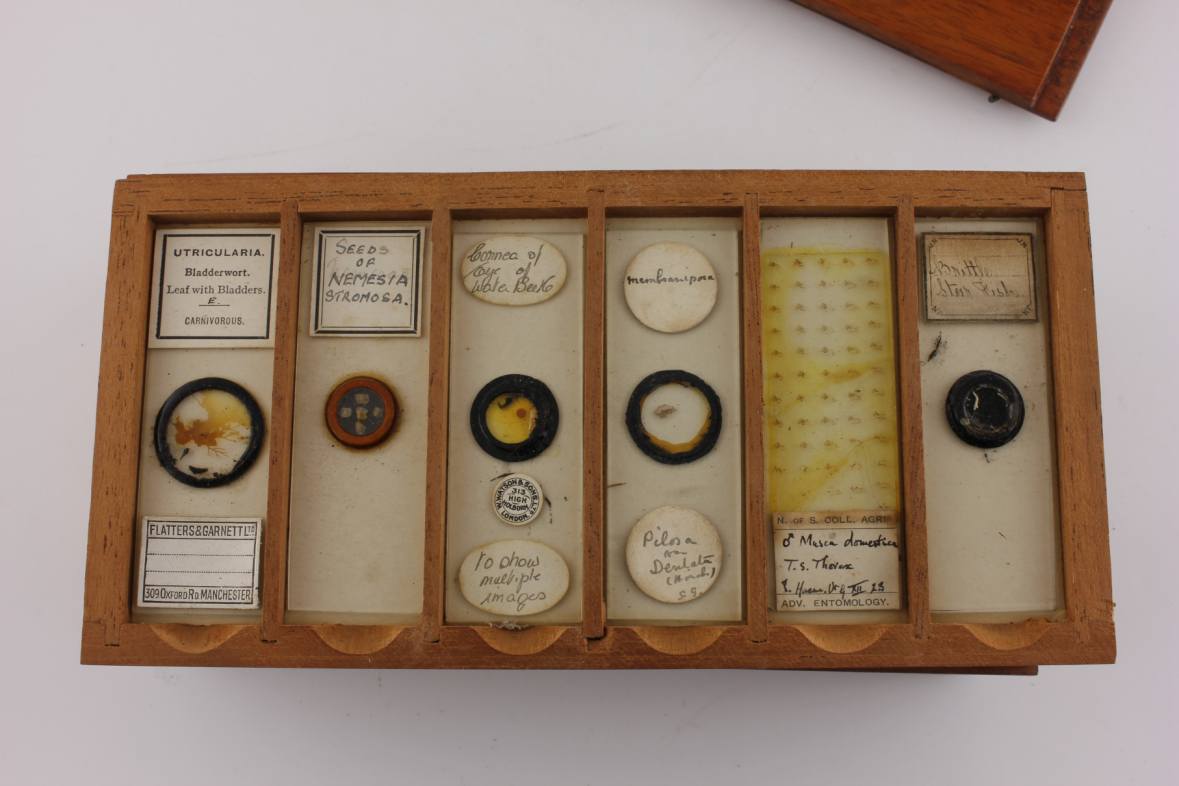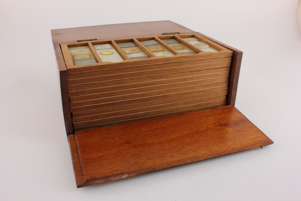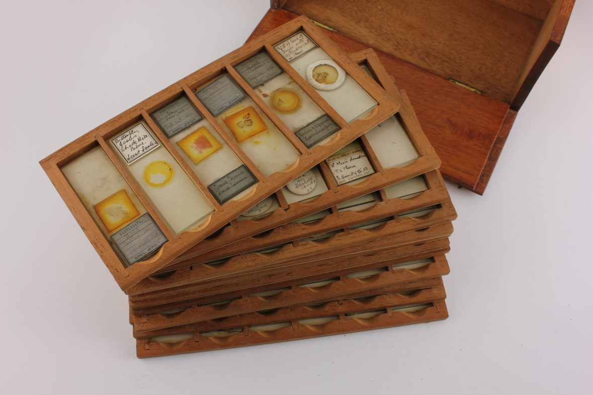 There is a selection of slides dating from 1890 onward. Some specimens are missing and some slides are broken but there are some nice examples in there.