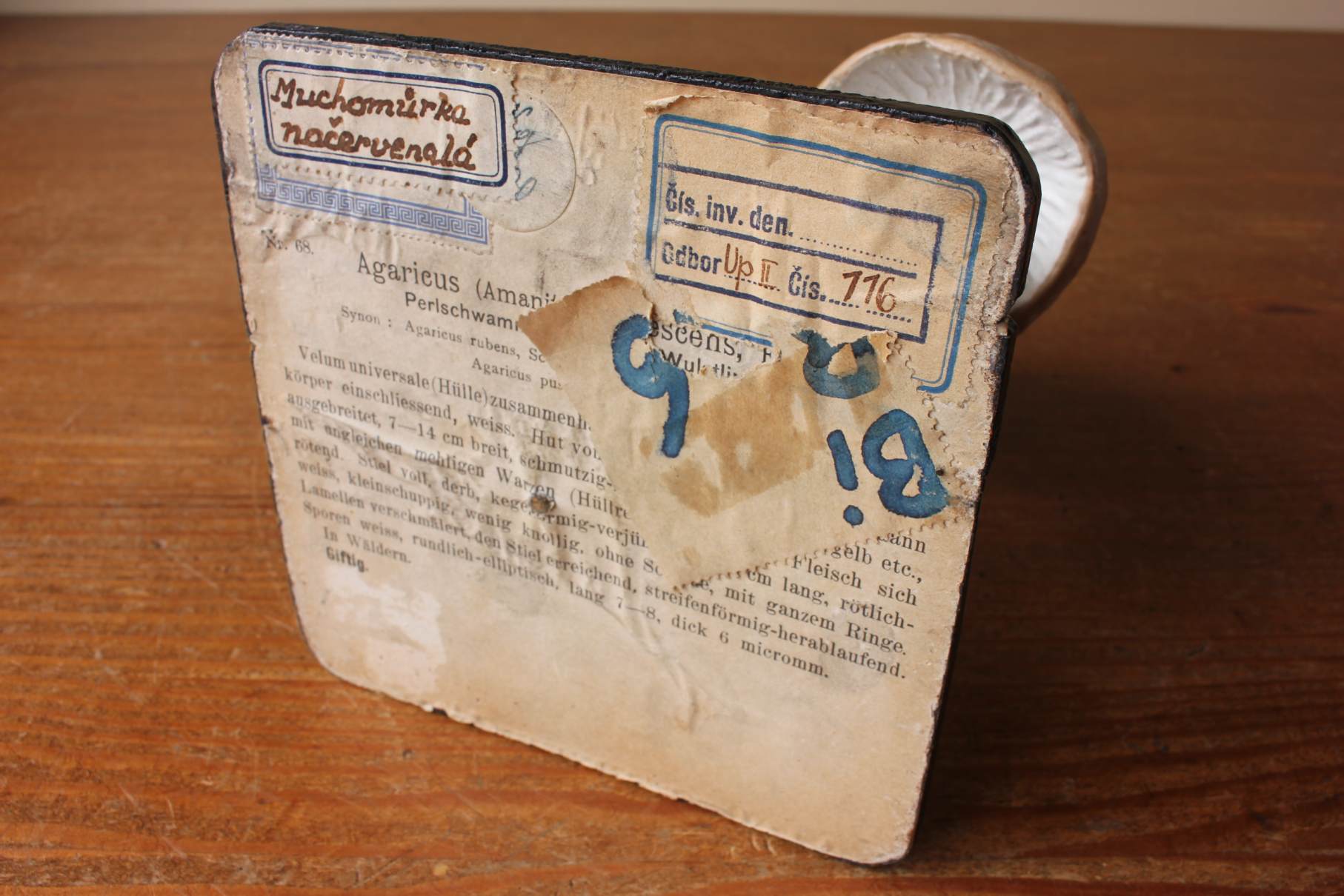This antique teaching aid which is hand made and hand painted is of a group of three mushrooms and dates from c1900.