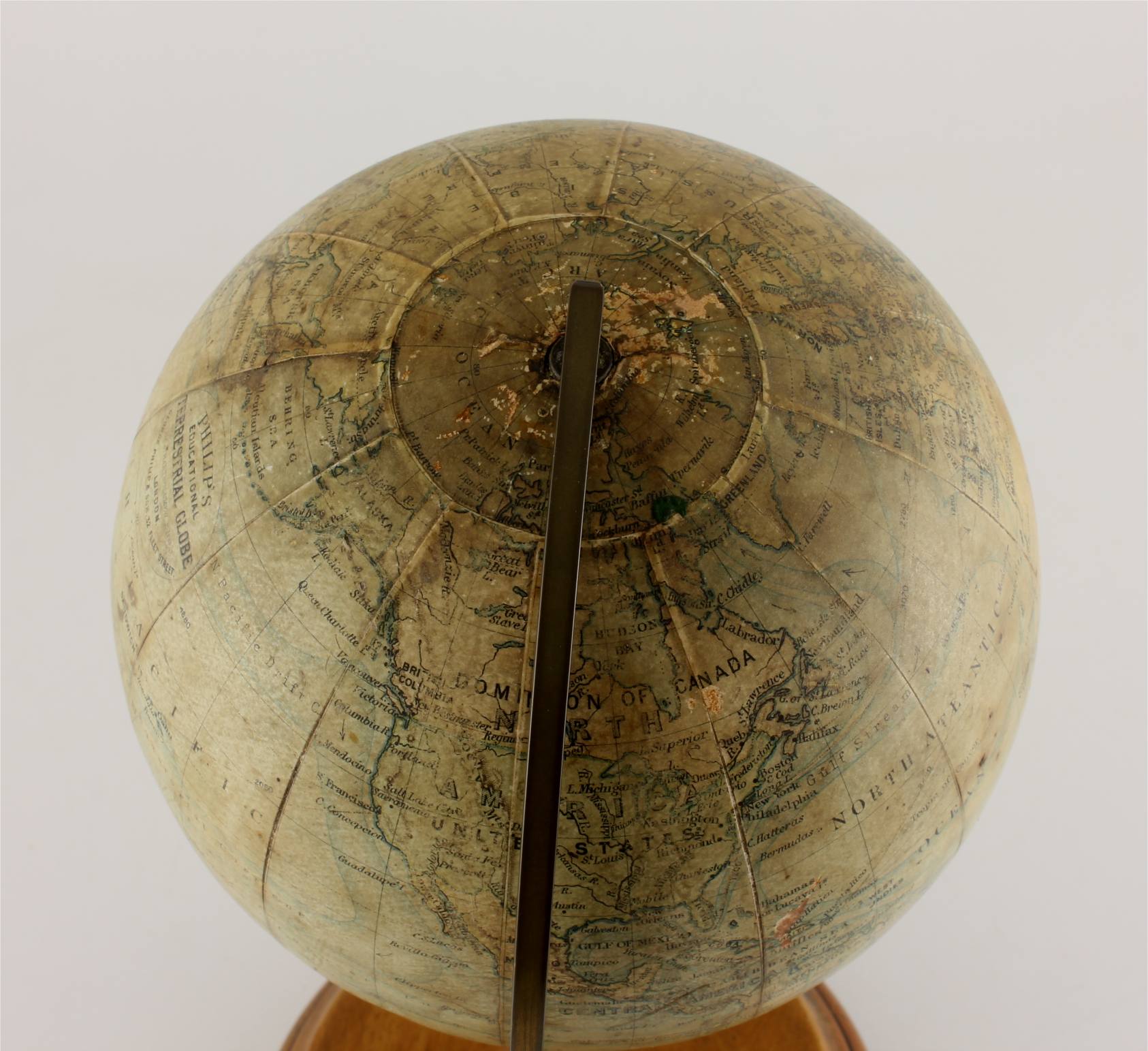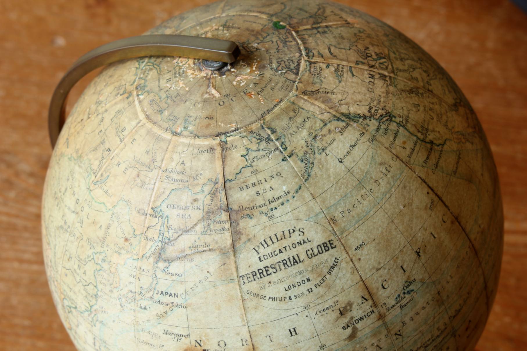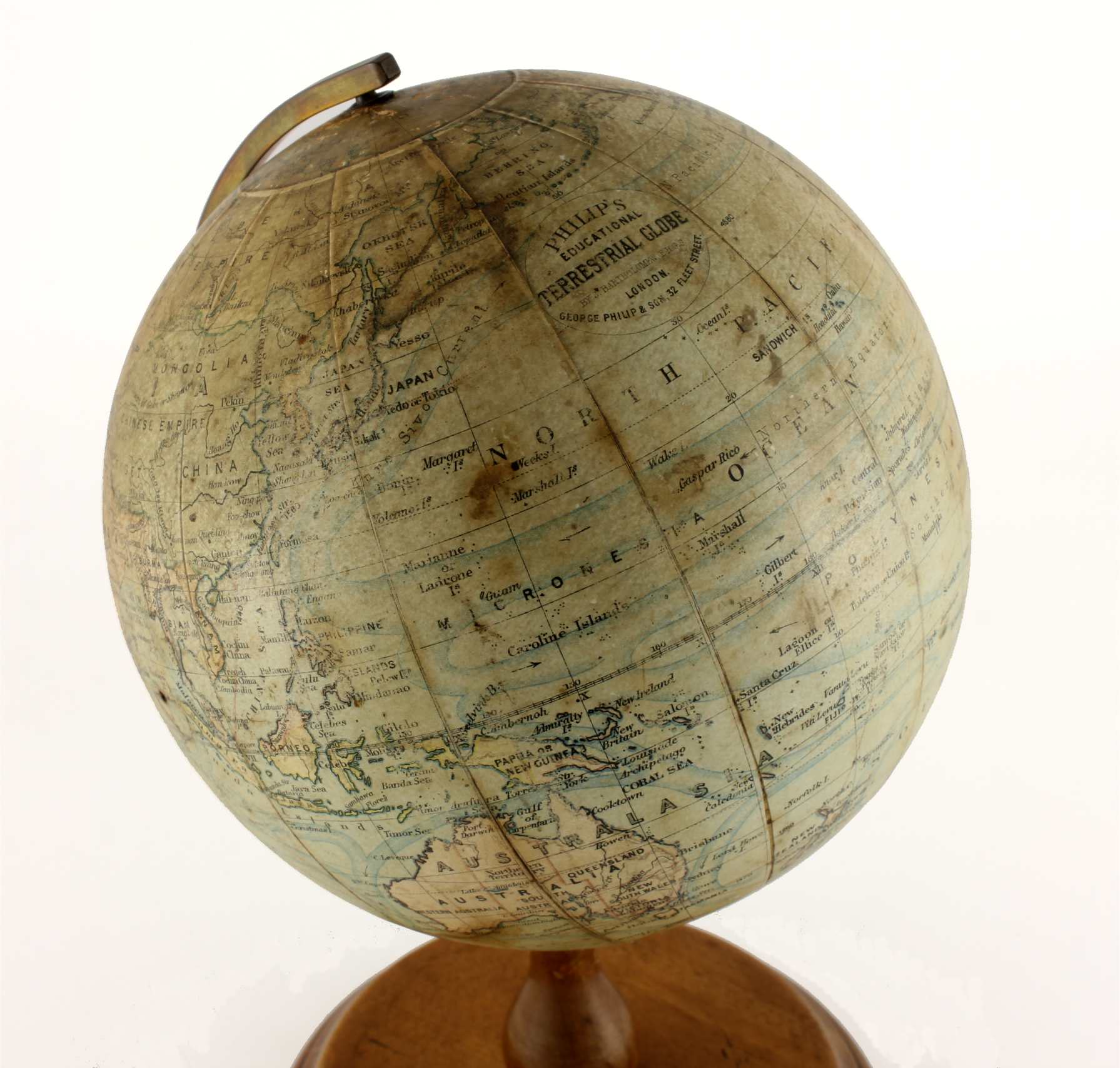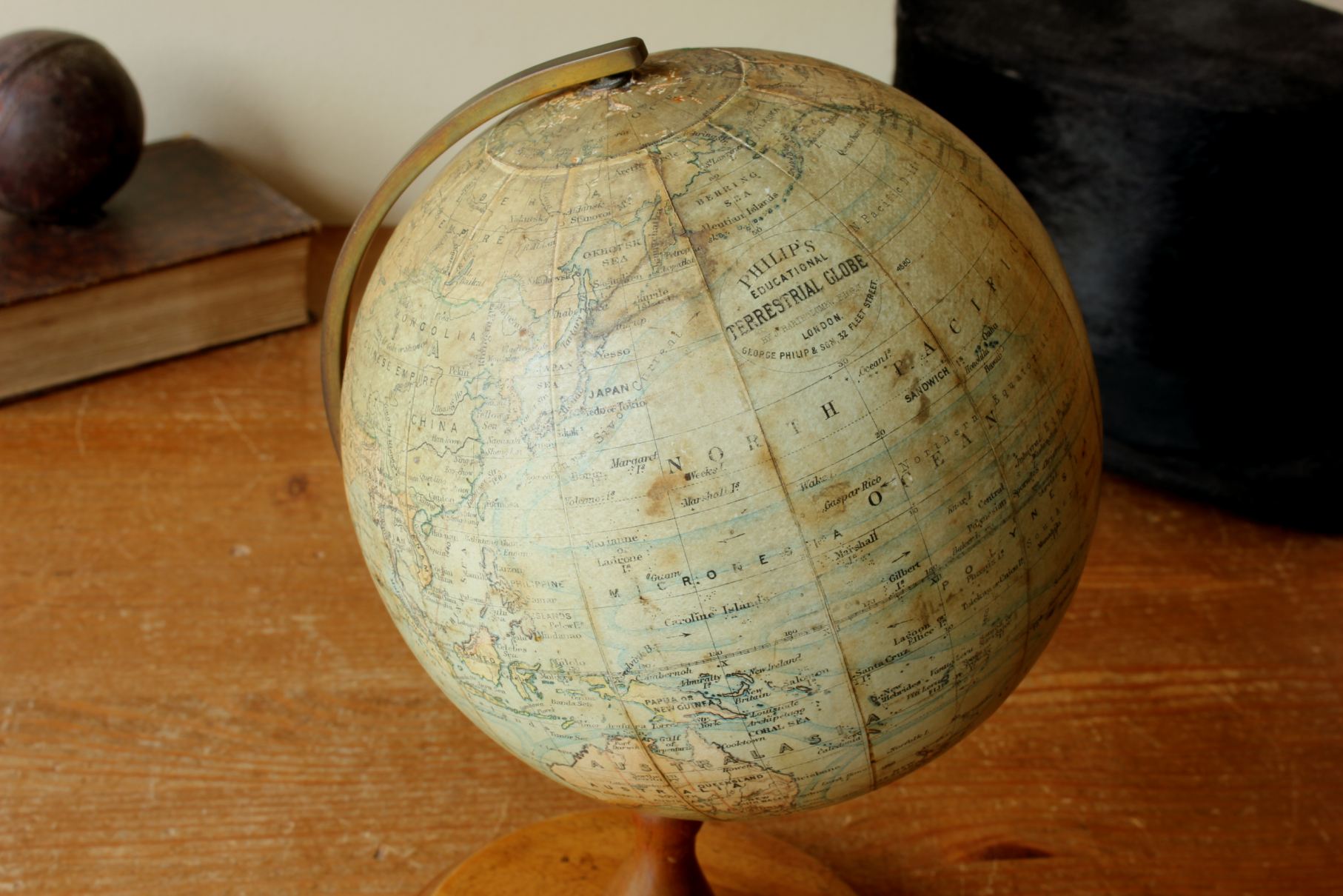 Printed on the globe is: Philip's Educational Terrestrial Globe by J Bartholomew FRGS London. George Philip & Son. 32 Fleet Street.