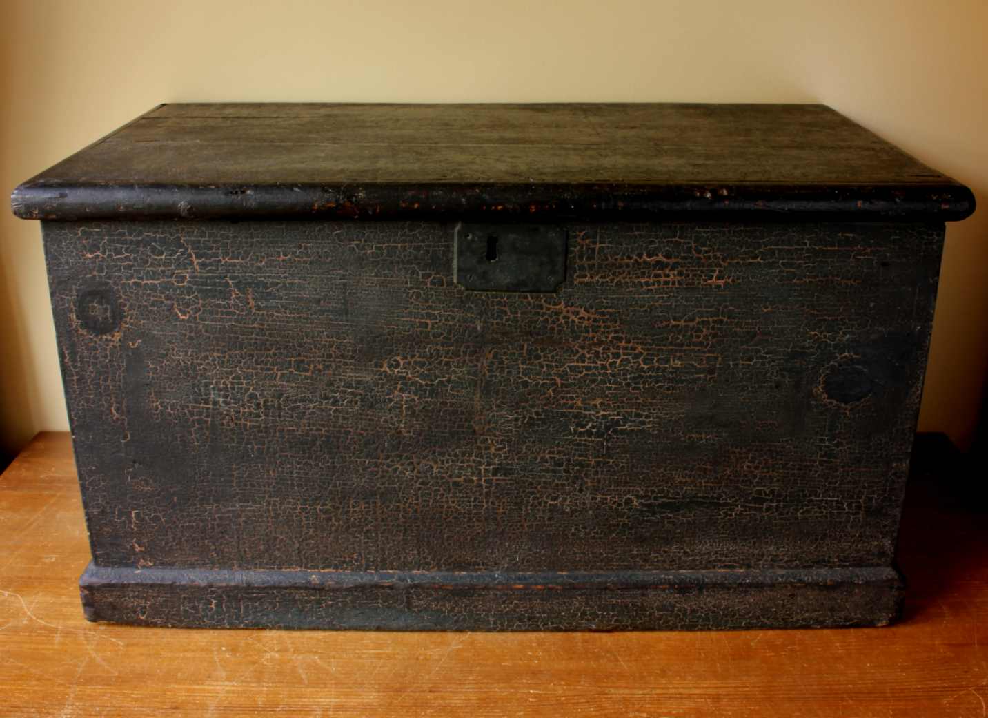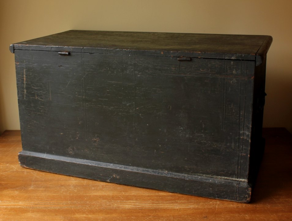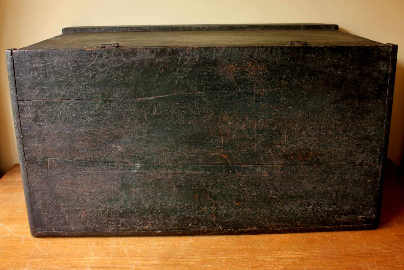 This handsome wooden trunk that dates from the early 19th century has a wonderful look with it's original dark green / black paint that has aged and crazed over the years.