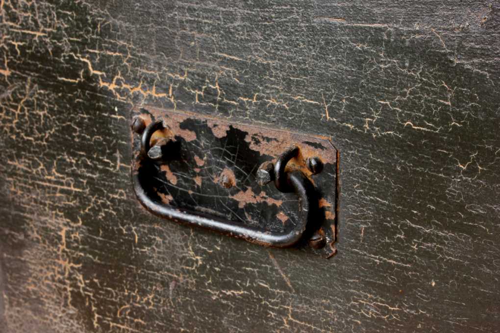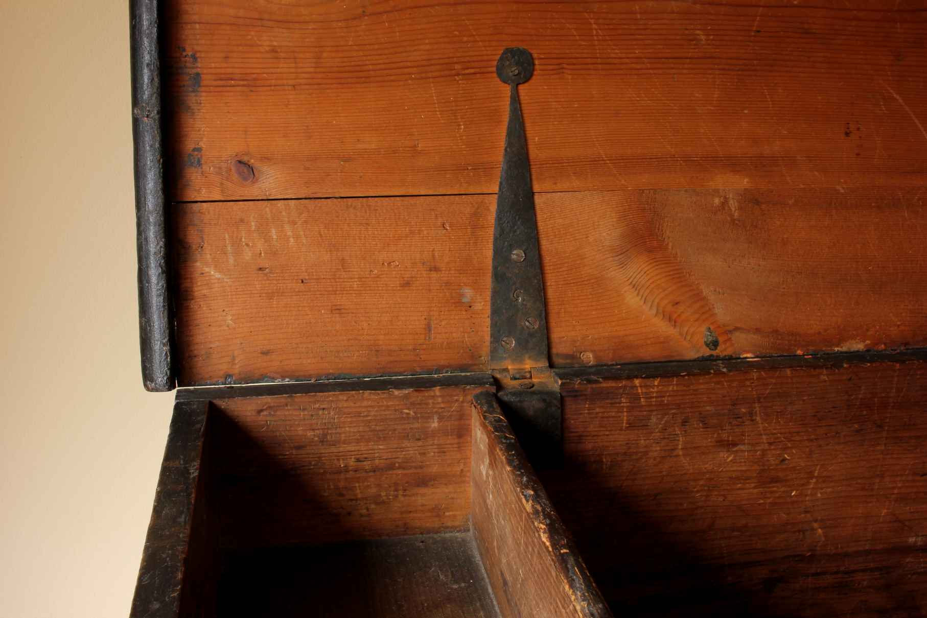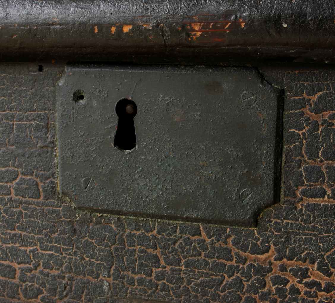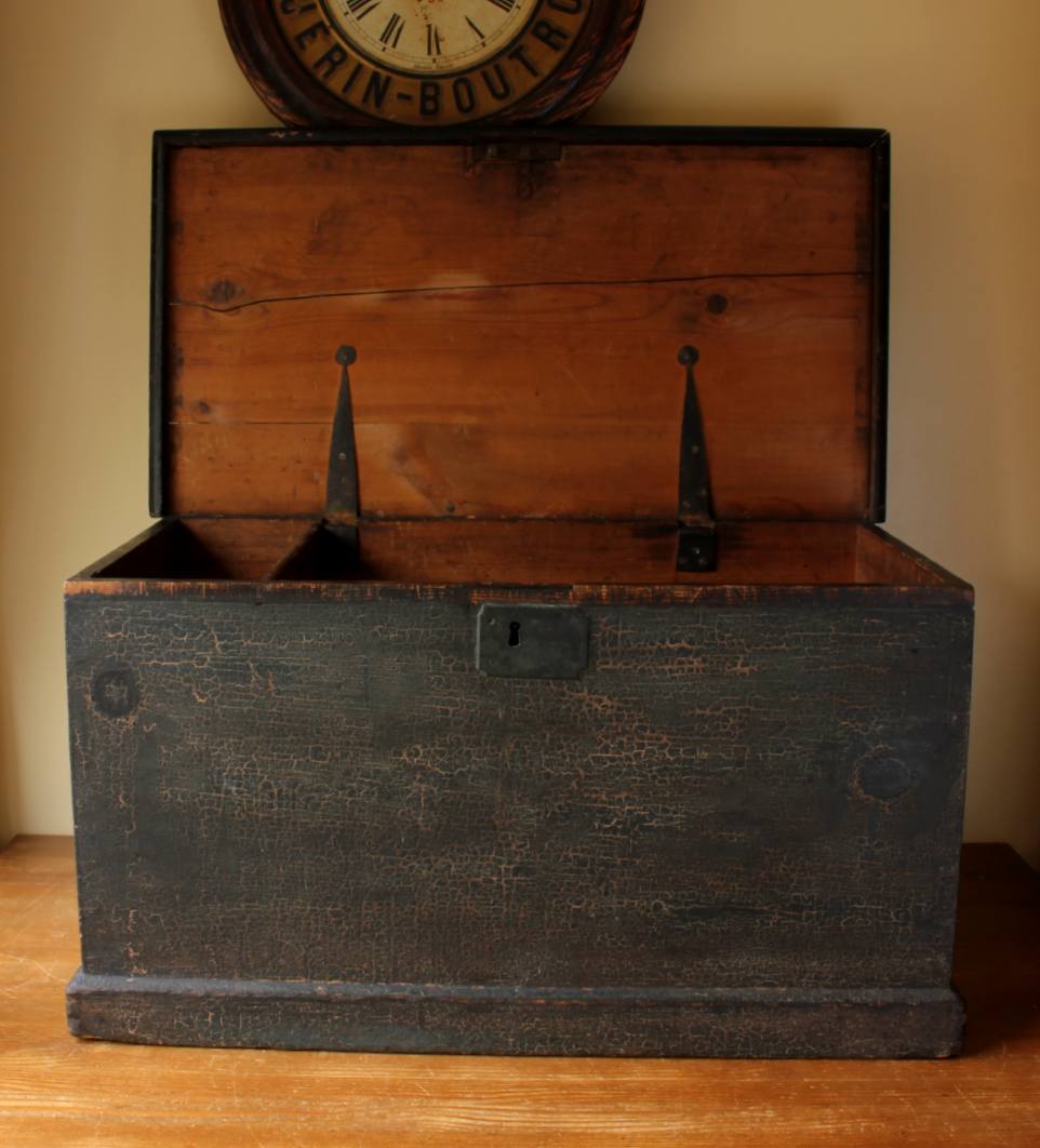 This handsome wooden trunk that dates from the early 19th century has a wonderful look with it's original dark green / black paint that has aged and crazed over the years.