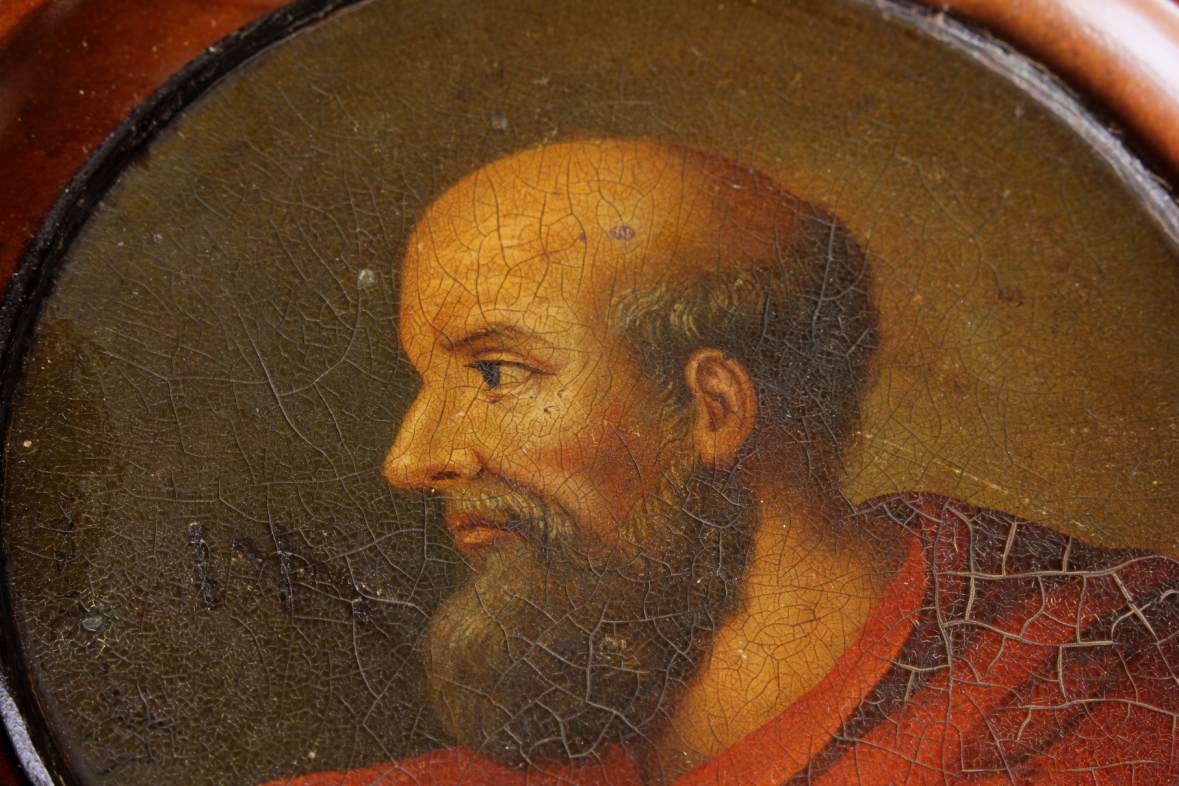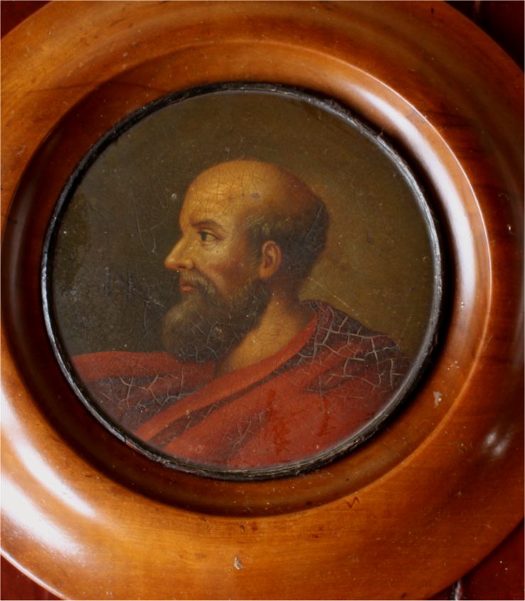 This antique French miniature oil painting which is mounted in a beautiful wooden frame is of a bearded man wearing a red robe and dates from the 19th century.