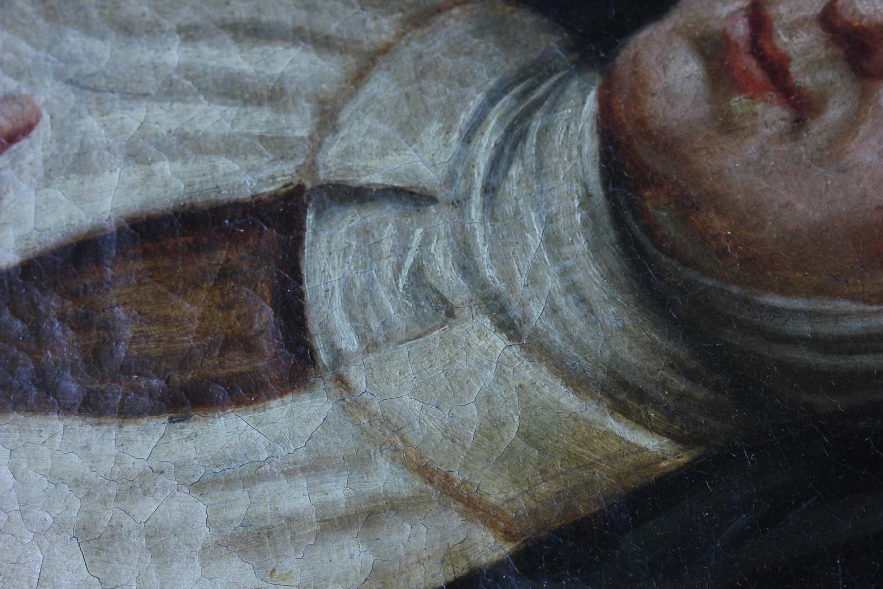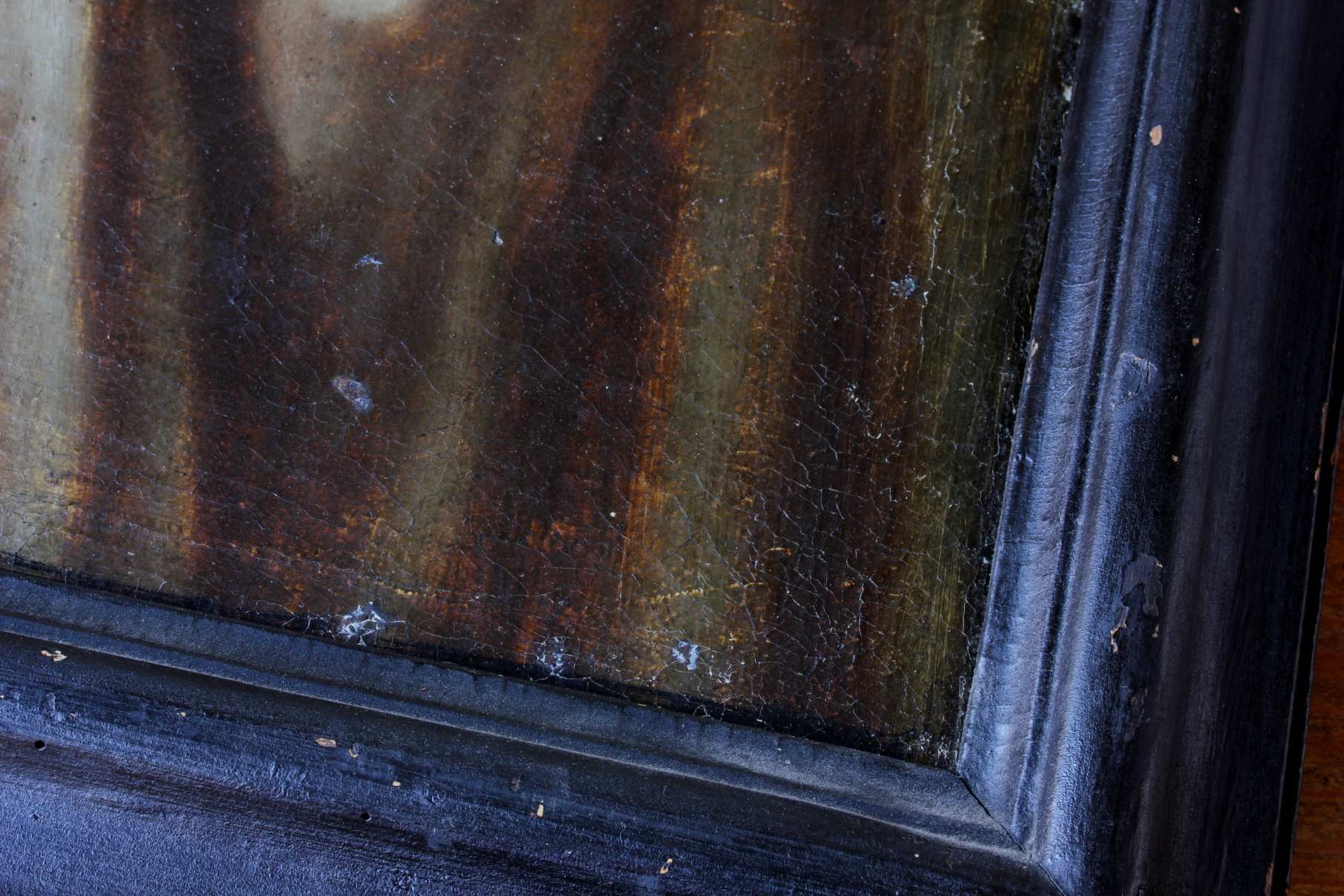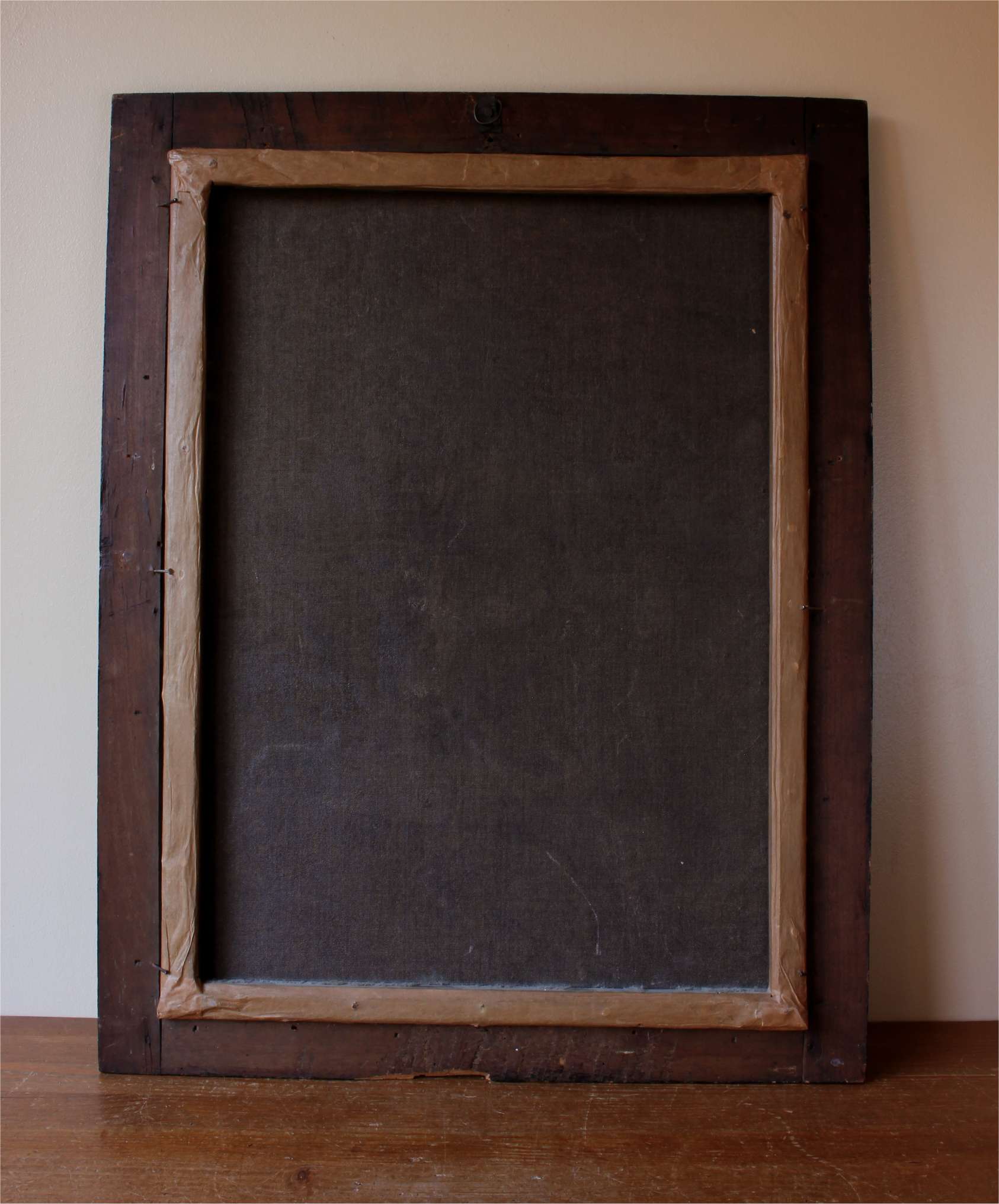Condition: Good decorative antique condition with signs of use in keeping with age. Artwork has some crazing, cracks, small marks and restoration. Frame has chips and wear. Please see pictures.