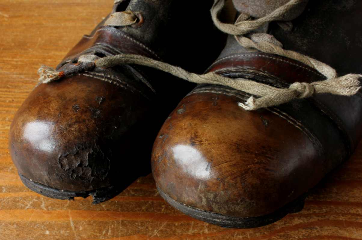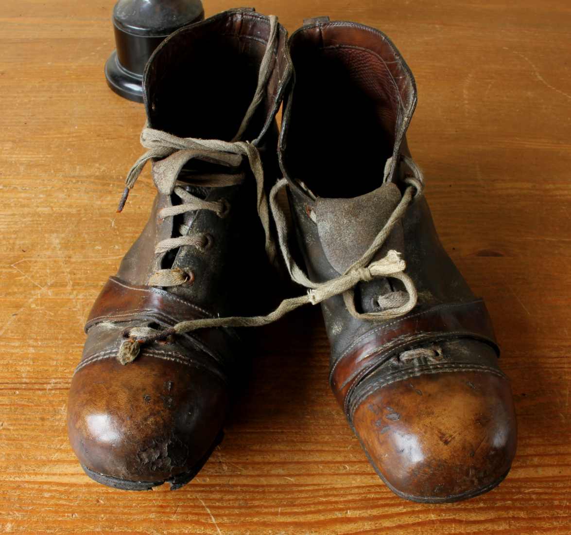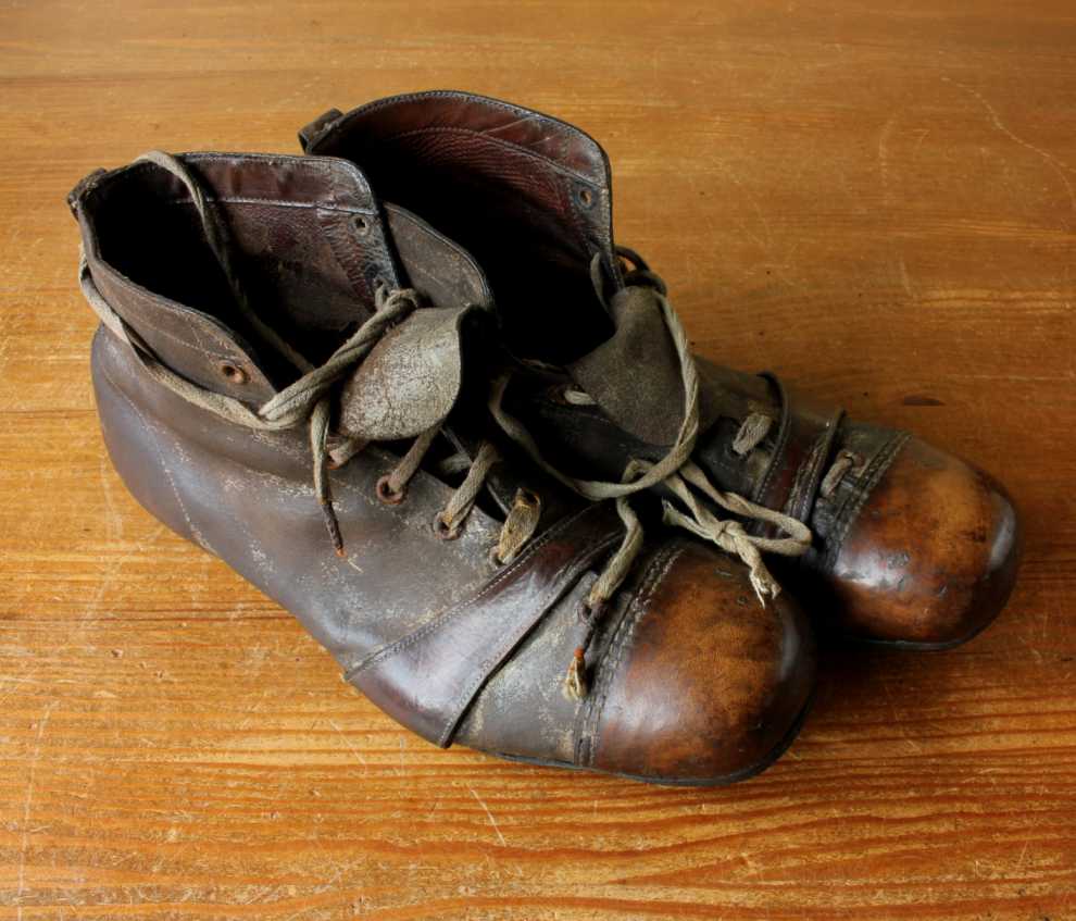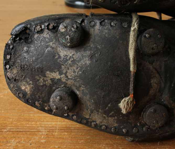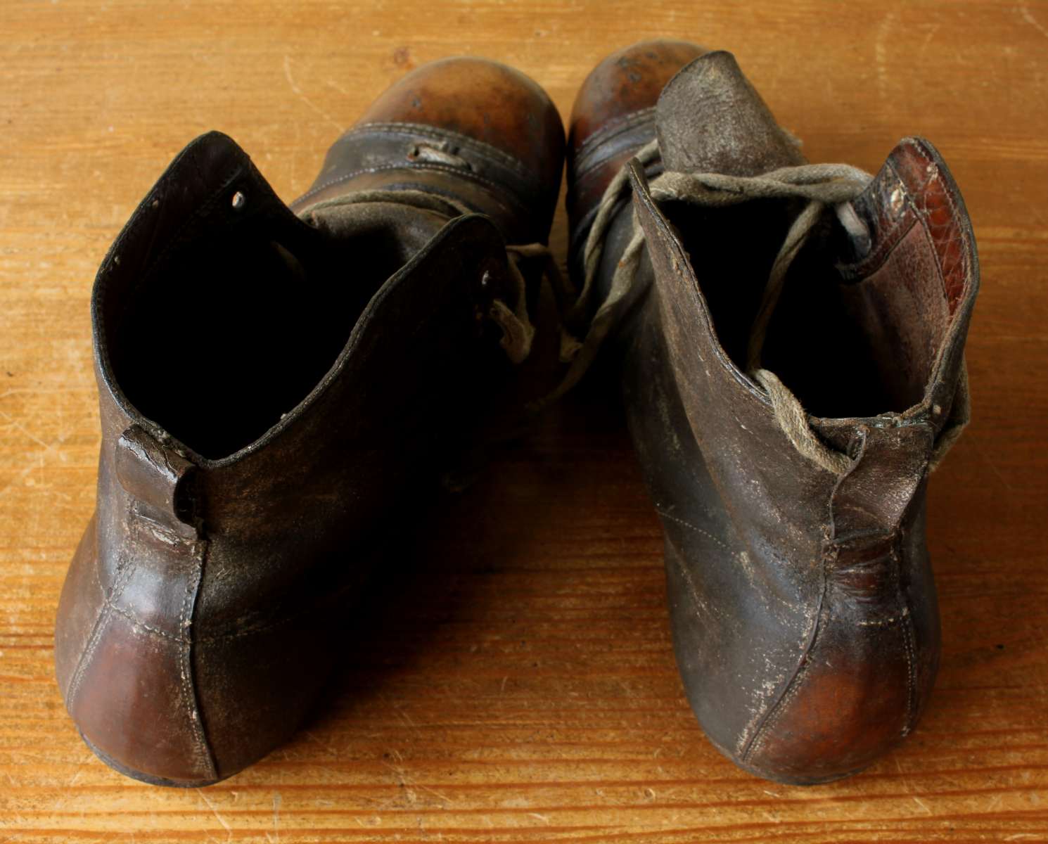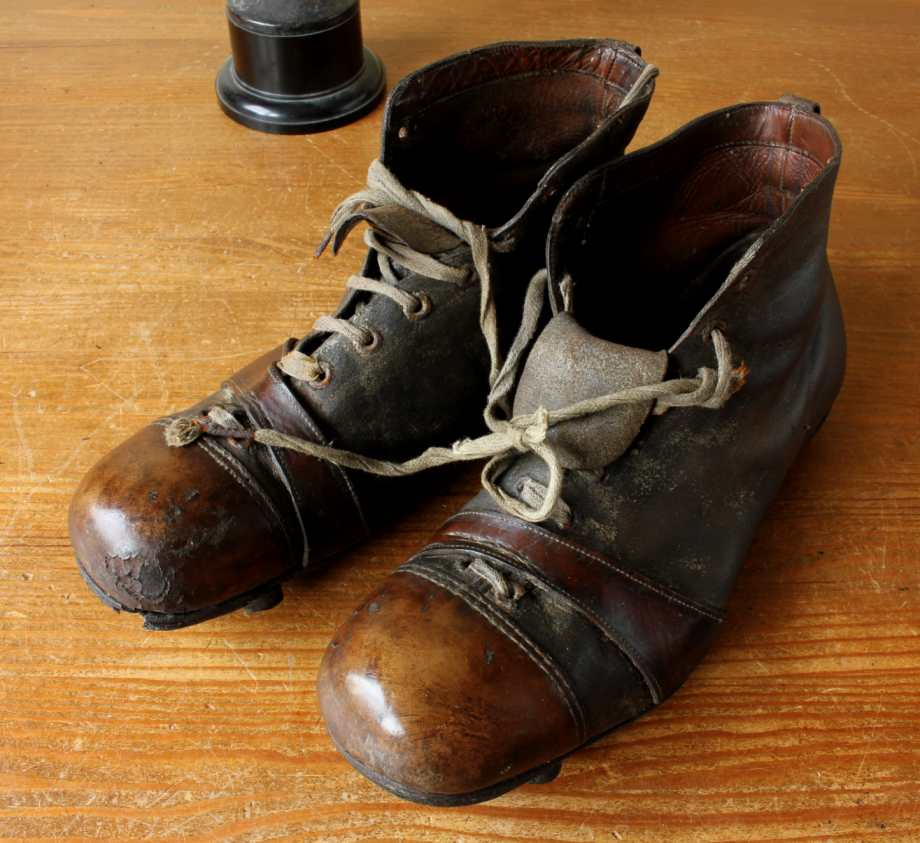 This handsome pair of vintage / antique football boots which have lots of age related wear are made of brown leather with leather soles, nailed on studs and date from c1930.