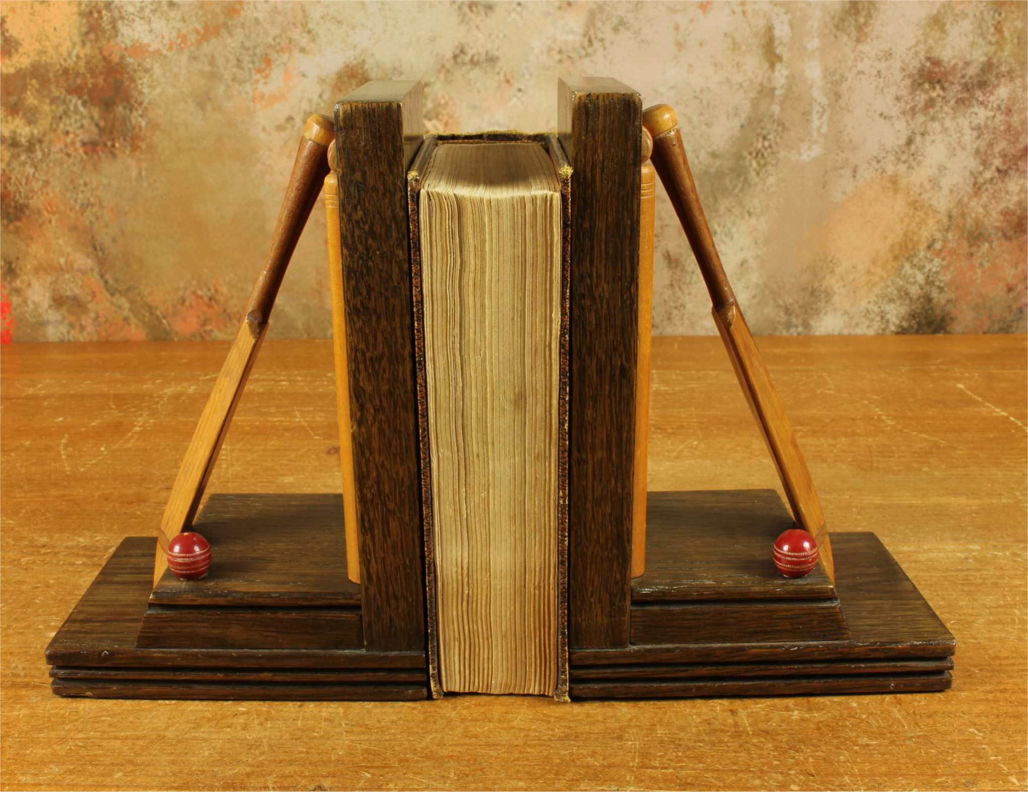 This handsome pair of wooden cricket bookends which are by the Thornton Smith Company were handmade in c1930.