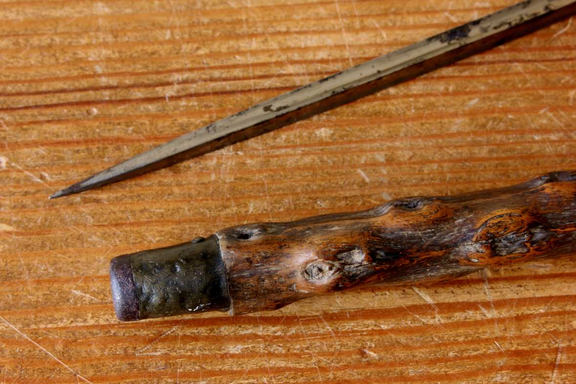 Materials: Thornwood shaft. Brass tip. Metal sword.