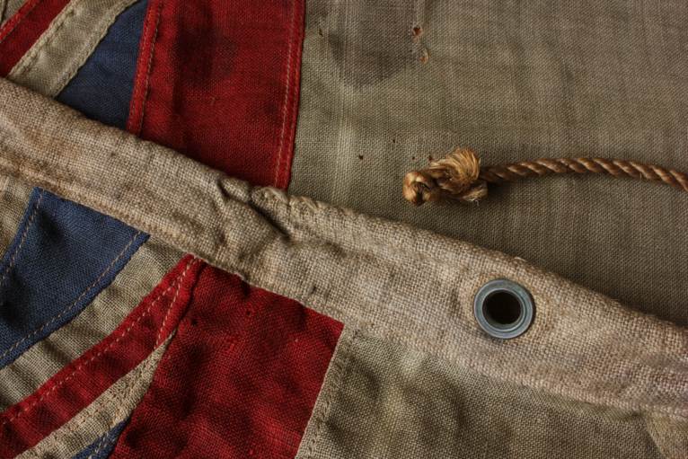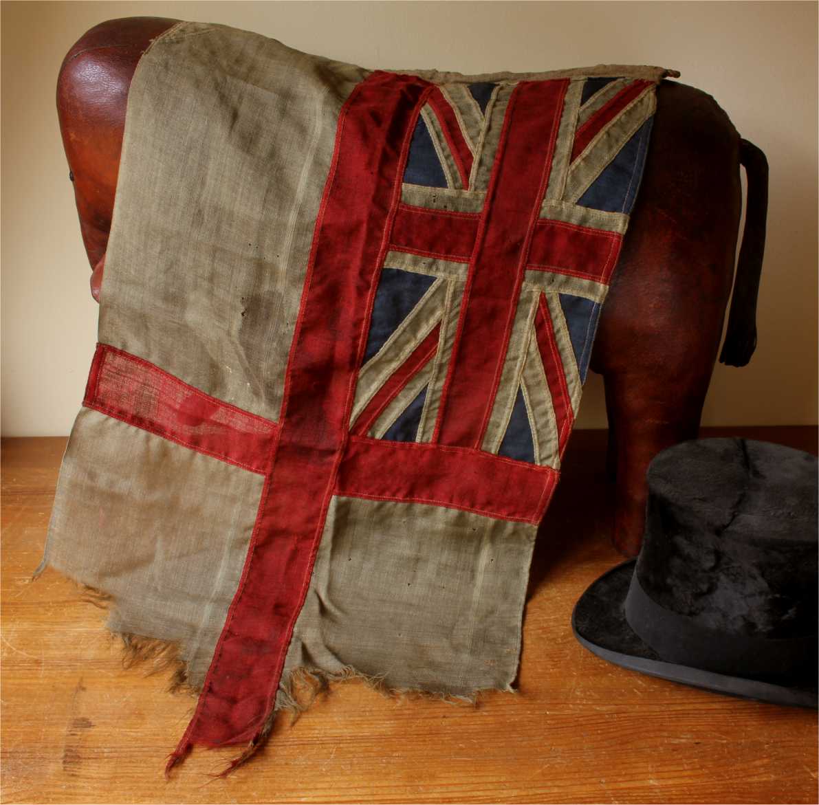 The flag which dates from c1900 is a small size and would have been used on board a ship or boat.