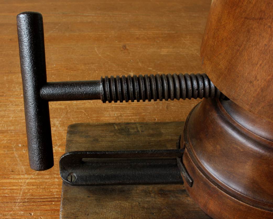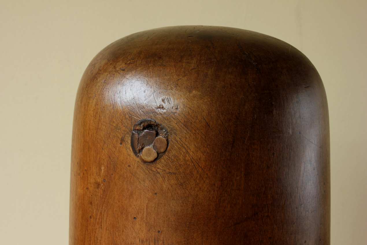 This handsome Milliner's hat stretcher which dates from c1900 has a metal handle which adjusts the size when turned and has a wonderful rich patina so looks fantastic on display.