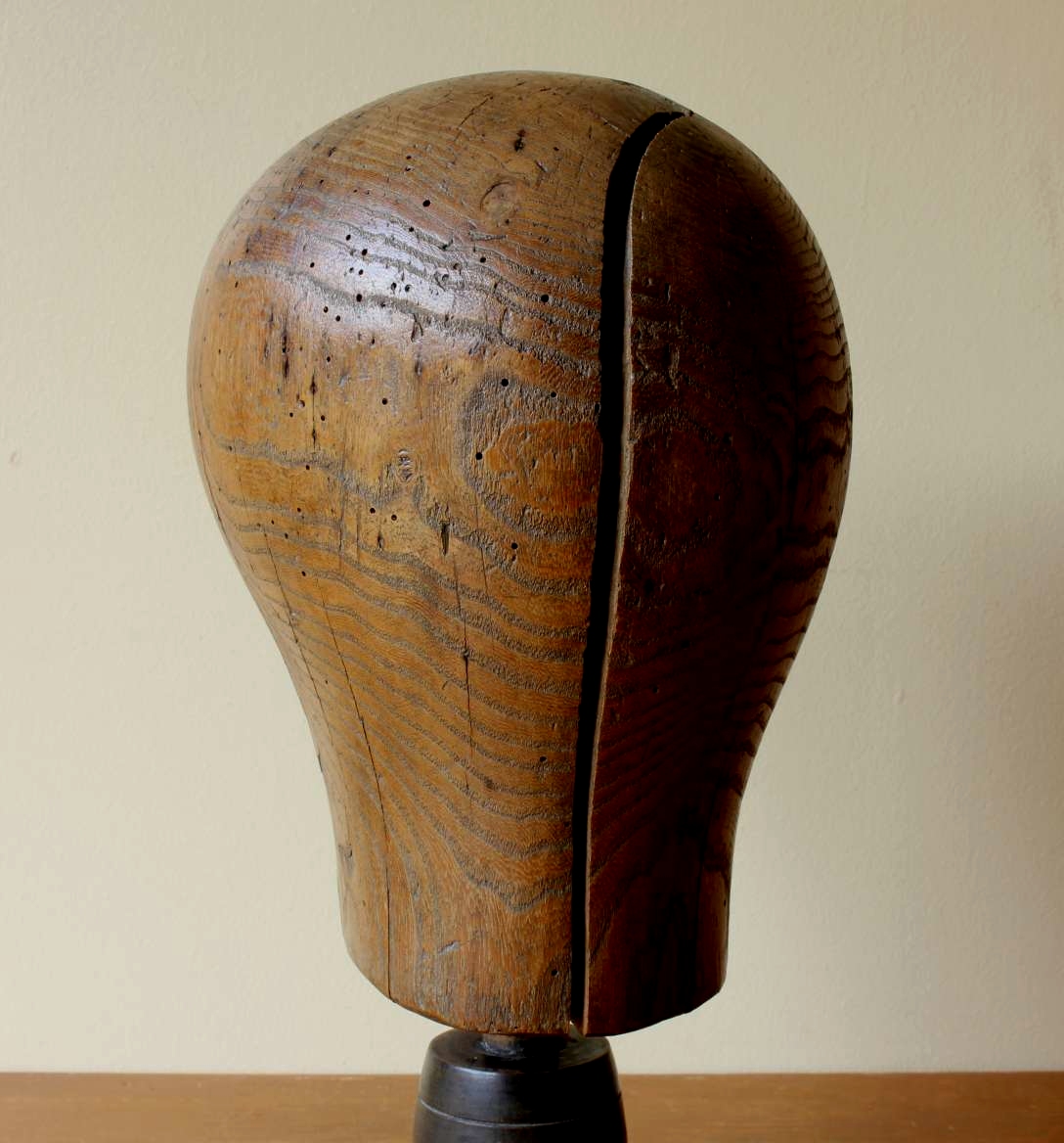 This hat block is unusual as it comes with it's wooden base clamp so would have been clamped to a workbench for ease of use.