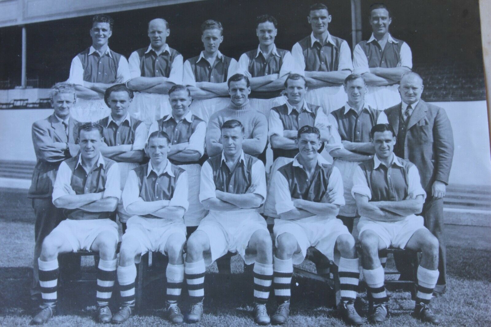 This original photograph of Arsenal F.C. was taken by the team photographer Lambert Jackson in 1948 and includes some players such as Ronnie Rooke, Joe Mercer, George Swindin, Archibald Macaulay and others.