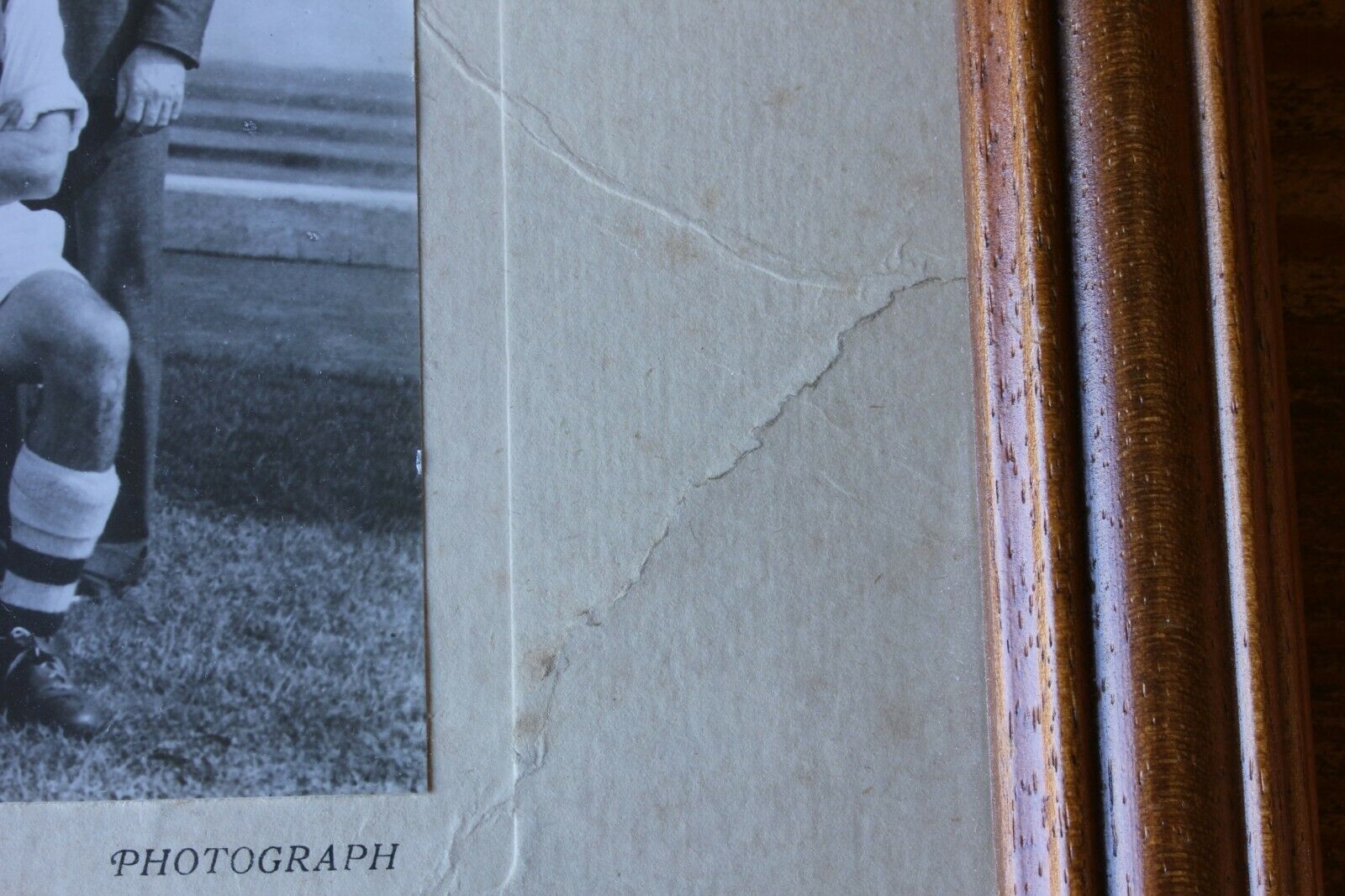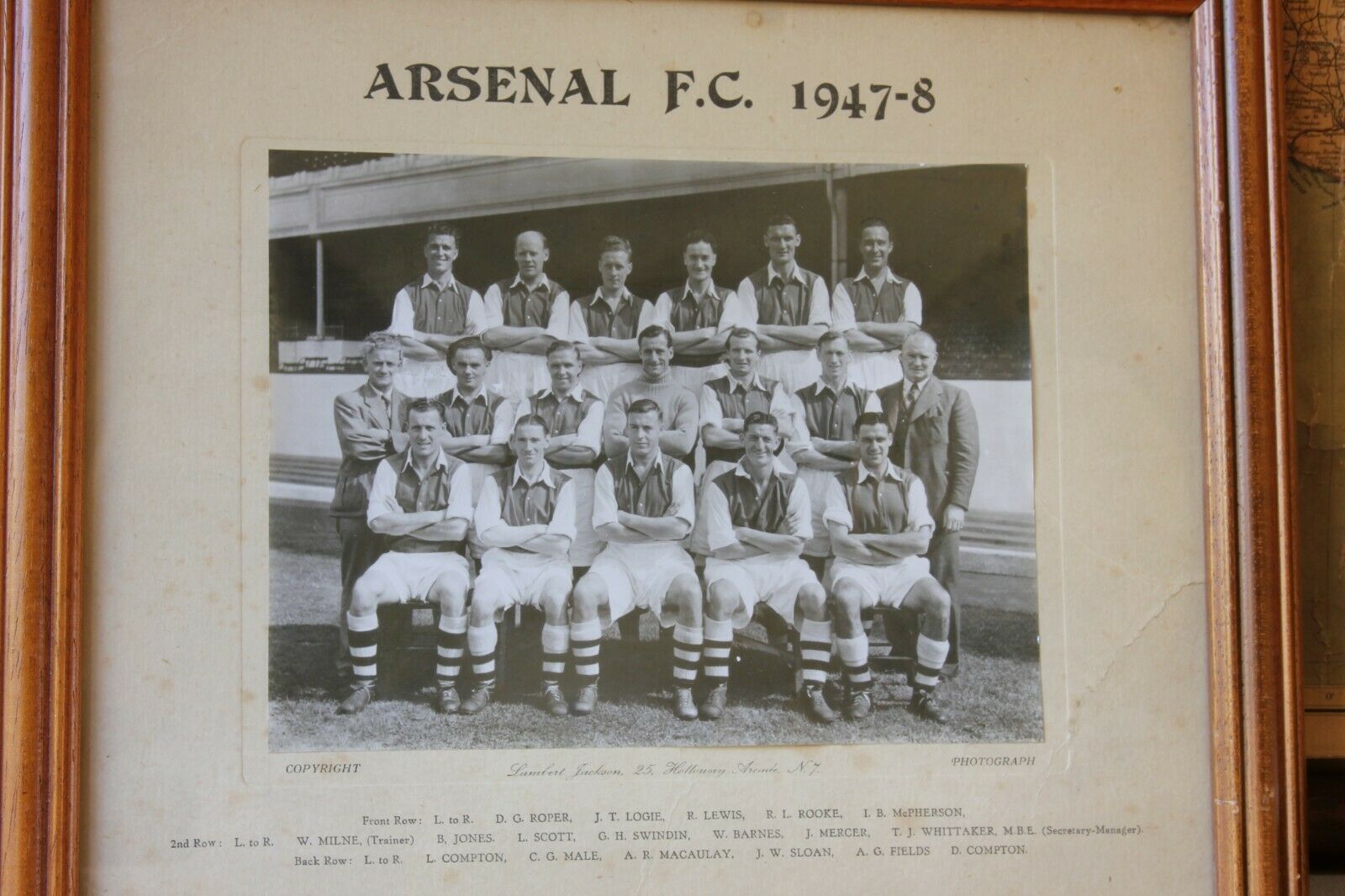 This black and white photo is nicely framed and mounted and would make an interesting item of footy memorabilia for an Arsenal fan. Looks very nice on display.