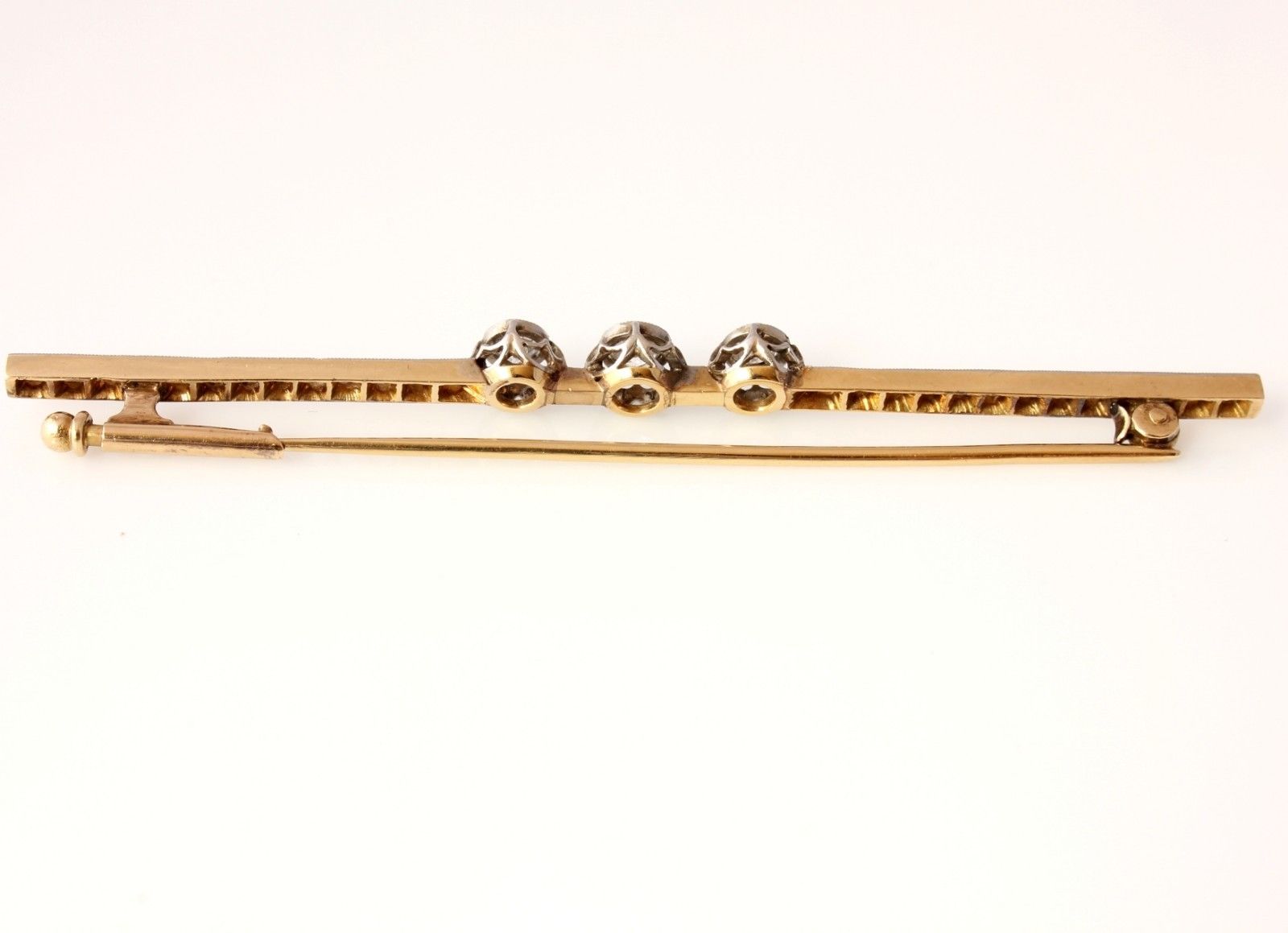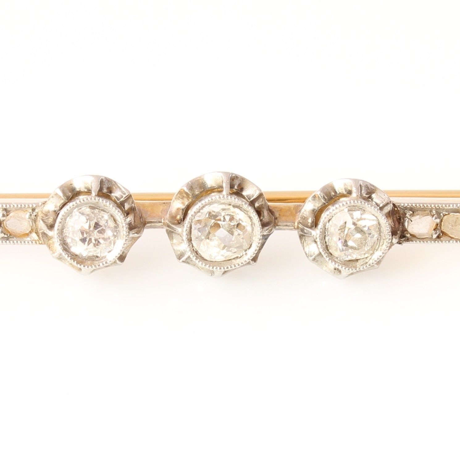 This gorgeous antique old cut diamond brooch is crafted in 18ct yellow gold, has a safety clasp and dates from the early 20th century.
