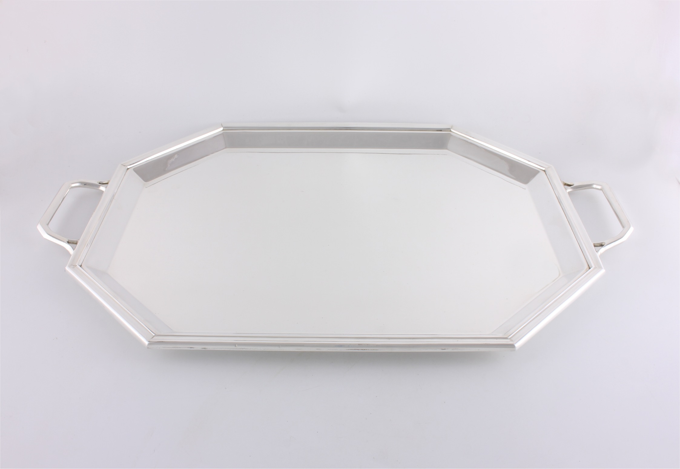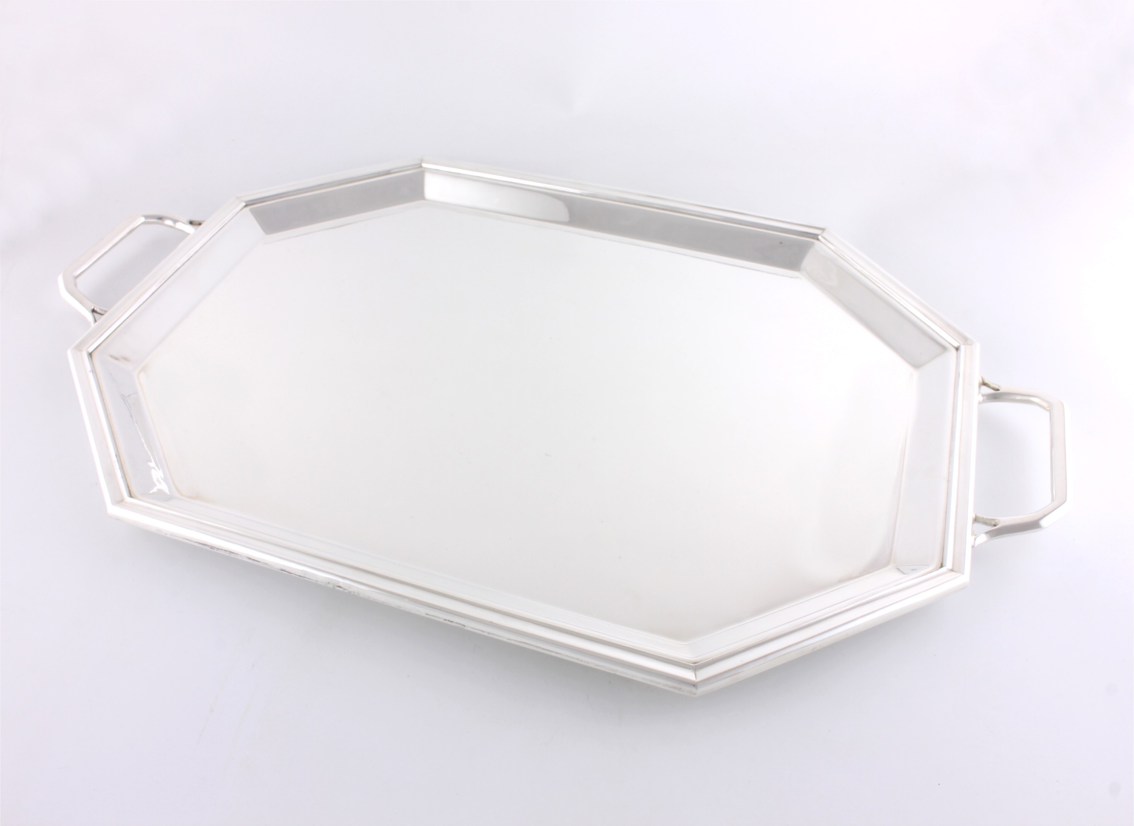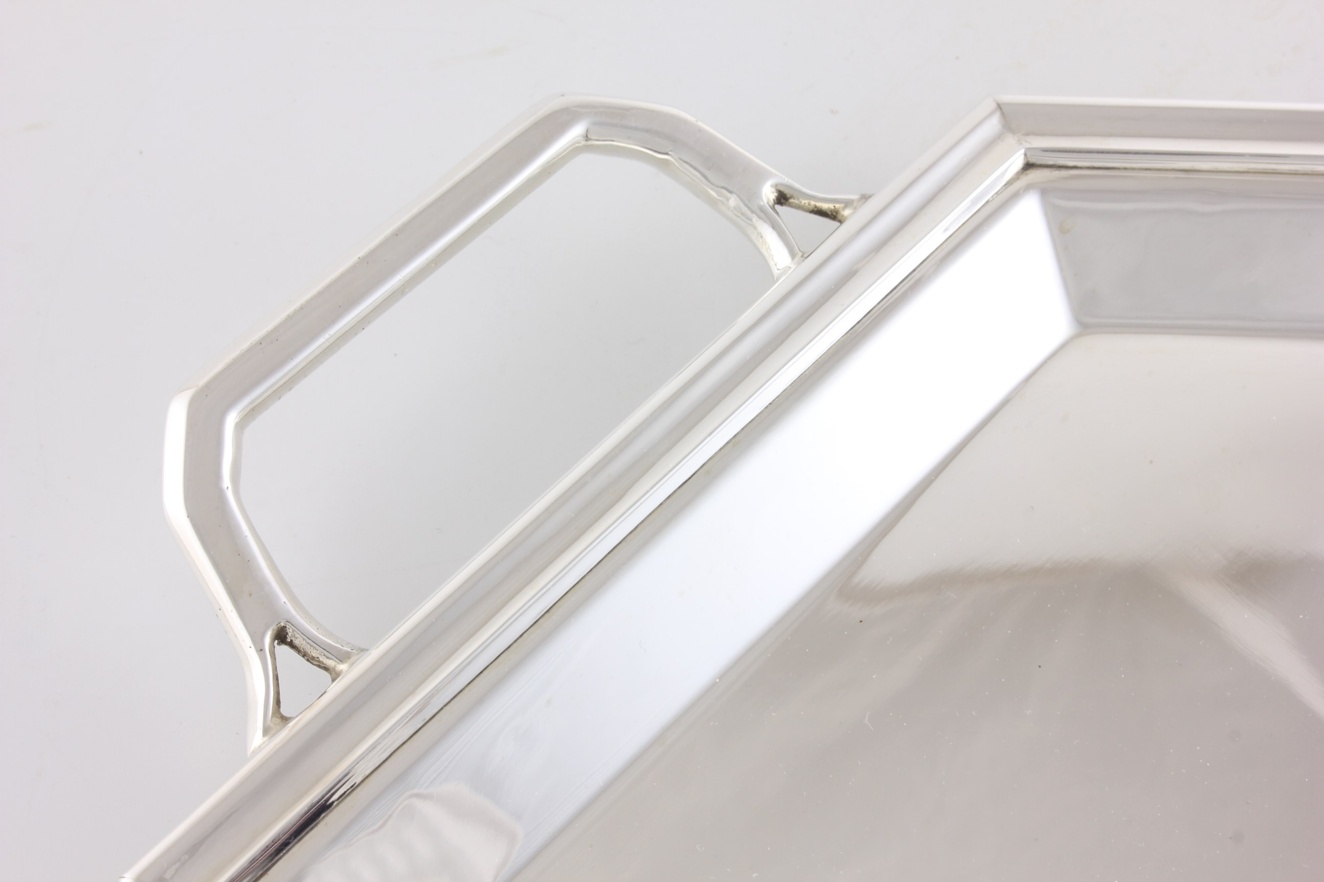 This Art Deco silver plated octagonal drinks tray which dates from the first half of the 20th century is marked to the underside with EPNS and is a good heavy weight.