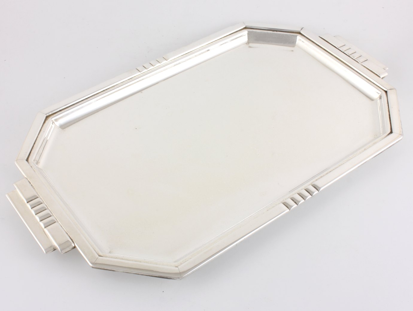 This quality French silver plated tray has a wonderful Art Deco design, dates from the 1920's/30's and is marked with the French maker's details.