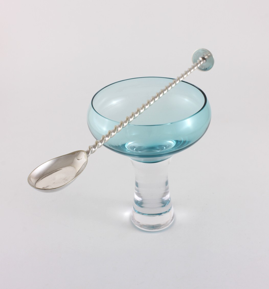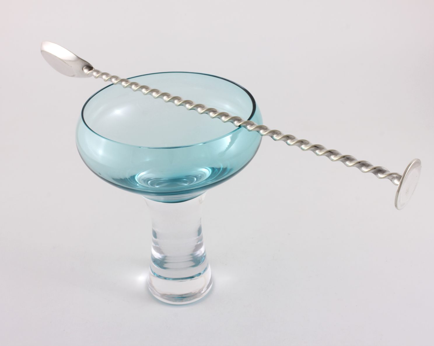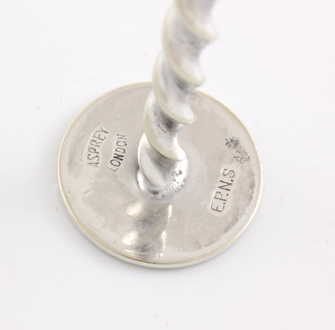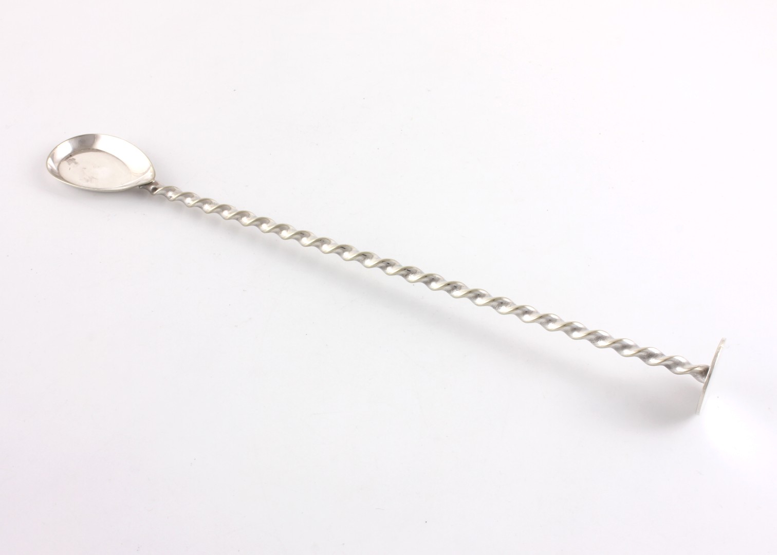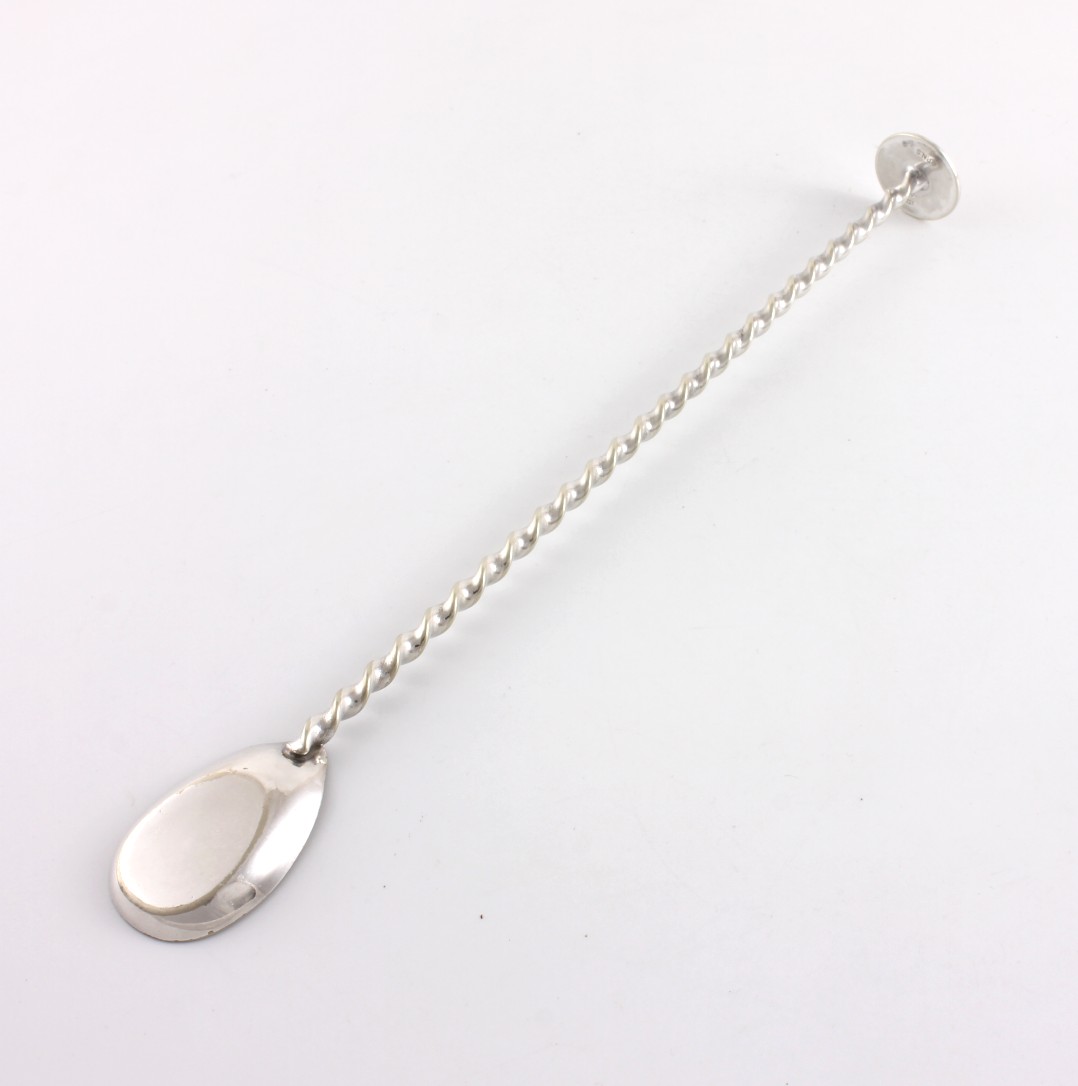 This long cocktail stirrer has a twisted design with a spoon to one end and a muddler for crushing your cocktail ingredients at the other end which is nicely marked for Asprey London EPNS.