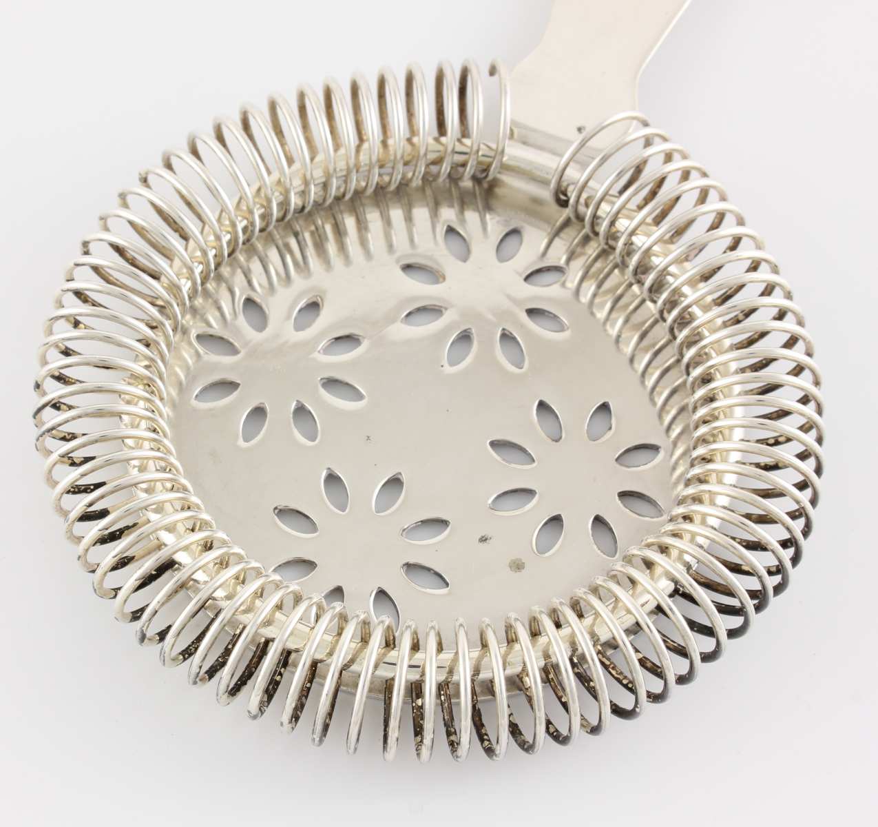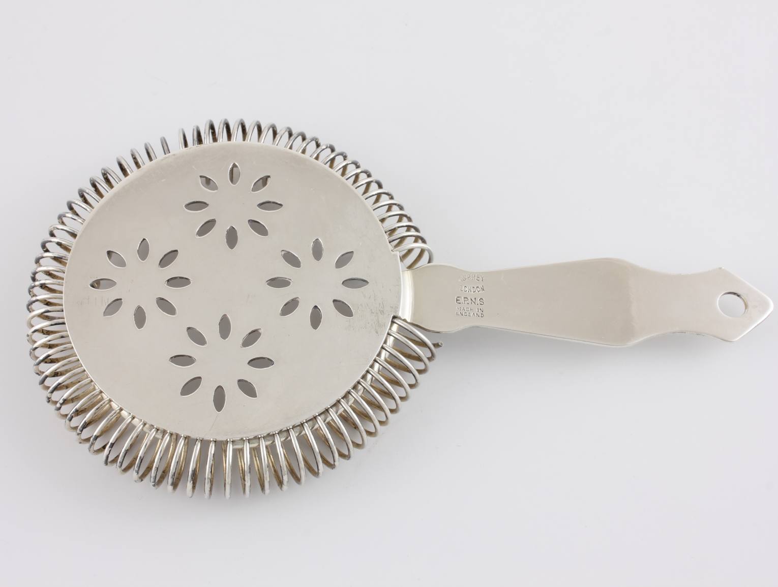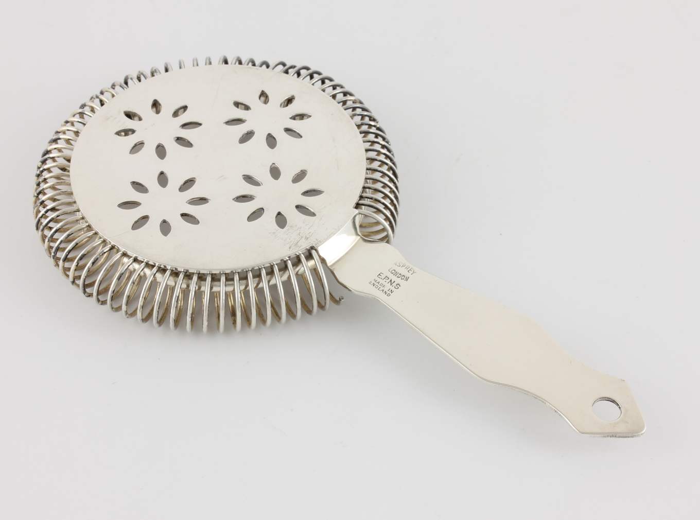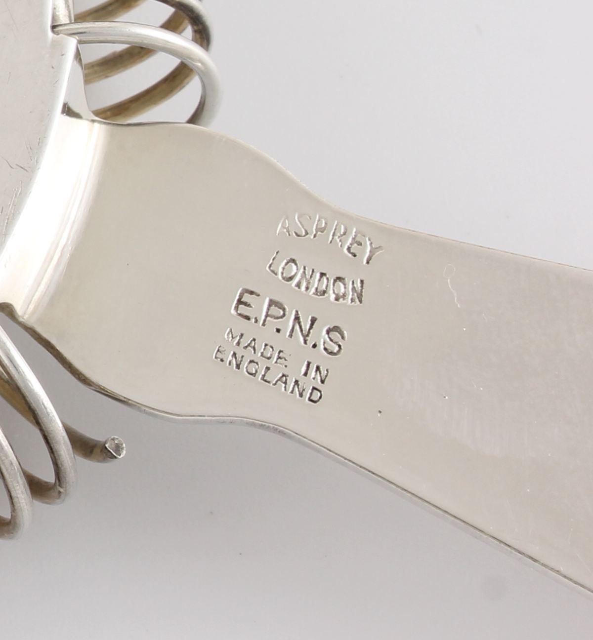 This vintage / antique silver plated cocktail strainer which is made by top makers Asprey & Co of London dates from c1930 and is a nice quality drinks sieve with a stylish design.