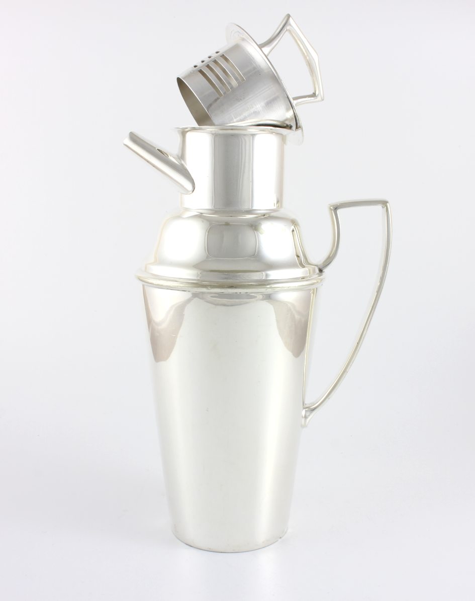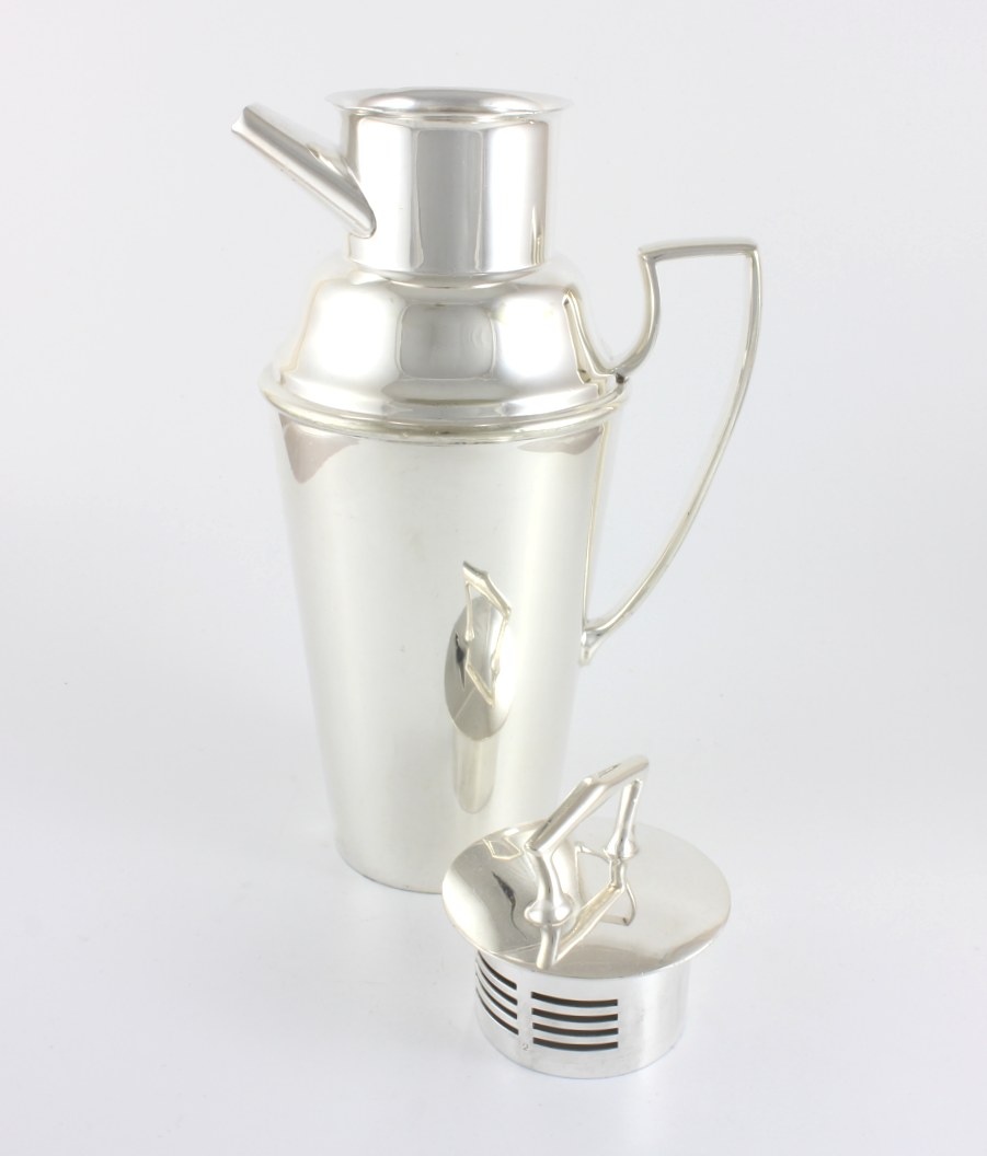 This desirable 2 piece cocktail shaker which is made of silver plate is by top silversmith Asprey & Co, London and dates from the 1930's.