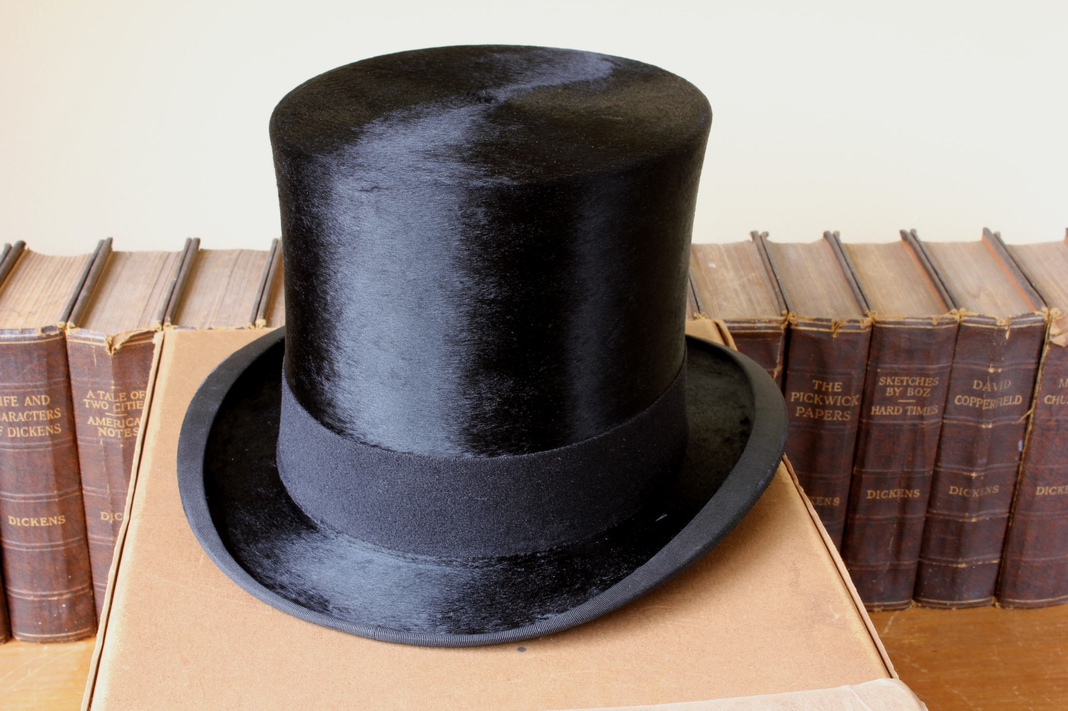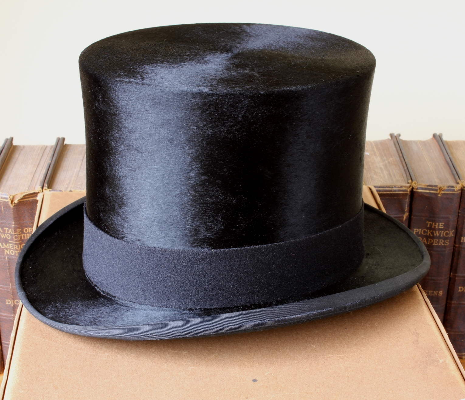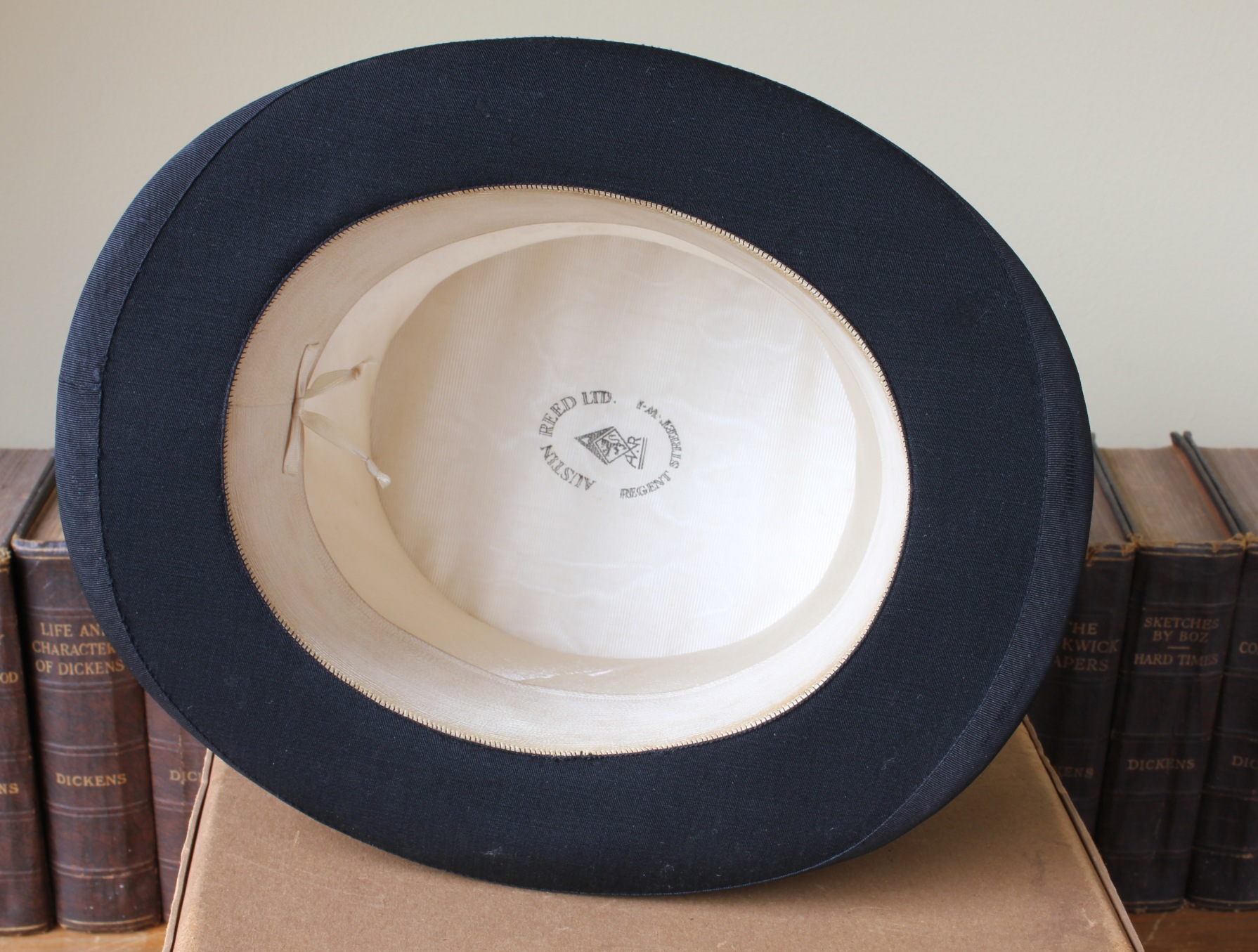 The top hat box is the original box in which the hat was delivered and has a postage stamp with the delivery date of 26 October 1933.