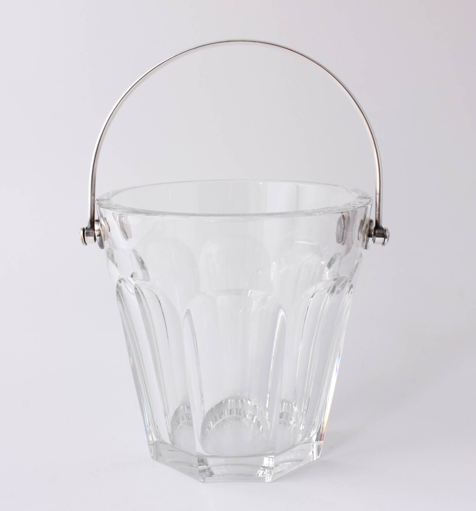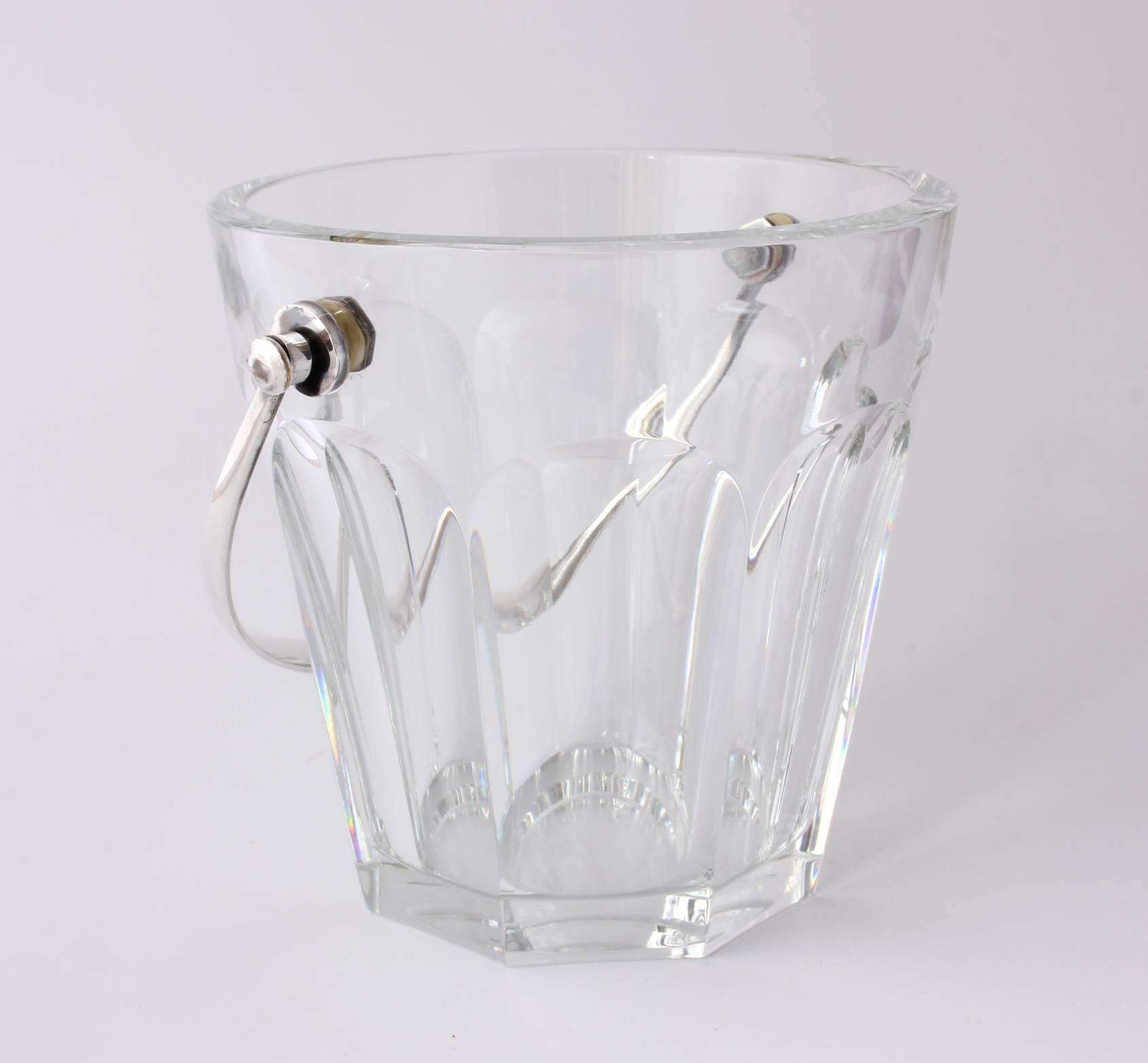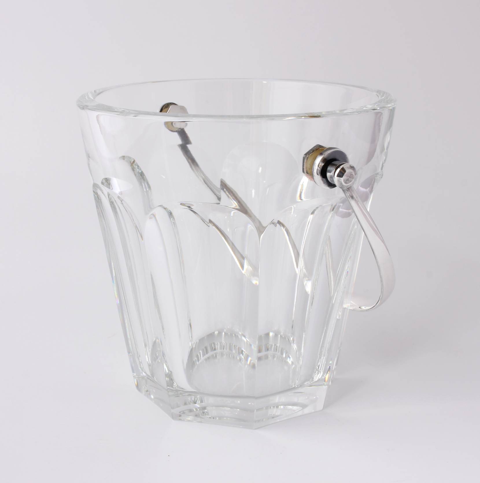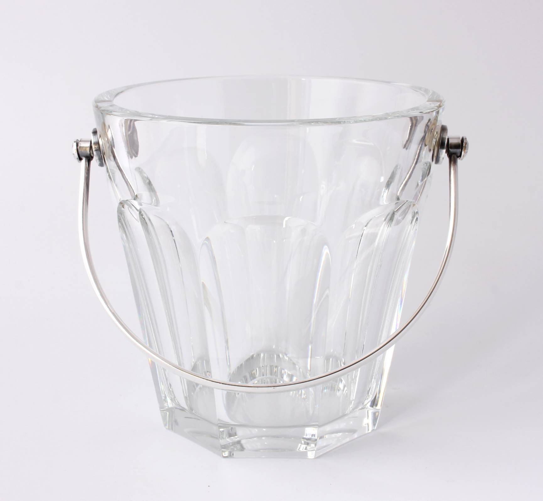 The crystal glass ice bucket which is nice and heavy is the Harcourt design and marked to the base with the Baccarat France logo.