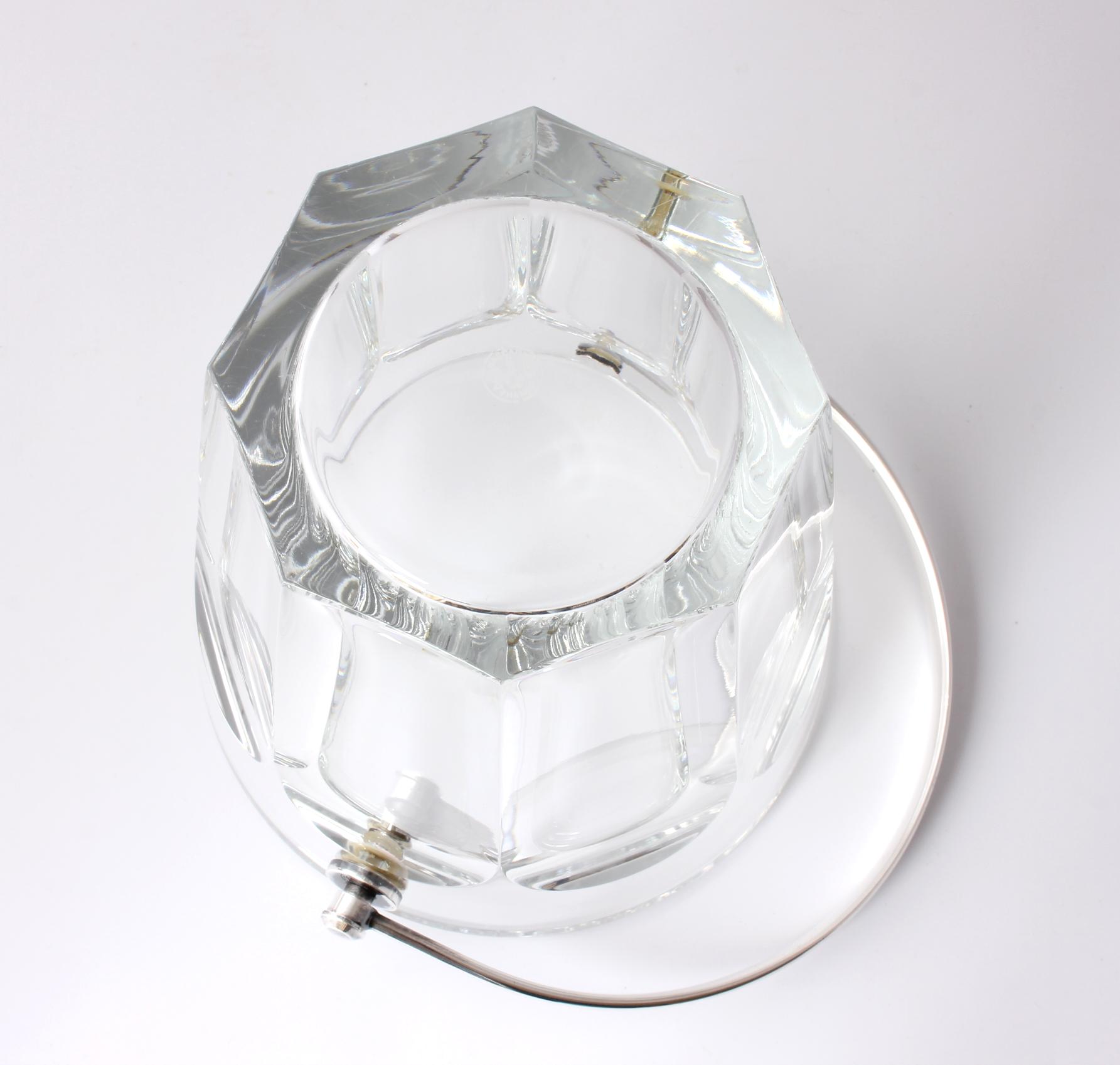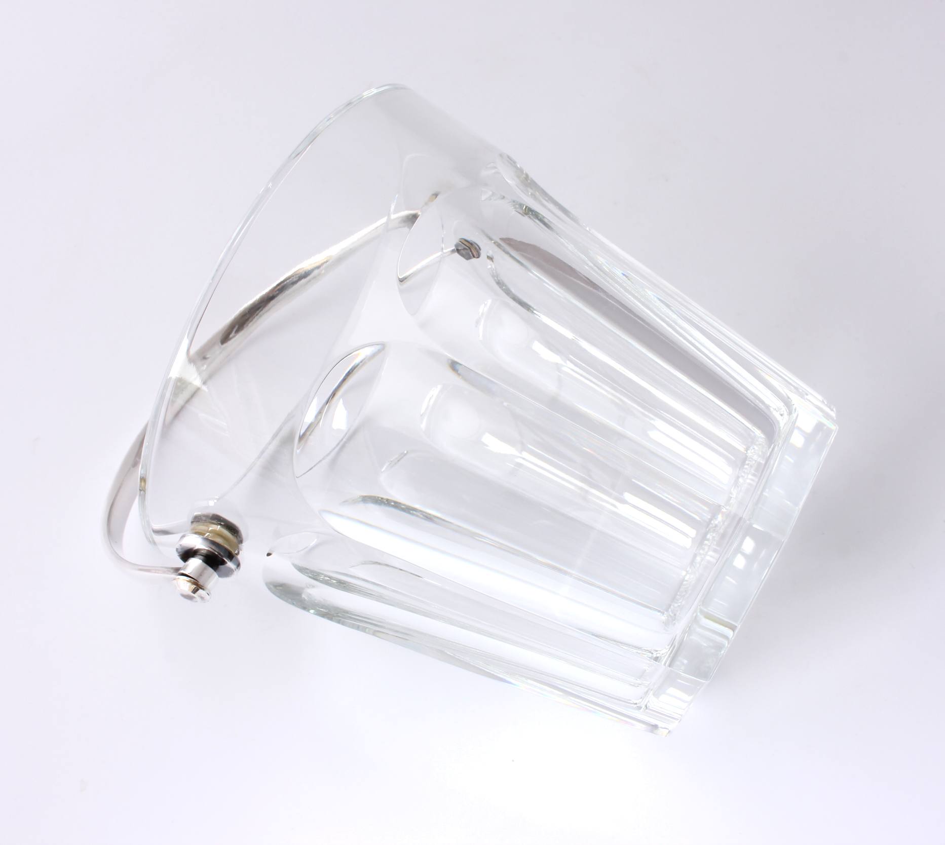 This high quality vintage ice bucket which is made of crystal glass is by renowned French maker Baccarat and has a silver plated swing handle.