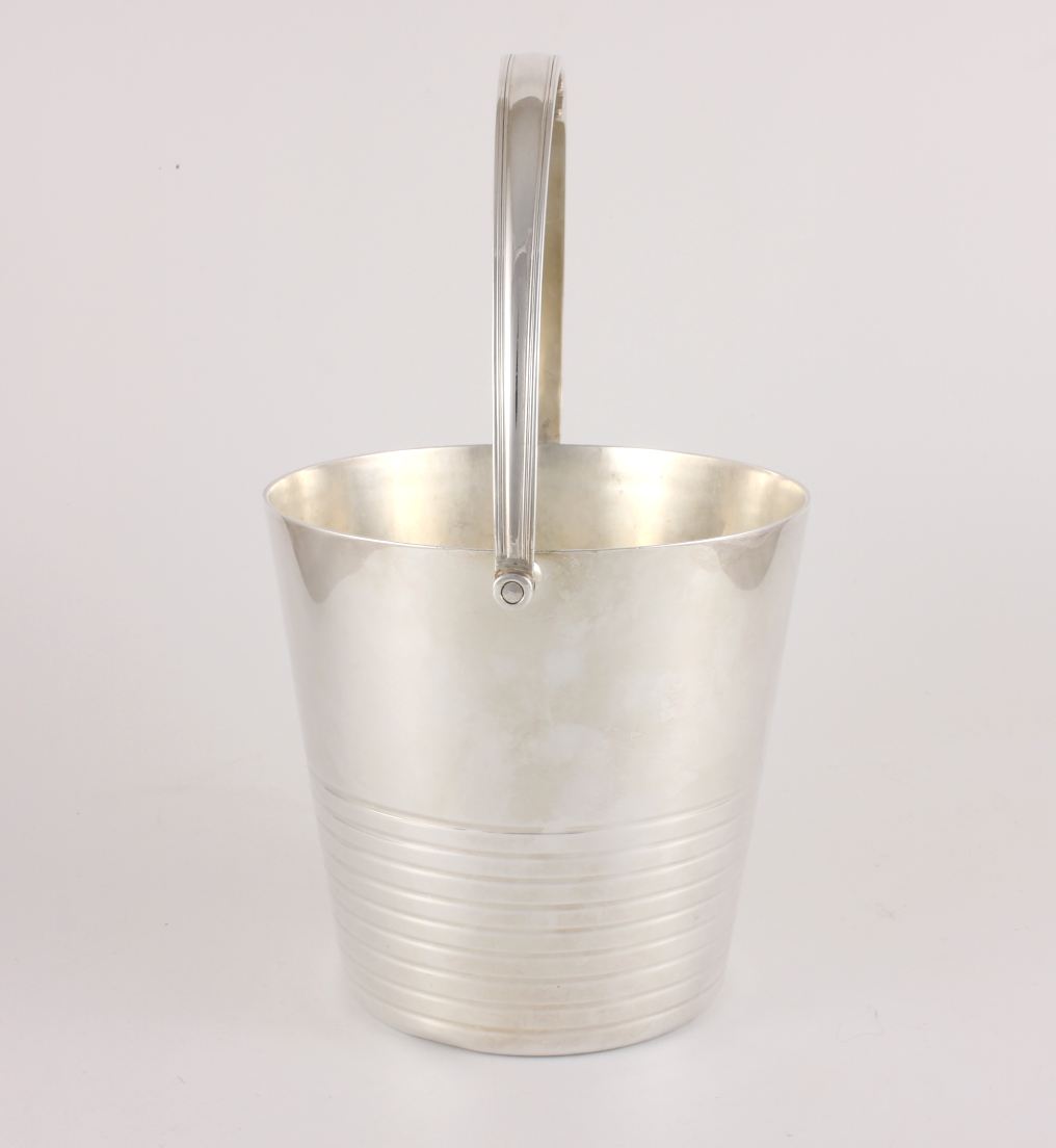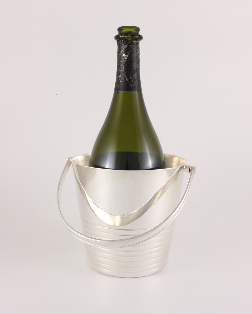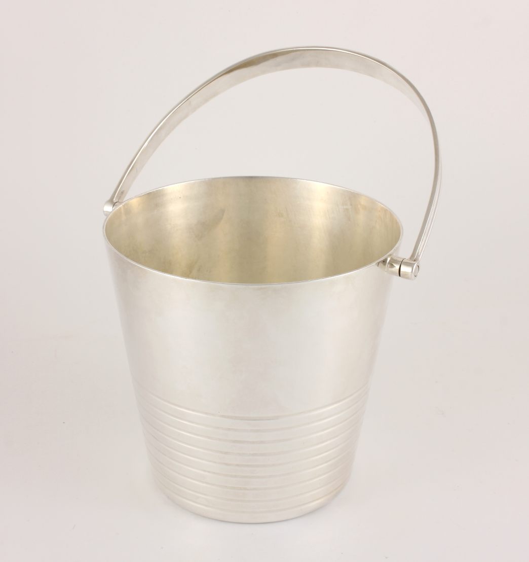 This excellent quality vintage silver plate ice bucket which is by renowned silversmith Barker Brothers is a good heavy weight with a swing handle and a ring design to the body.